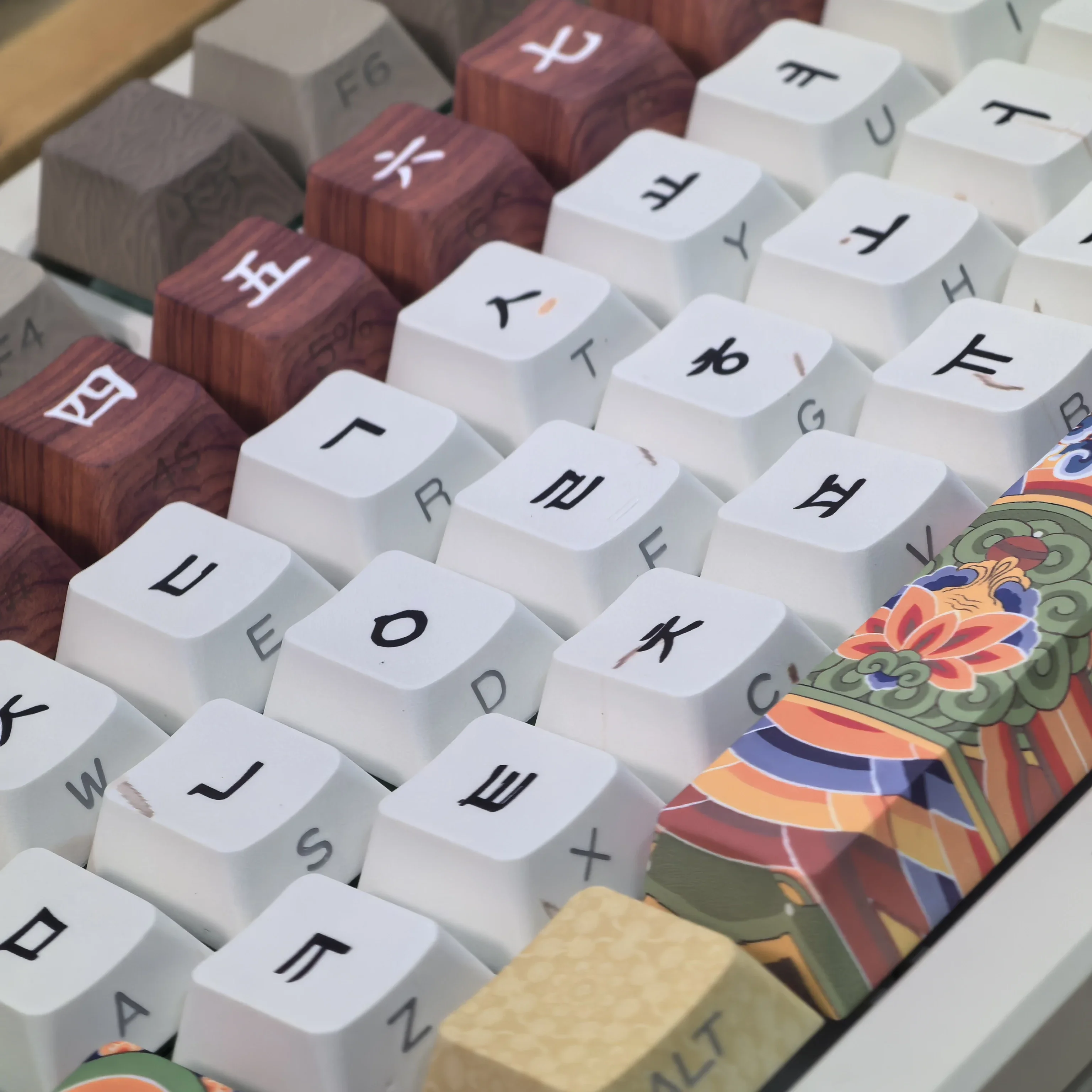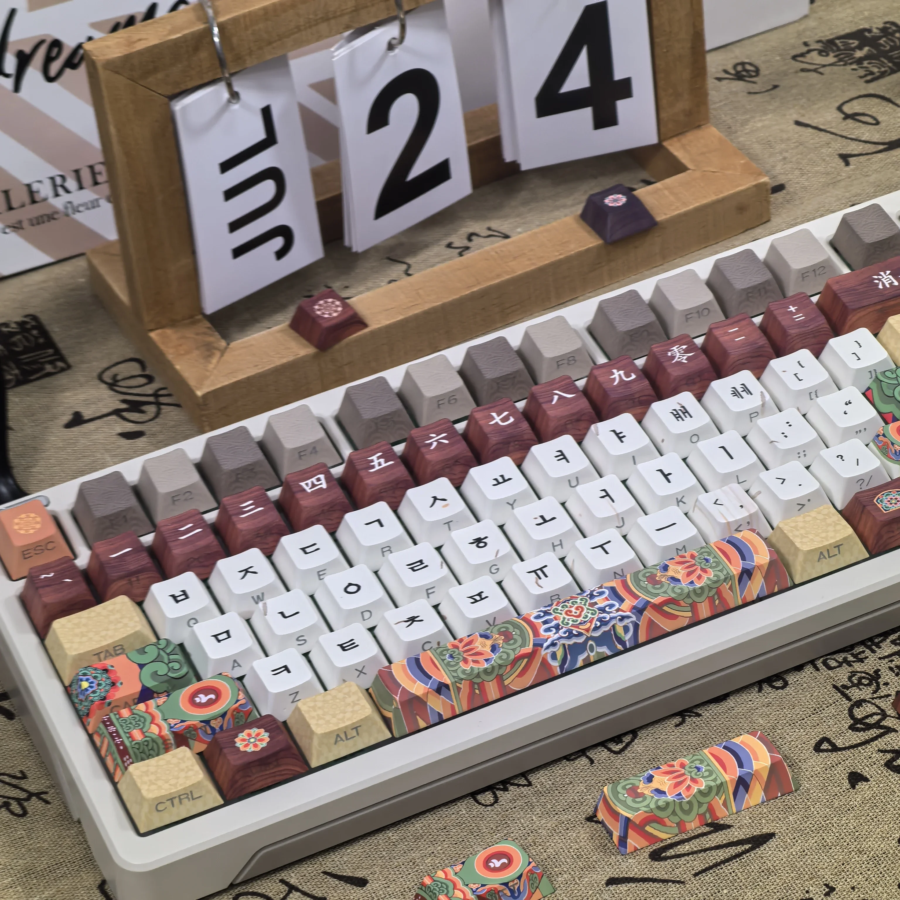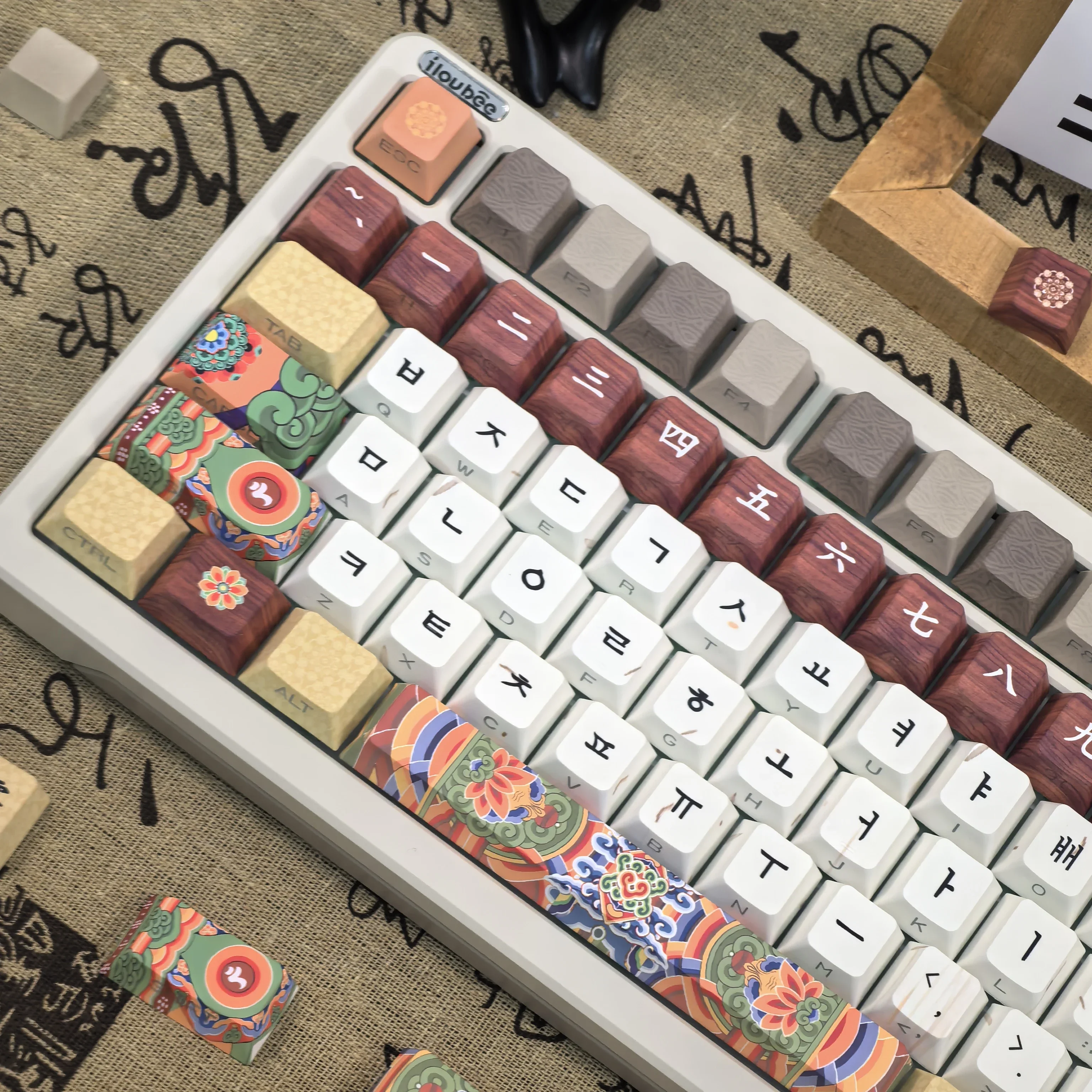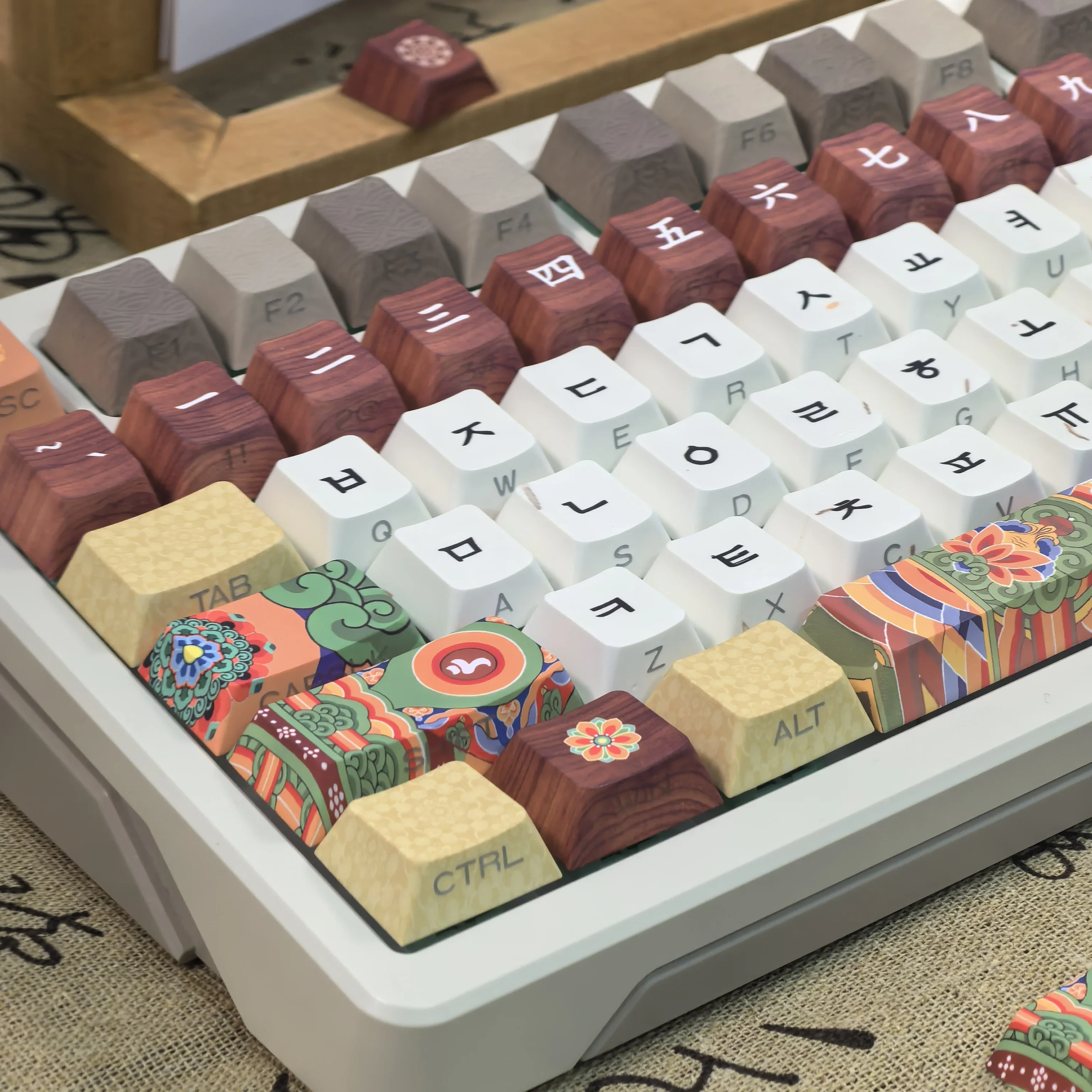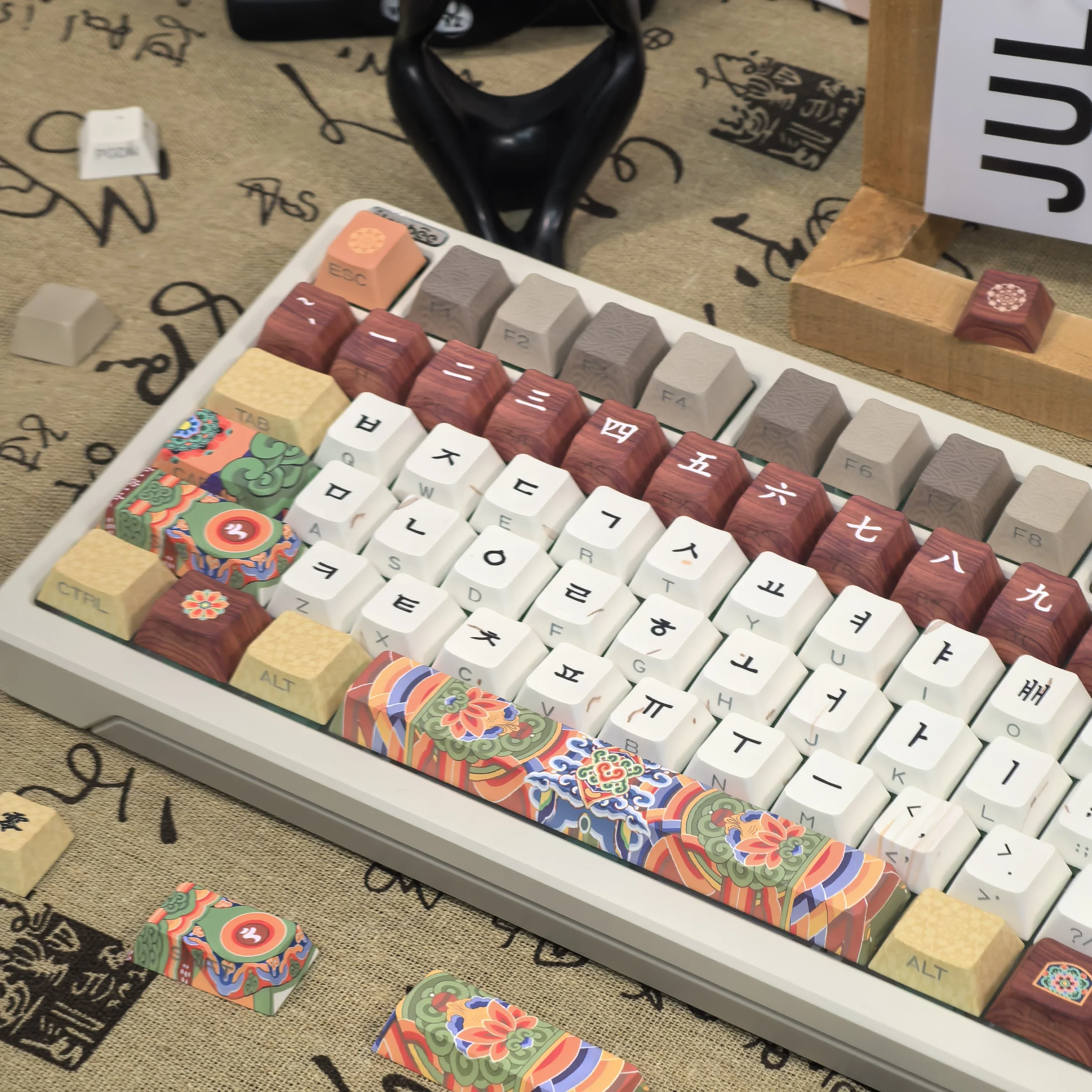 Comprar Teclas coreanas Retro Dancheong con lado grabado translúcido PBT, perfil de cereza, arquitectura antigua, teclas de teclado colgantes