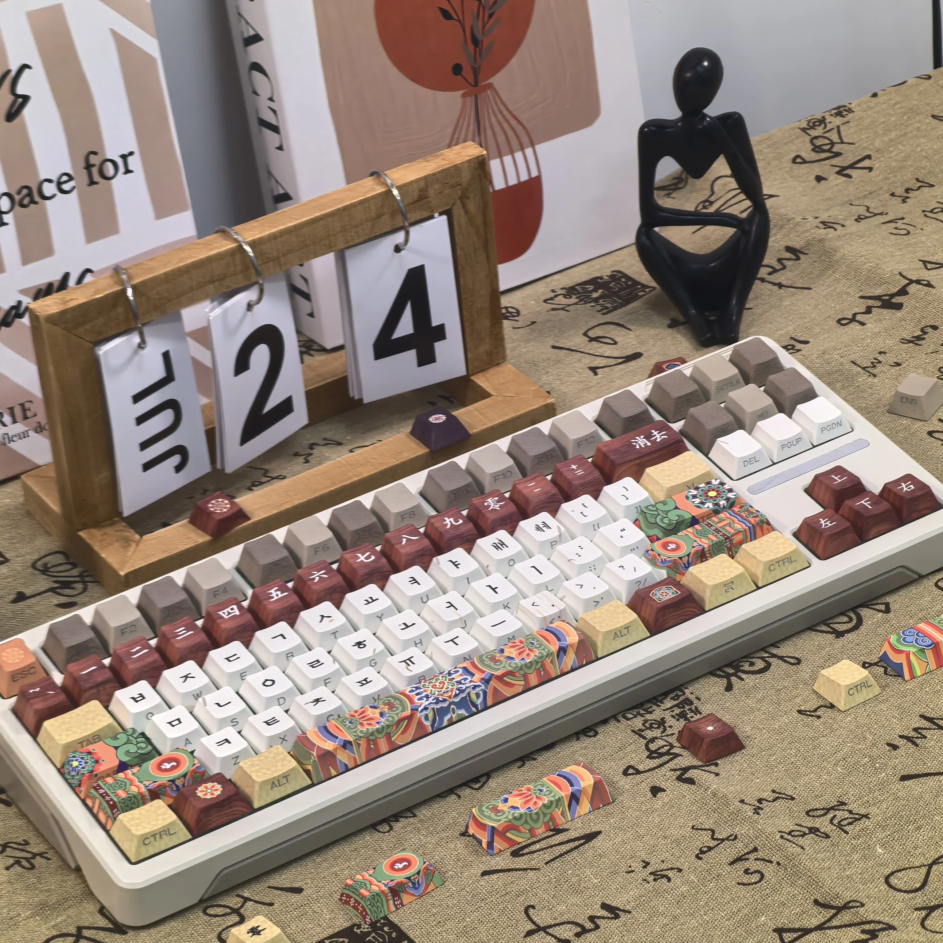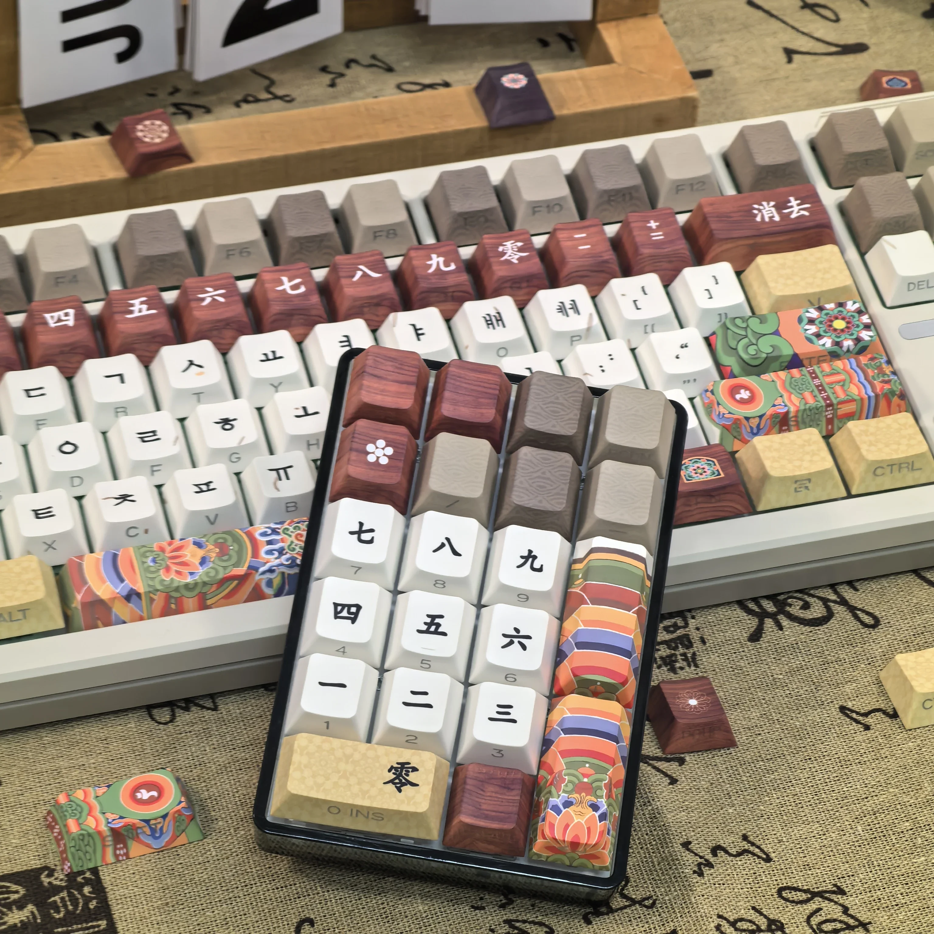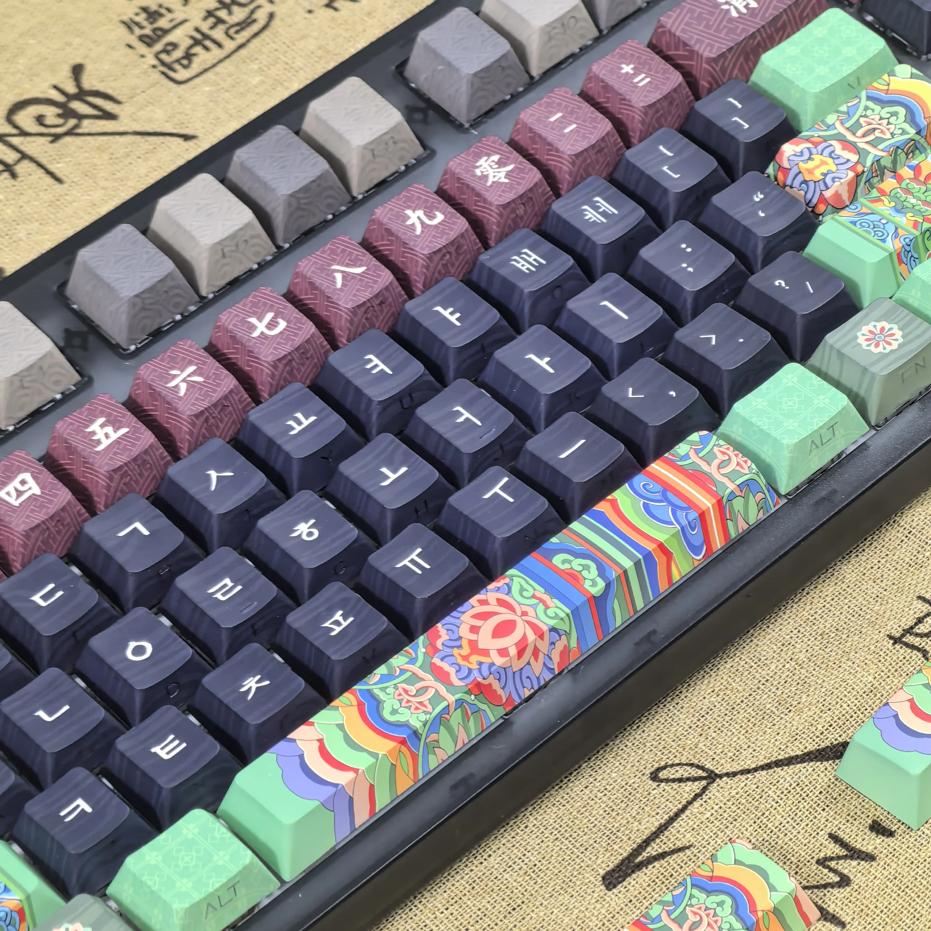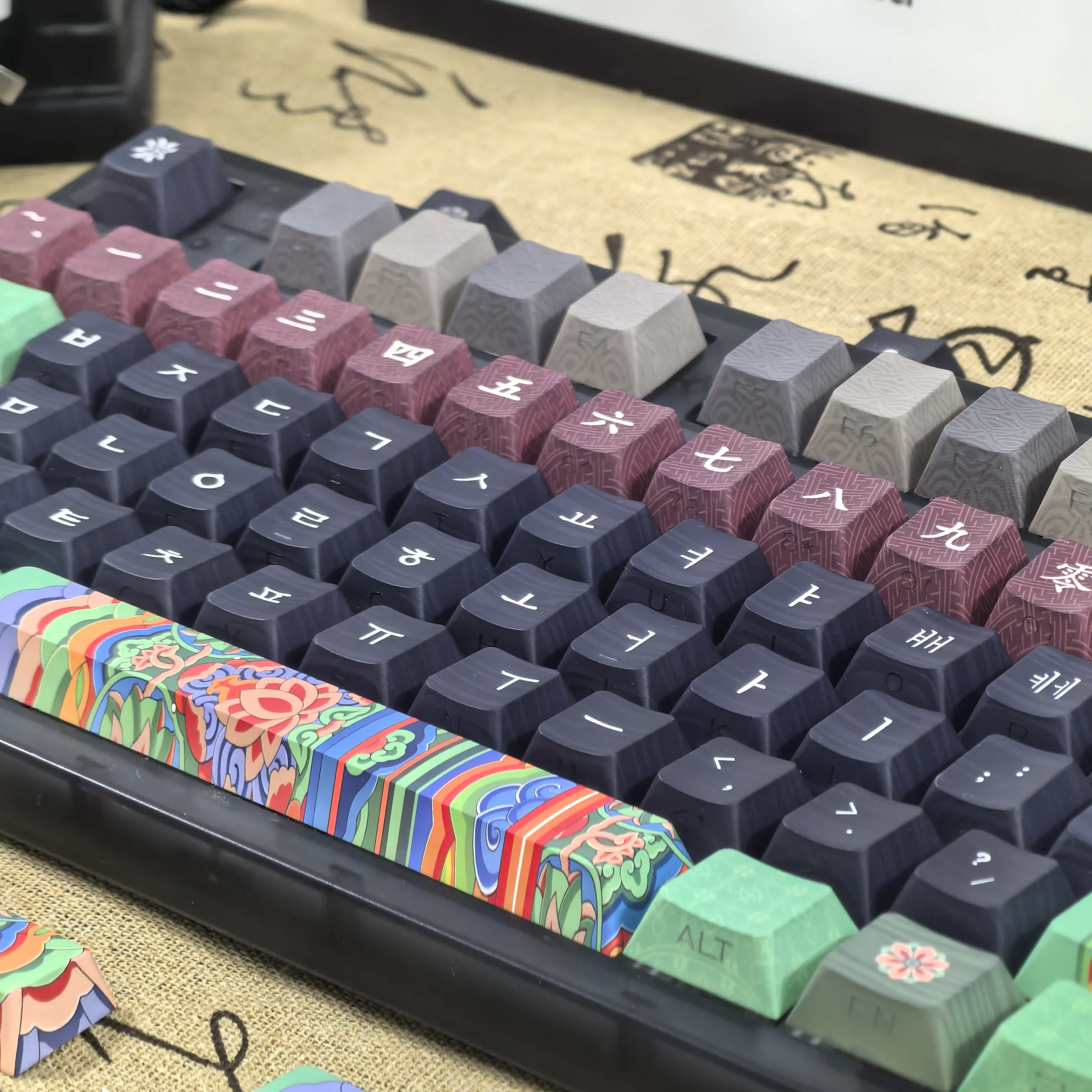 Comprar Teclas coreanas Retro Dancheong con lado grabado translúcido PBT, perfil de cereza, arquitectura antigua, teclas de teclado colgantes
