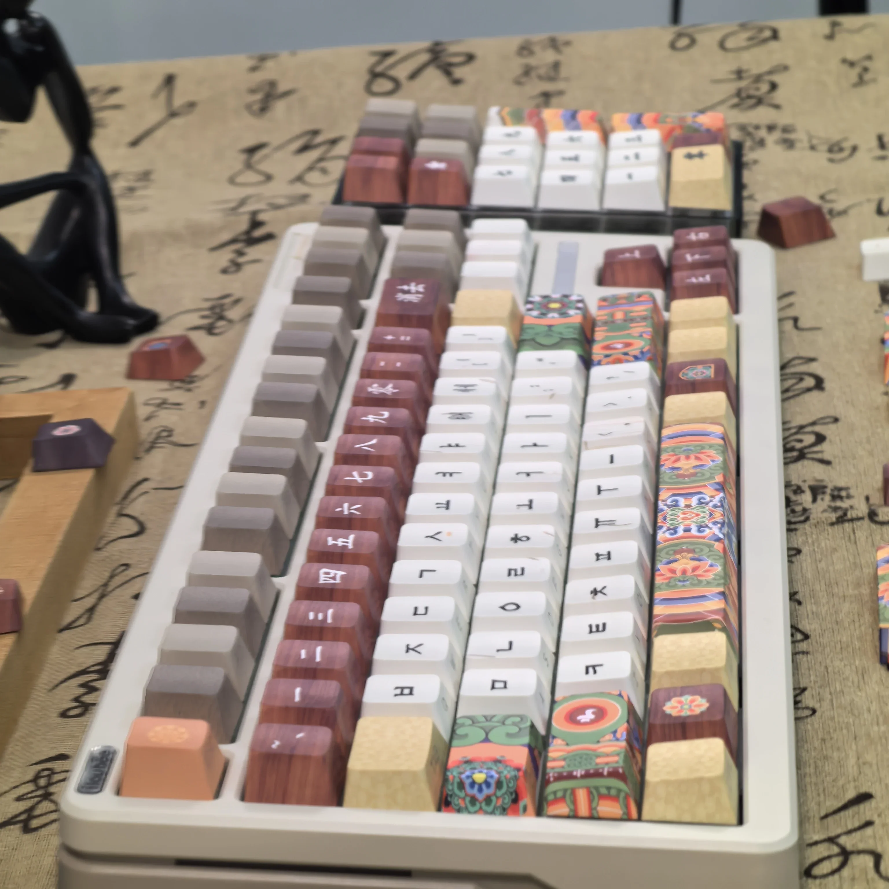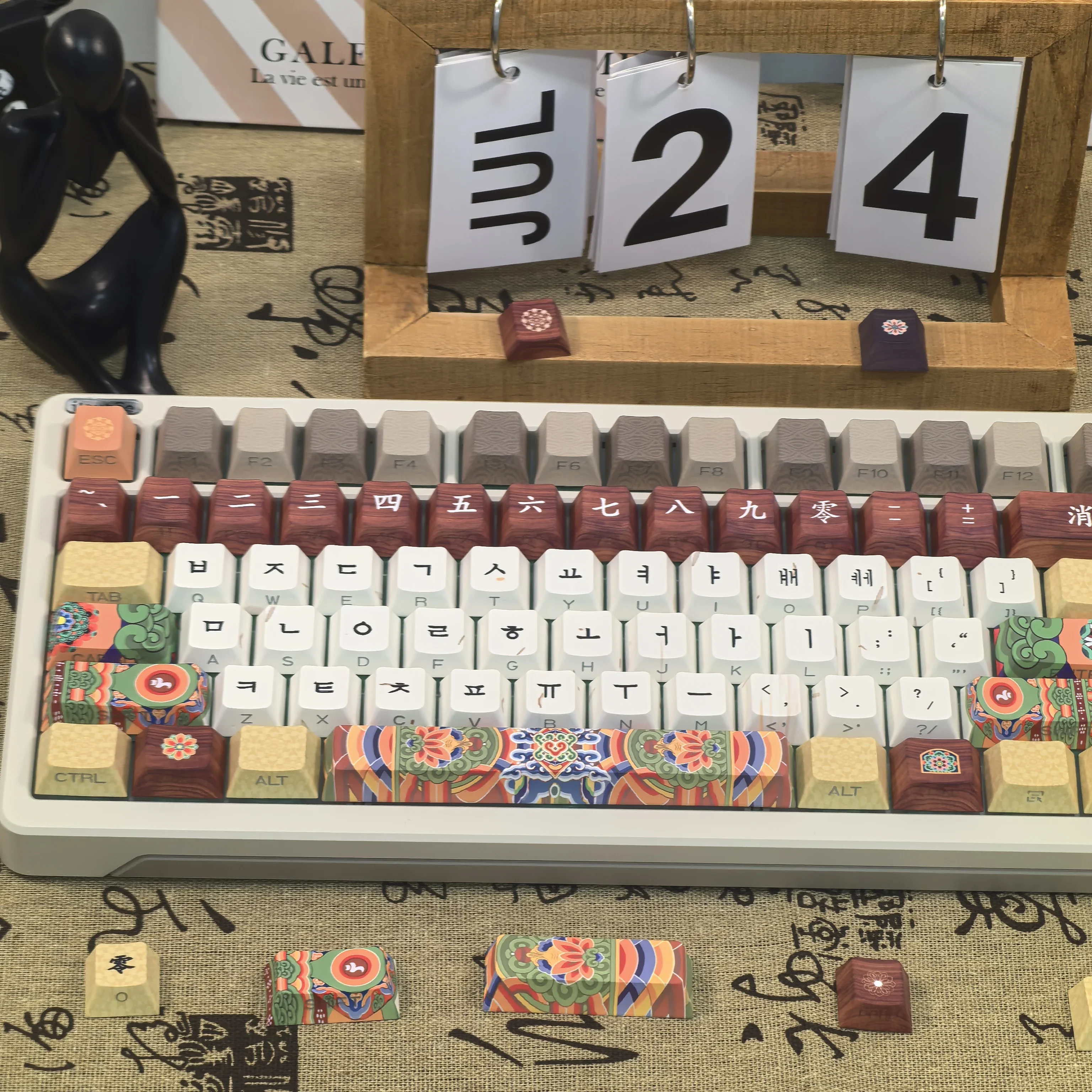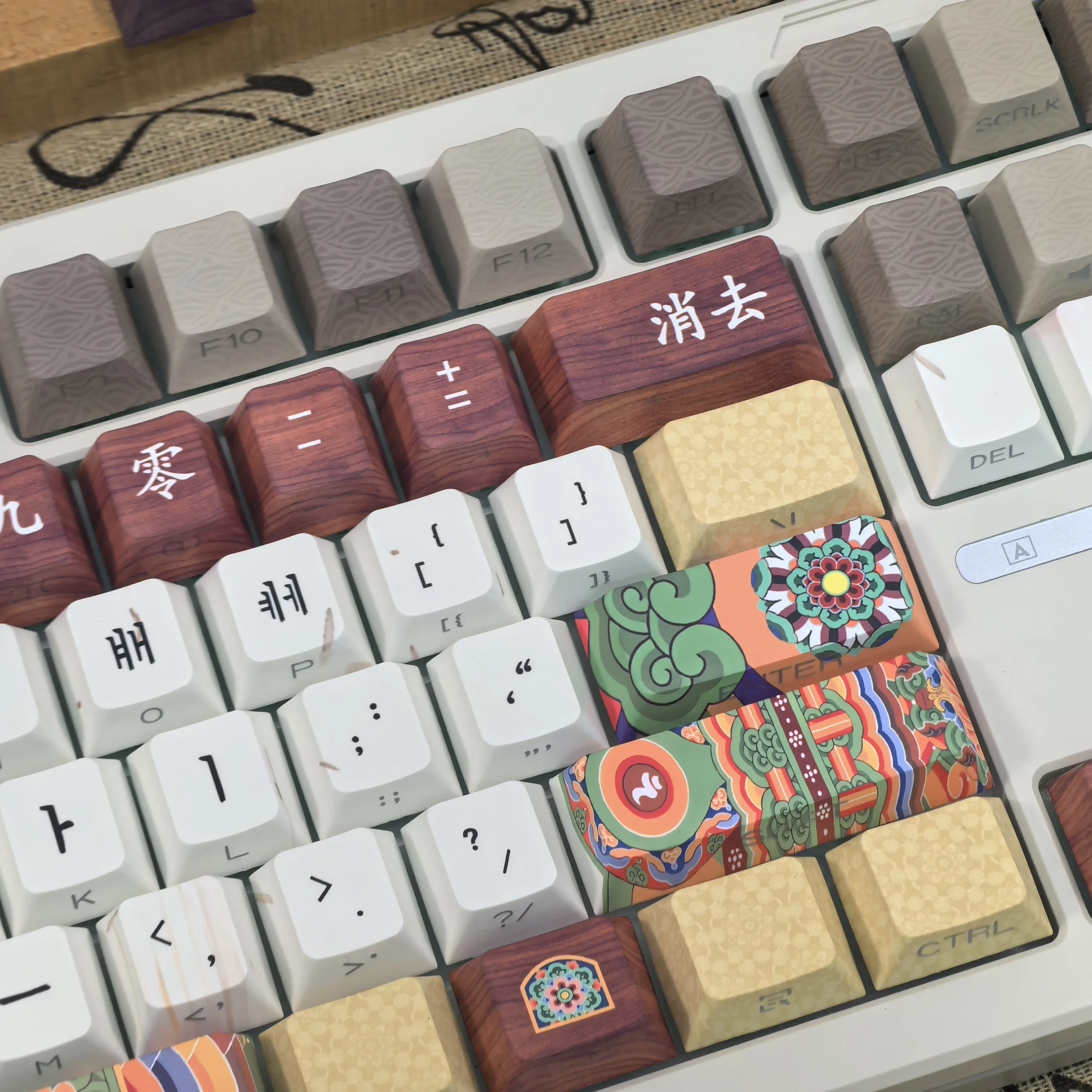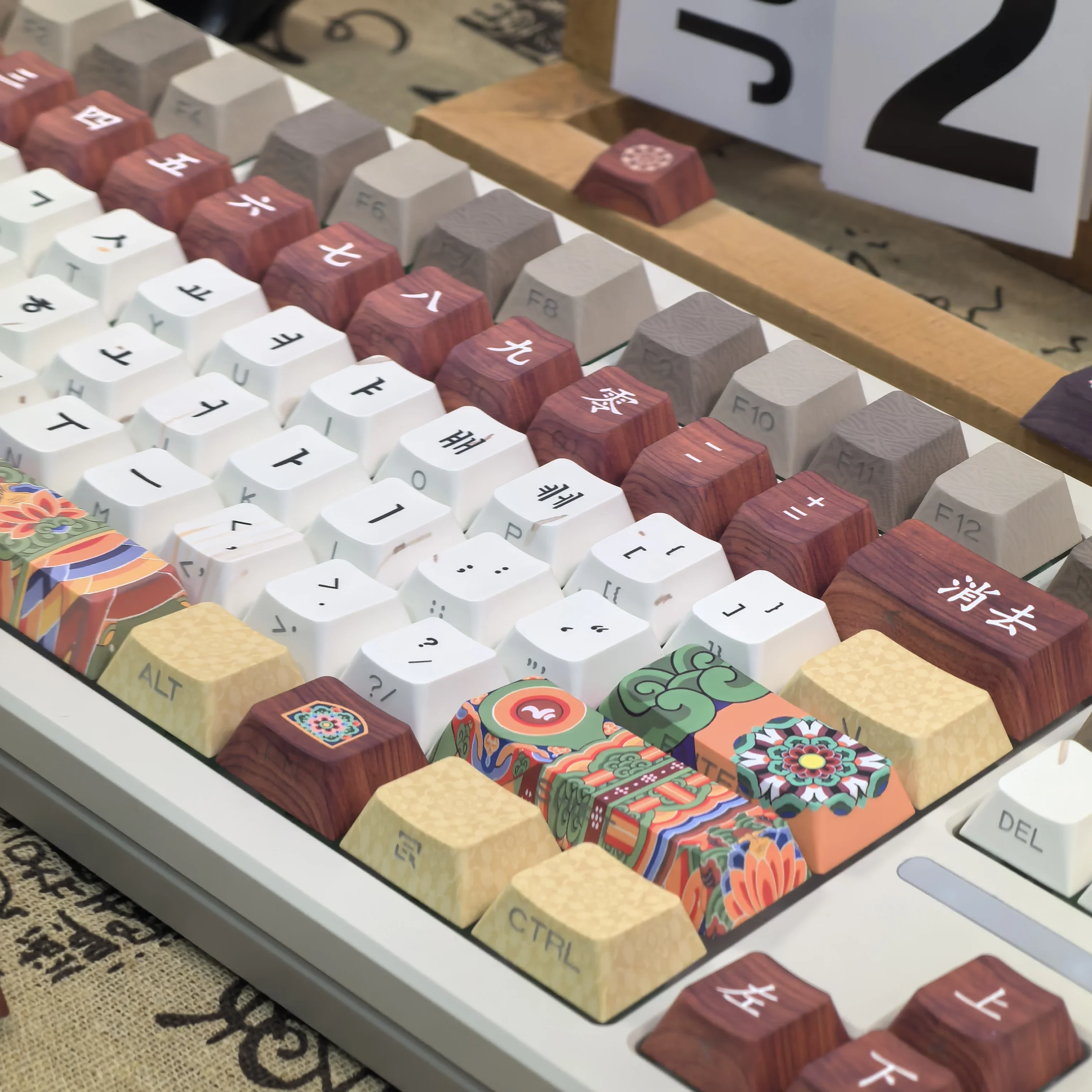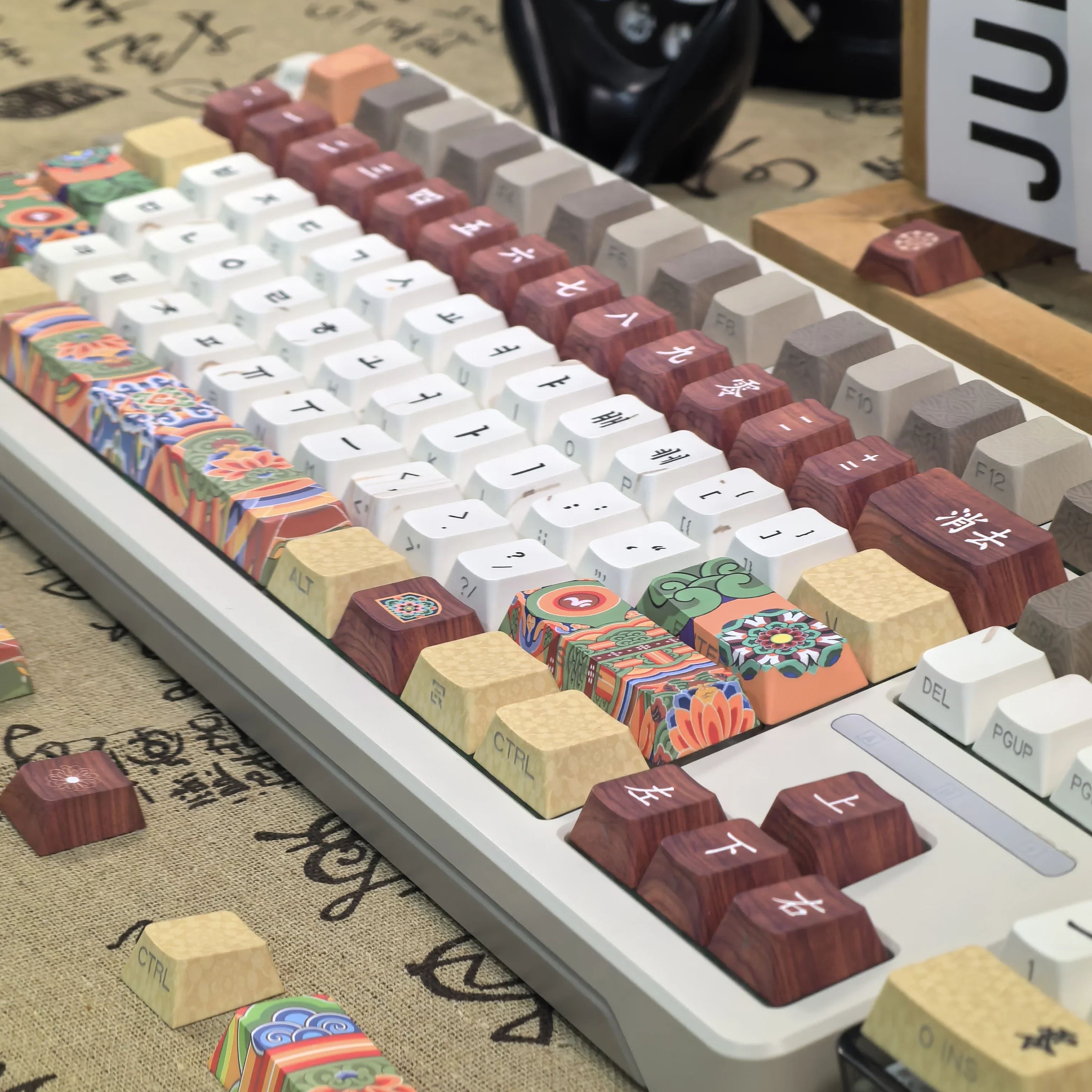 Comprar Teclas coreanas Retro Dancheong con lado grabado translúcido PBT, perfil de cereza, arquitectura antigua, teclas de teclado colgantes