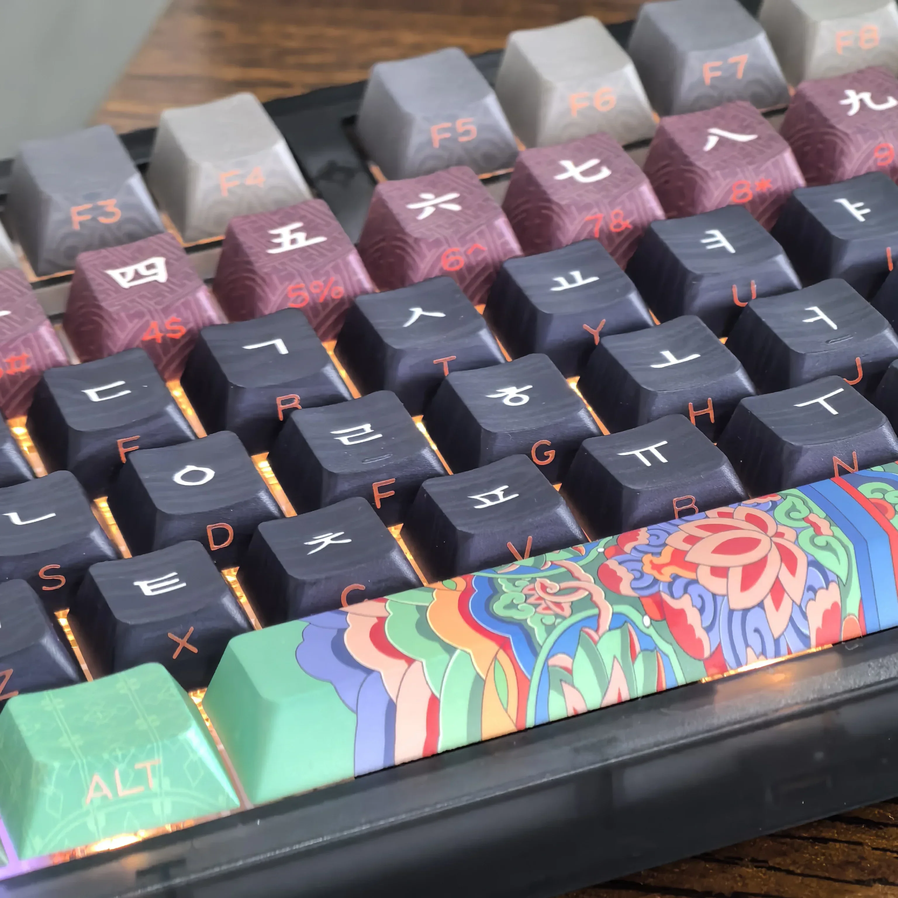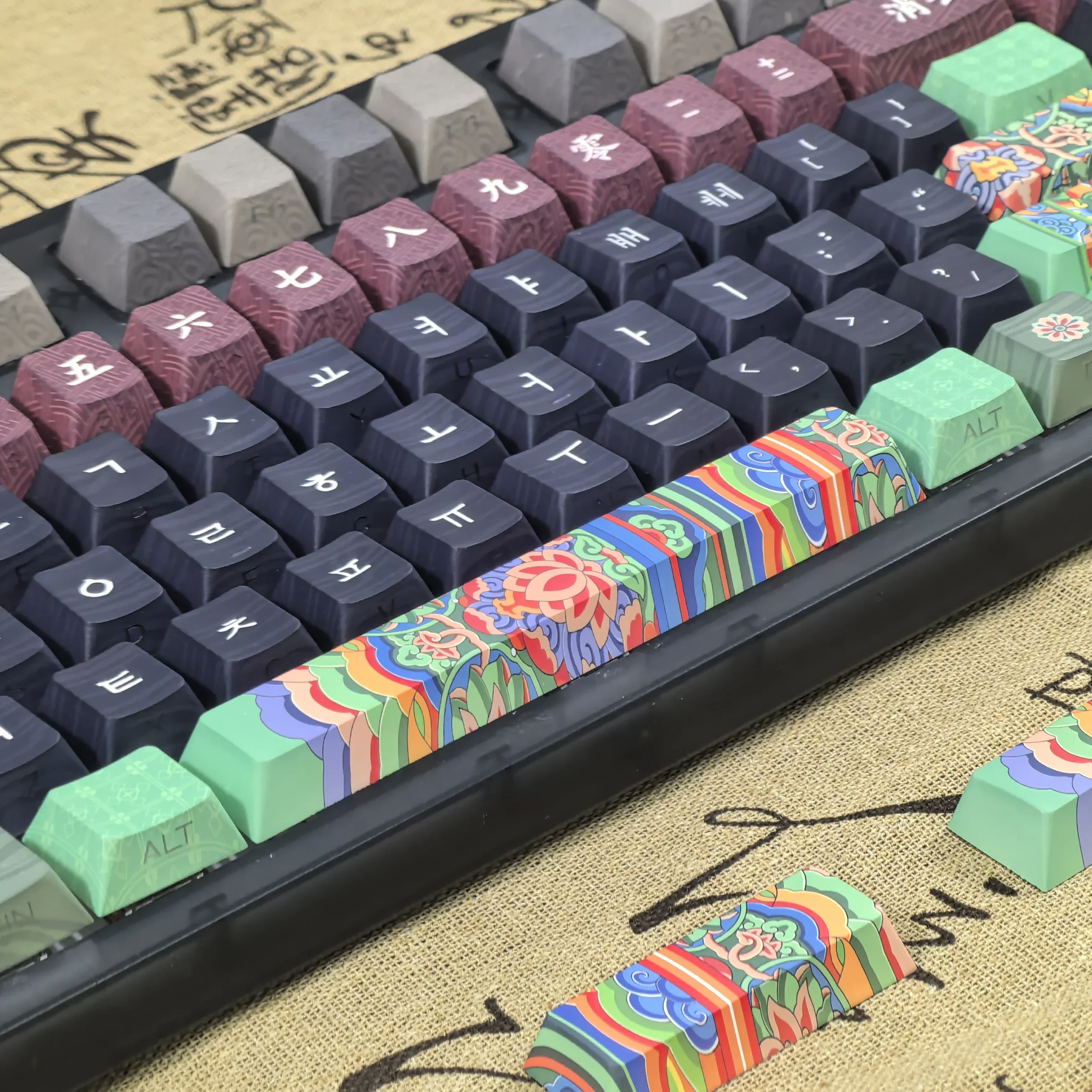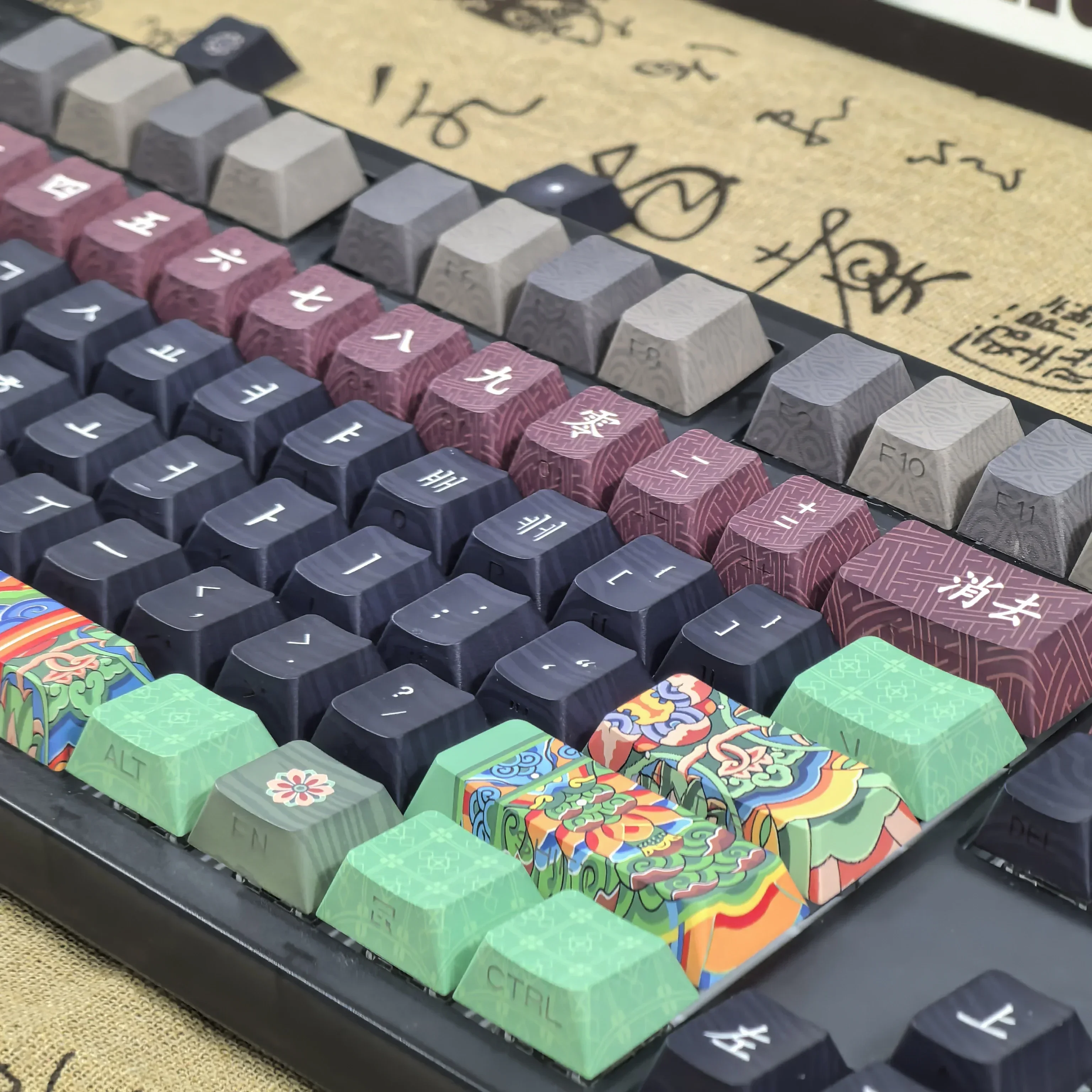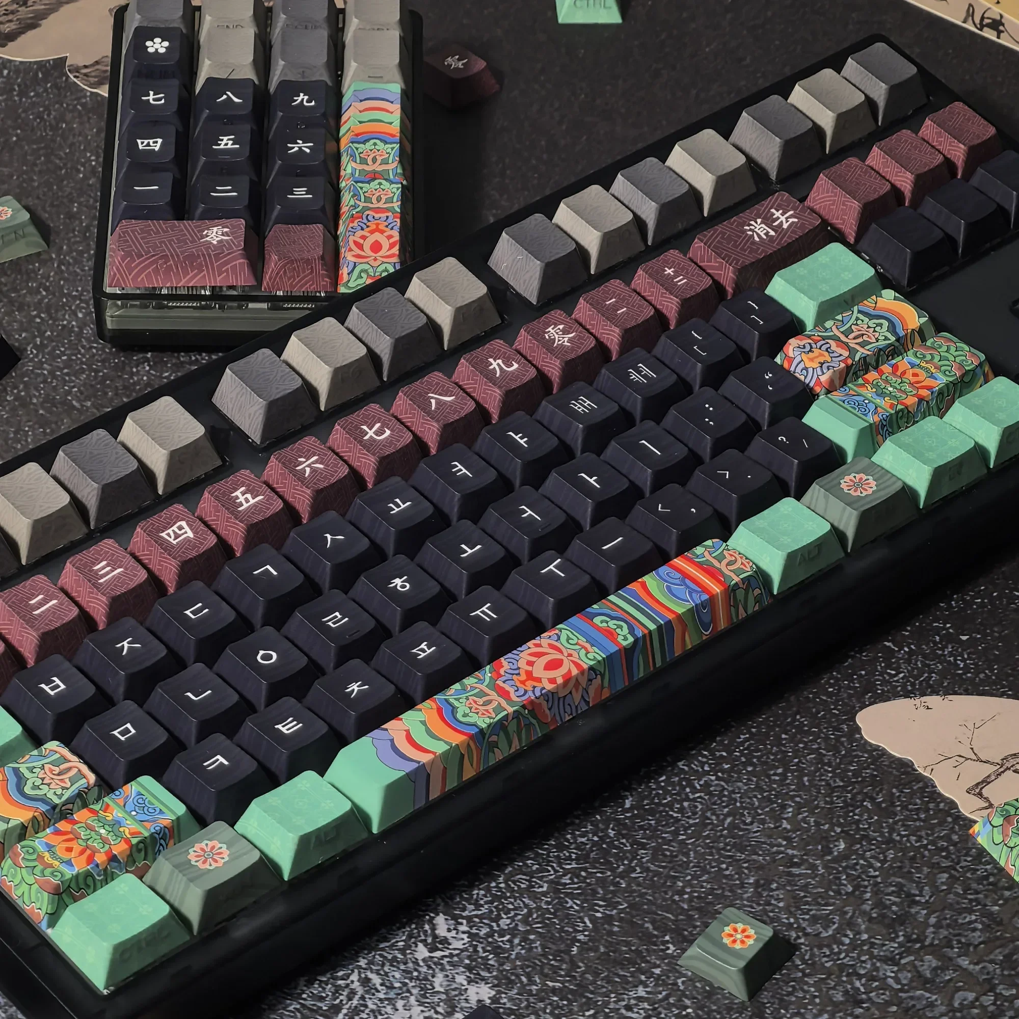 Comprar Teclas coreanas Retro Dancheong con lado grabado translúcido PBT, perfil de cereza, arquitectura antigua, teclas de teclado colgantes