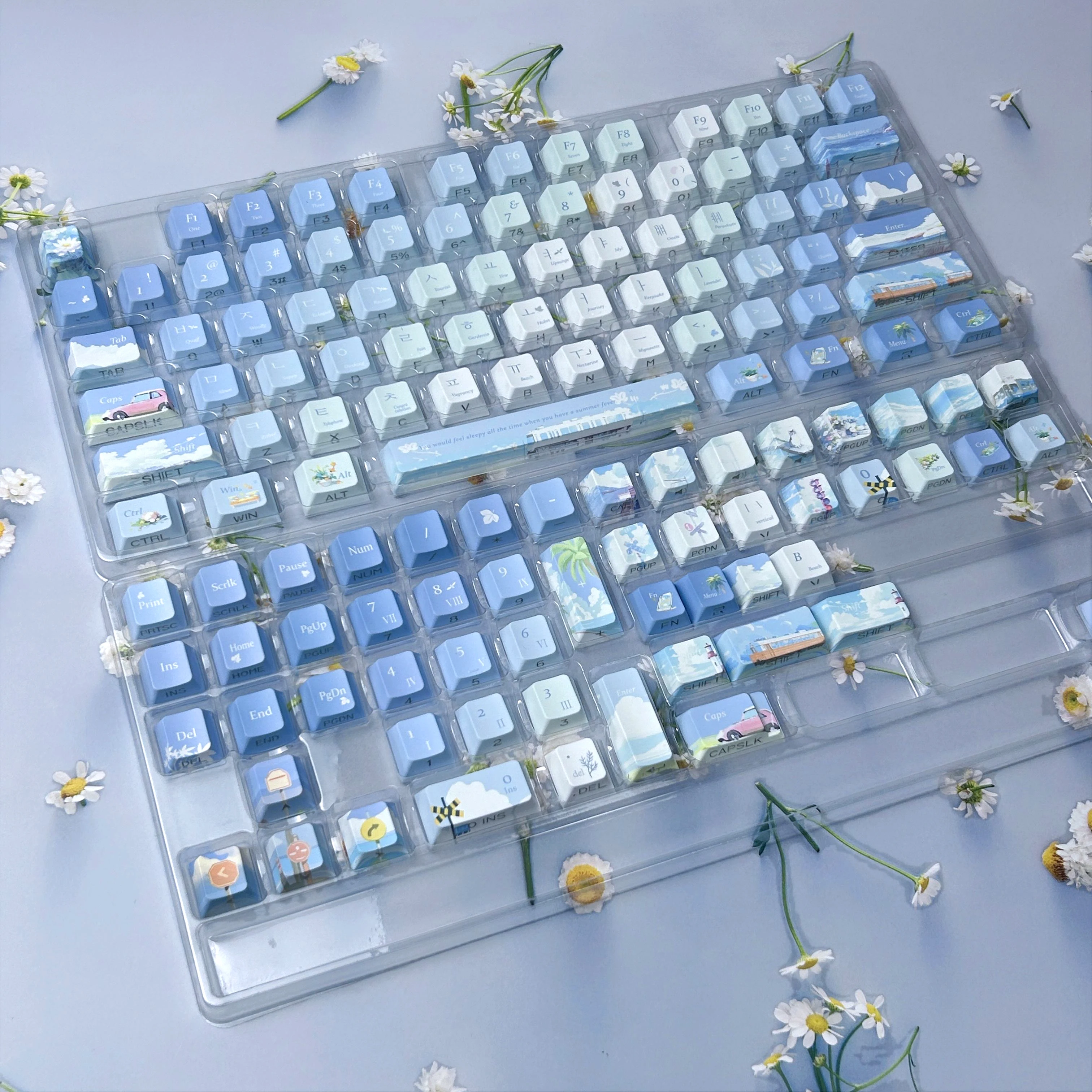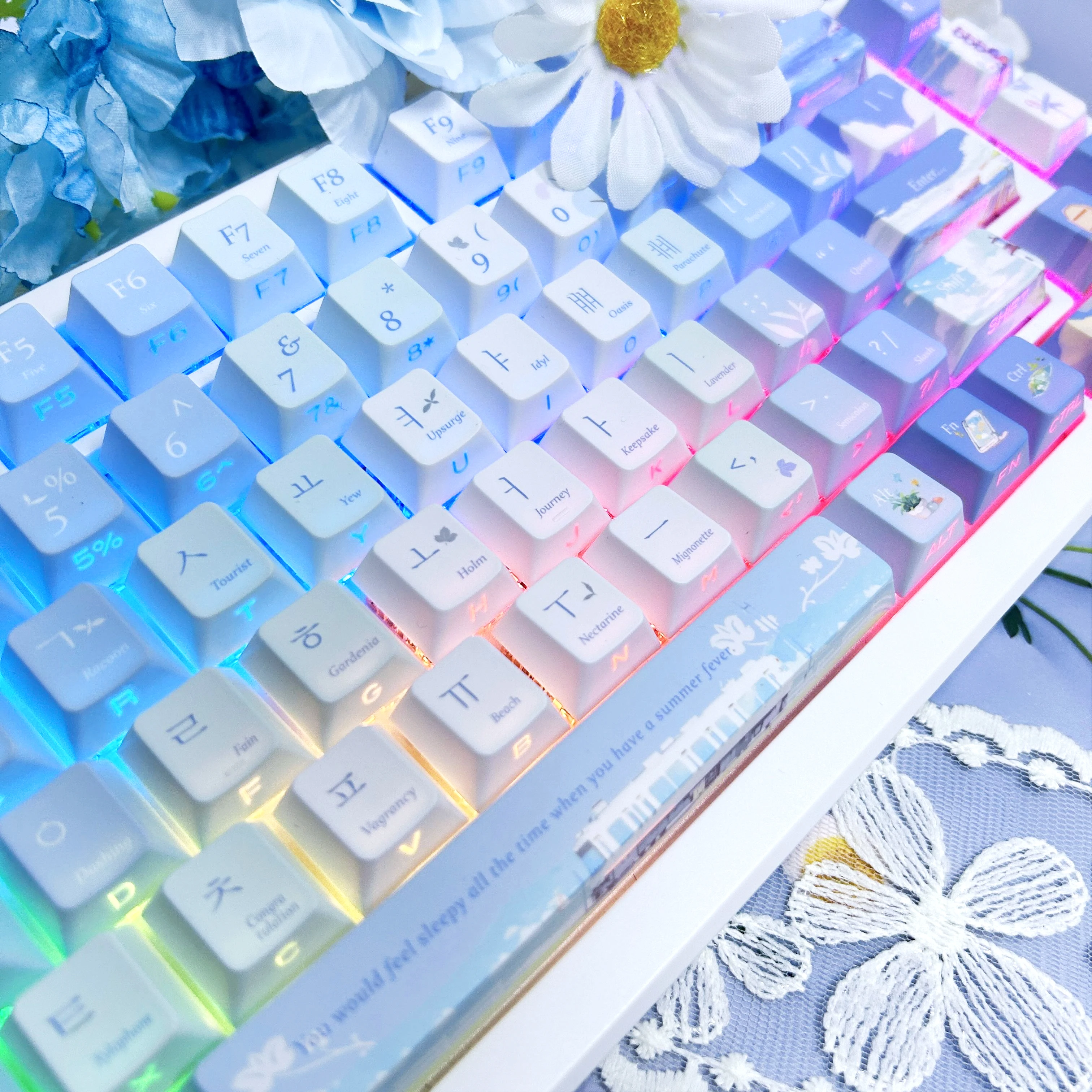 Comprar Teclas coreanas de verano cereza Pbt azul persiguiendo tema fresco de verano 126 teclas teclas personalizadas gradiente Hangul Keycaps