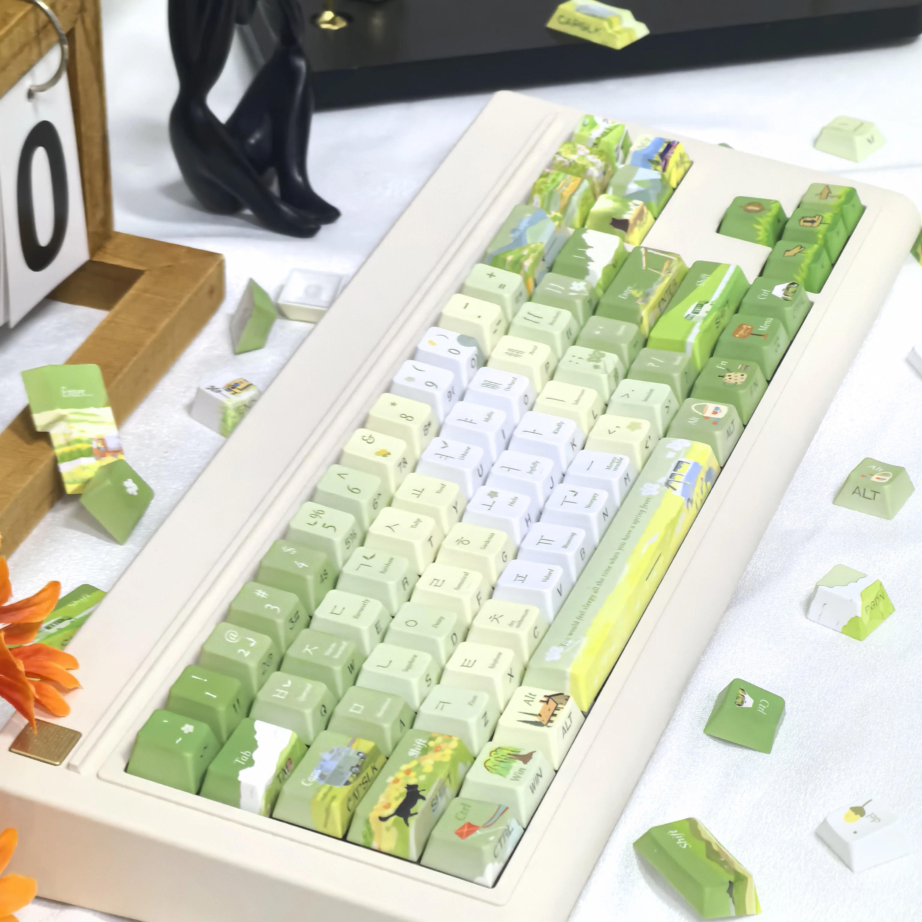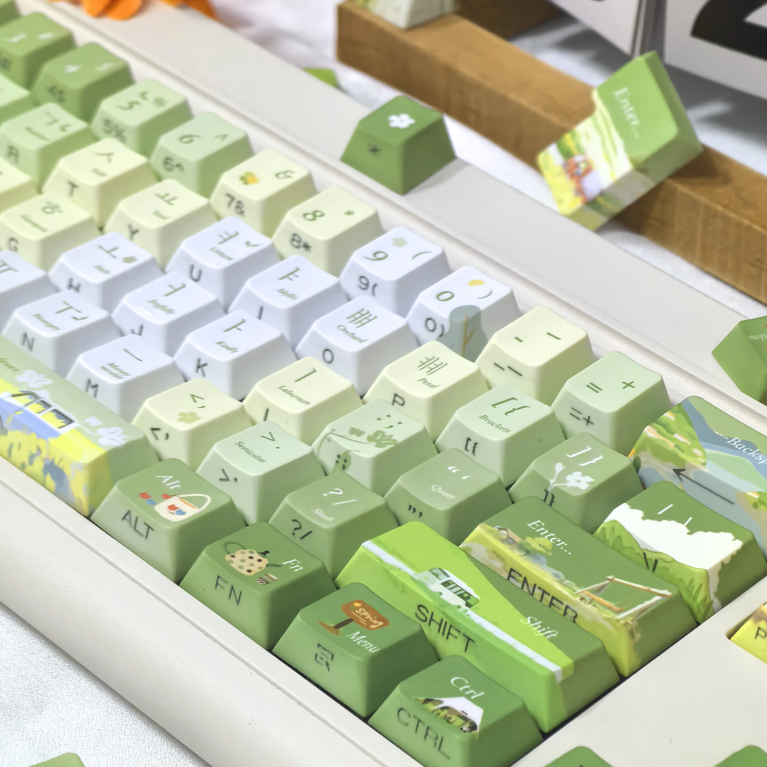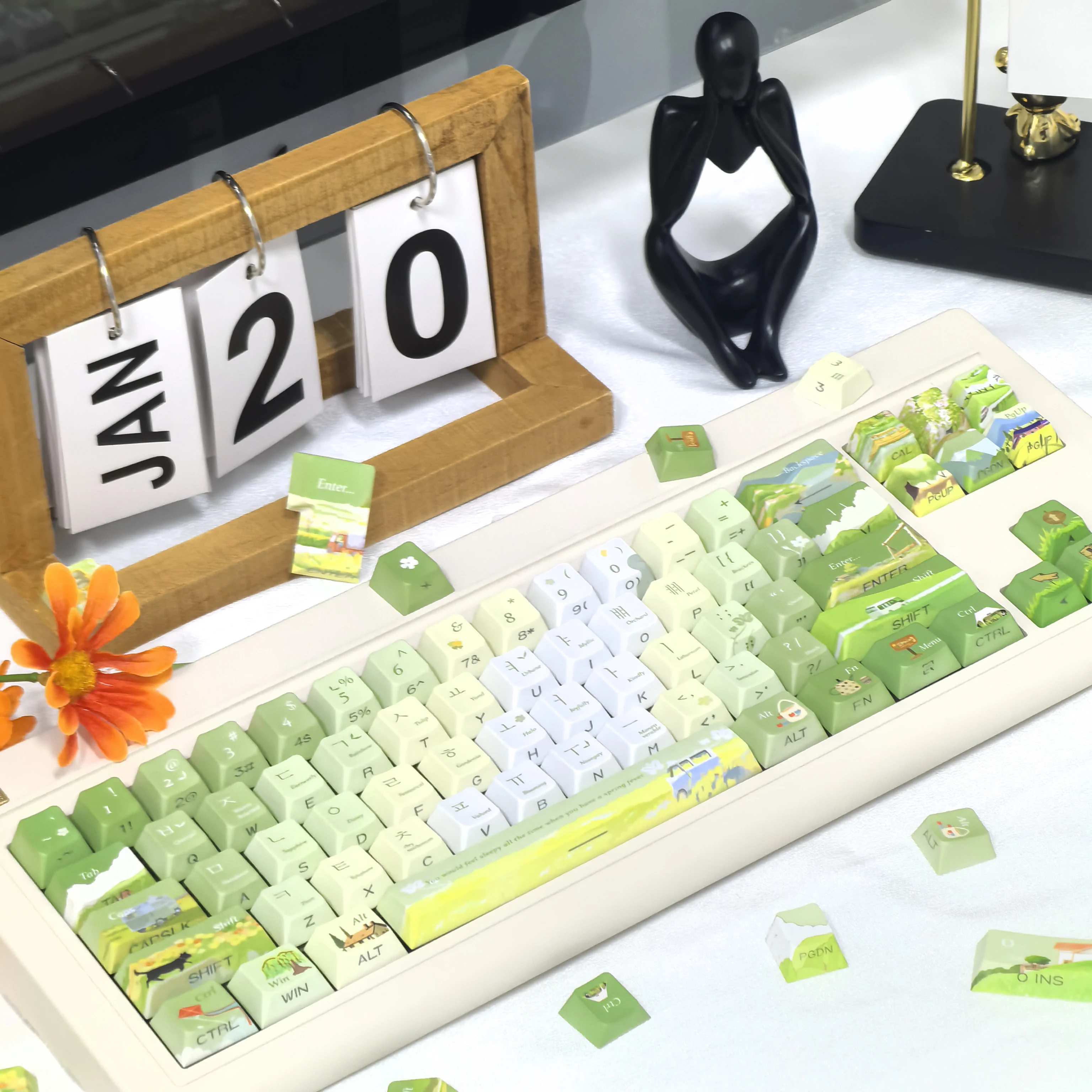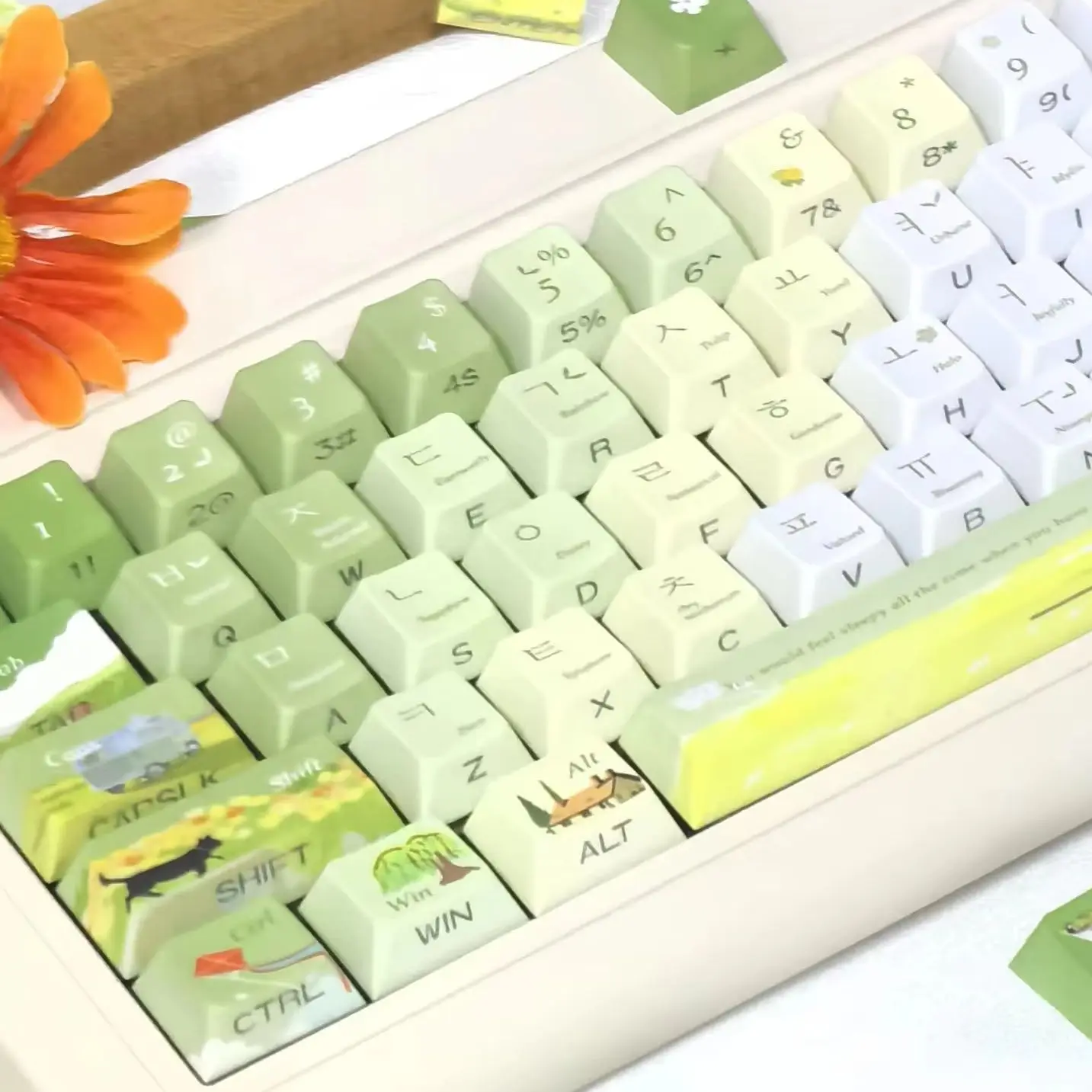 Comprar Teclas coreanas verdes, 126 teclas, cereza Pbt, gradiente, lado translúcido, grabado en inglés para teclado mecánico personalizado,한Disfrute