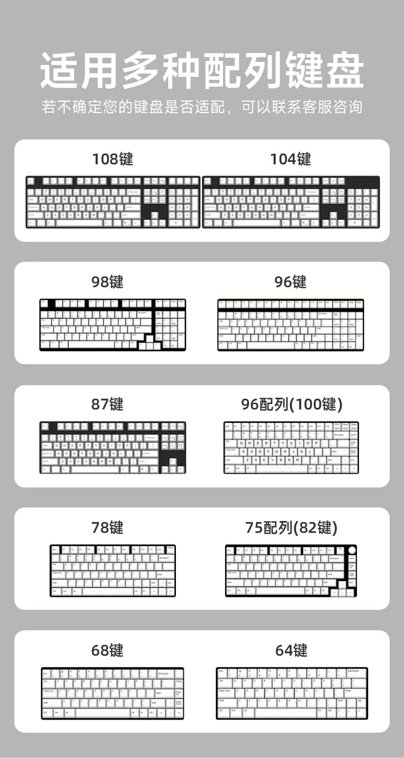 104 teclas solo aptas para teclados mecánicos con diseños a continuación (este es el precio de liquidación, las tapas de los teclados están empaquetadas en bolsas, no compre si le importa):