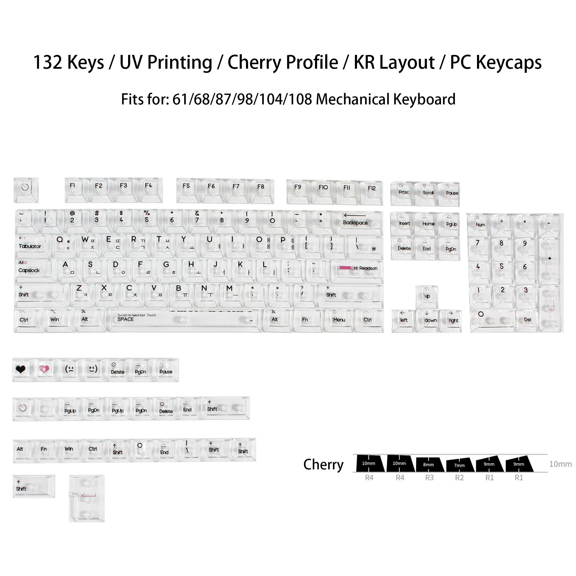 Comprar Teclas de cristal con impresión UV de 132 teclas, diseño coreano, perfil de cereza, teclas de PC transparentes blancas para interruptores MX, teclado para juegos