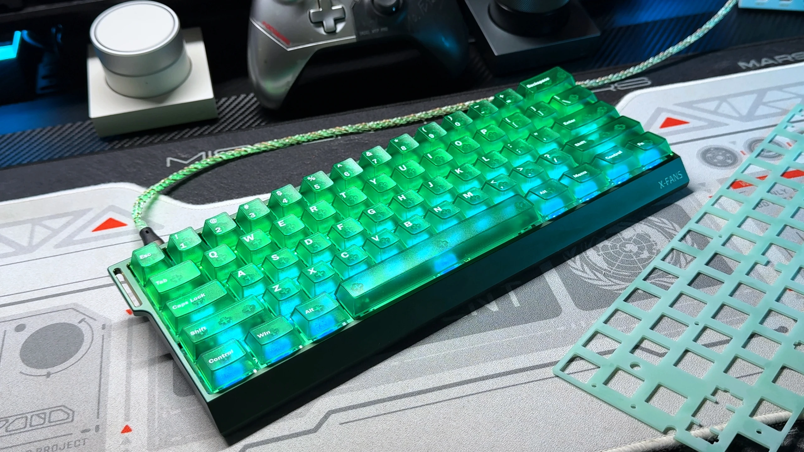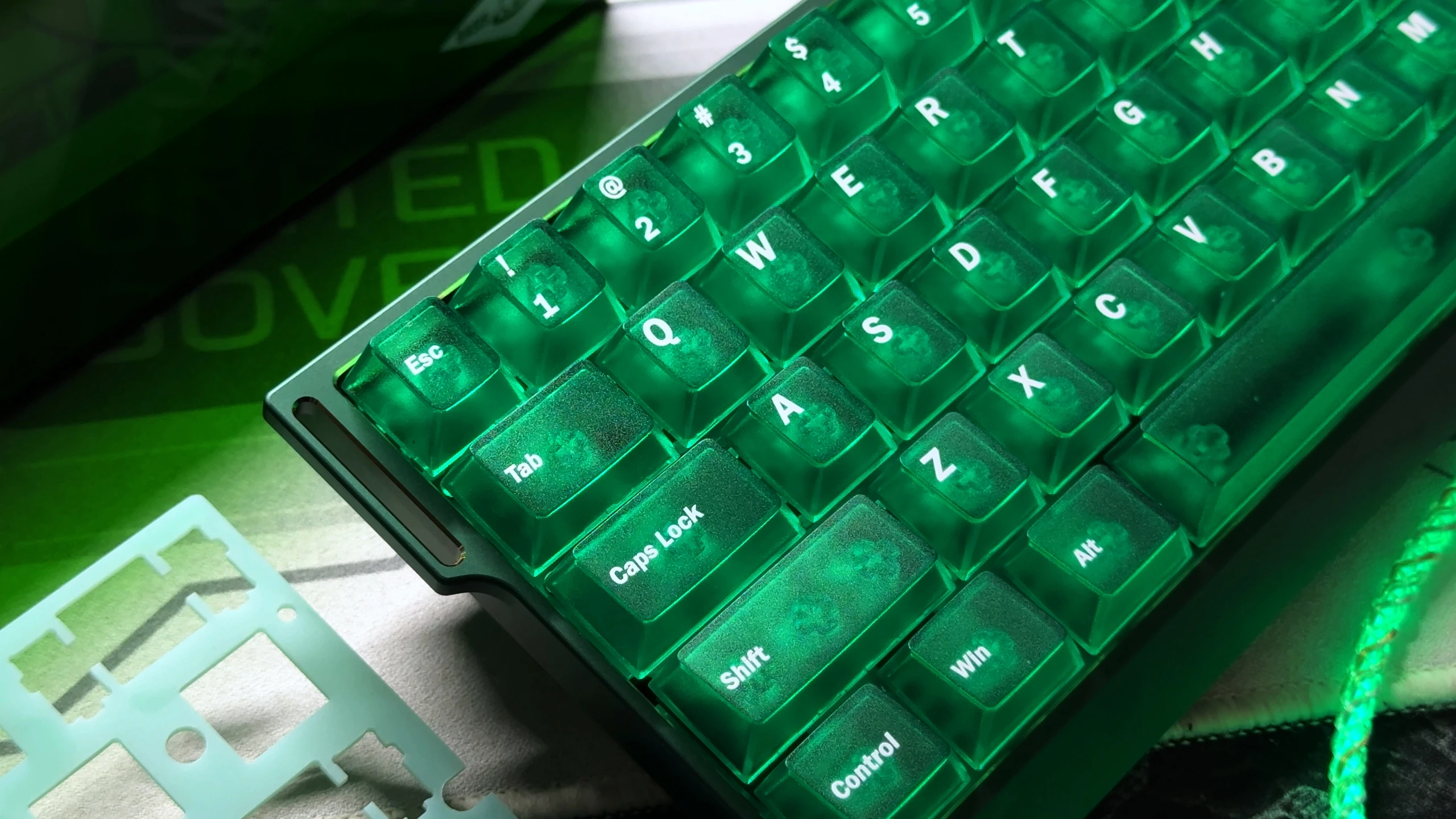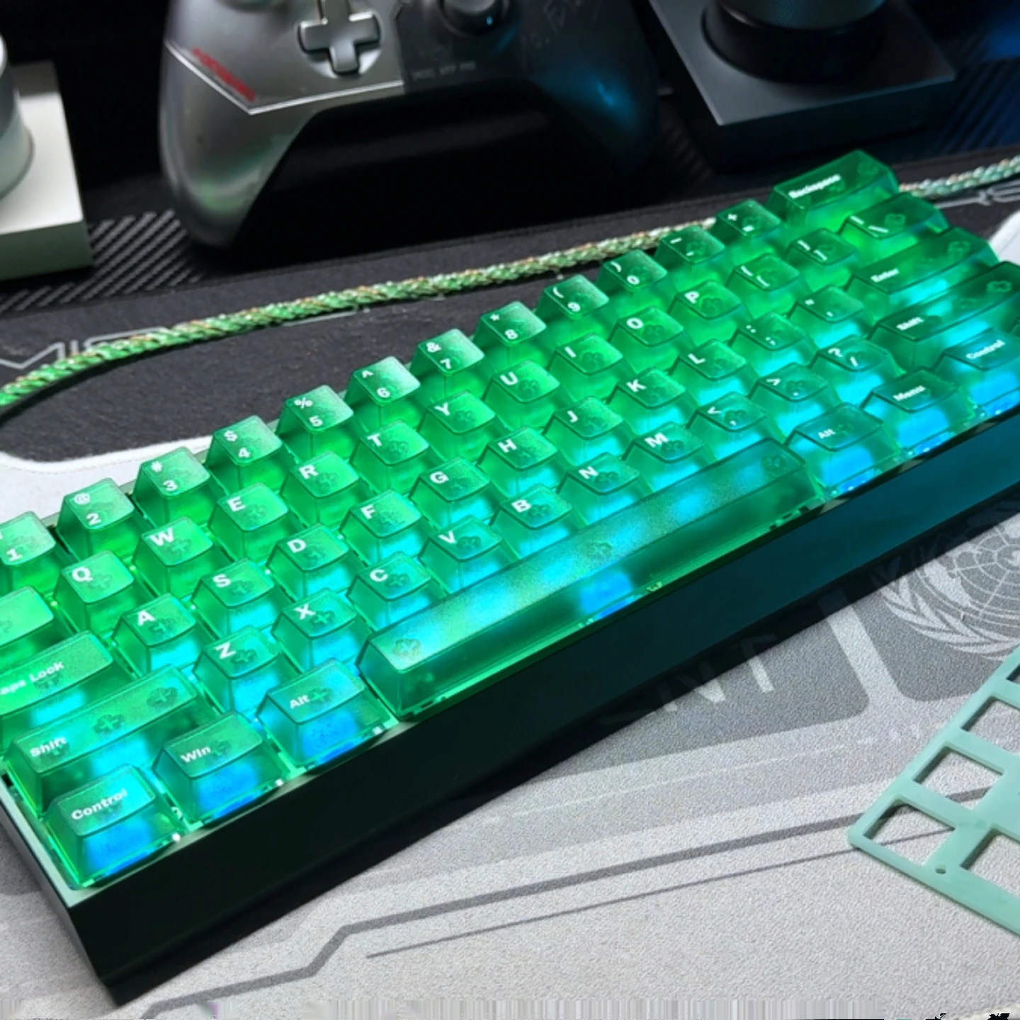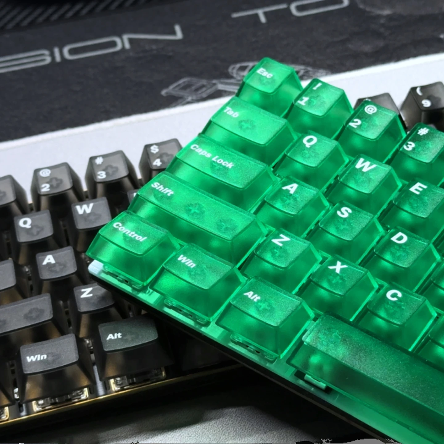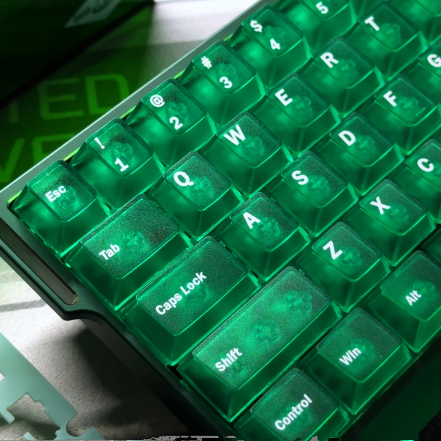 Comprar Teclas de cristal nebuloso verde personalizadas, teclas ABS de doble disparo, teclas transparentes mate, perfil de cereza para interruptores MX, teclado de jugador