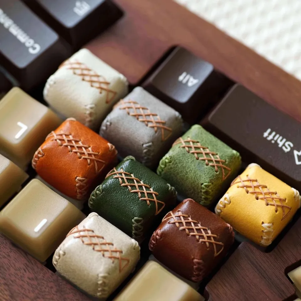 Teclas cuadradas pequeñas, personalizadas, originales, Retro, hechas a mano, de cuero genuino, 1 unidad, teclado de oficina para deportes electrónicos