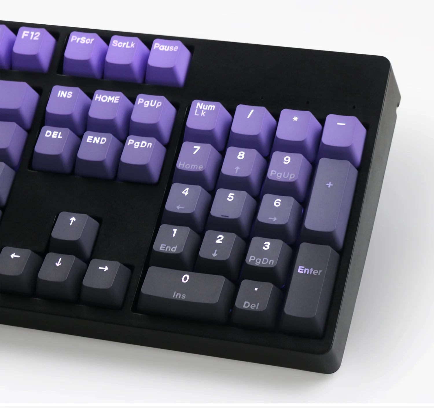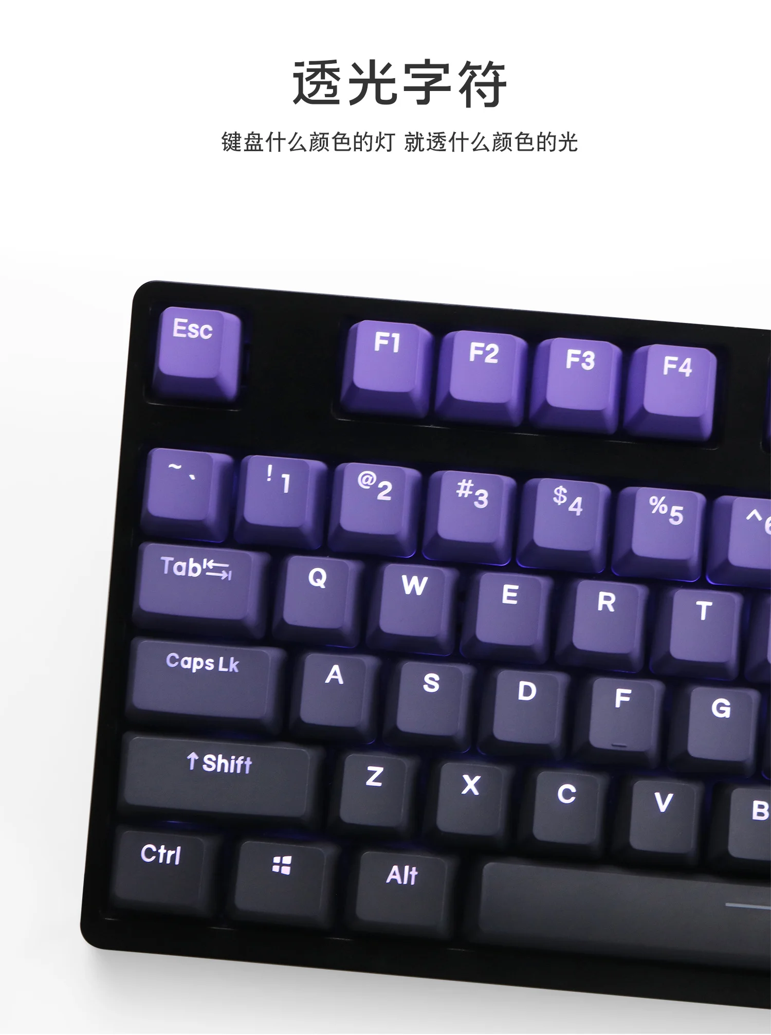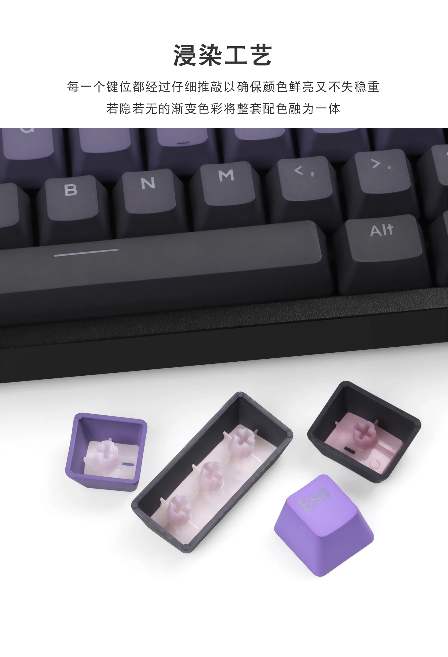 Comprar Teclas con degradado de color púrpura y negro para teclado de juego, teclas con tinte retroiluminado PBT, perfil subcama OEM, 68, 84, 87, 104
