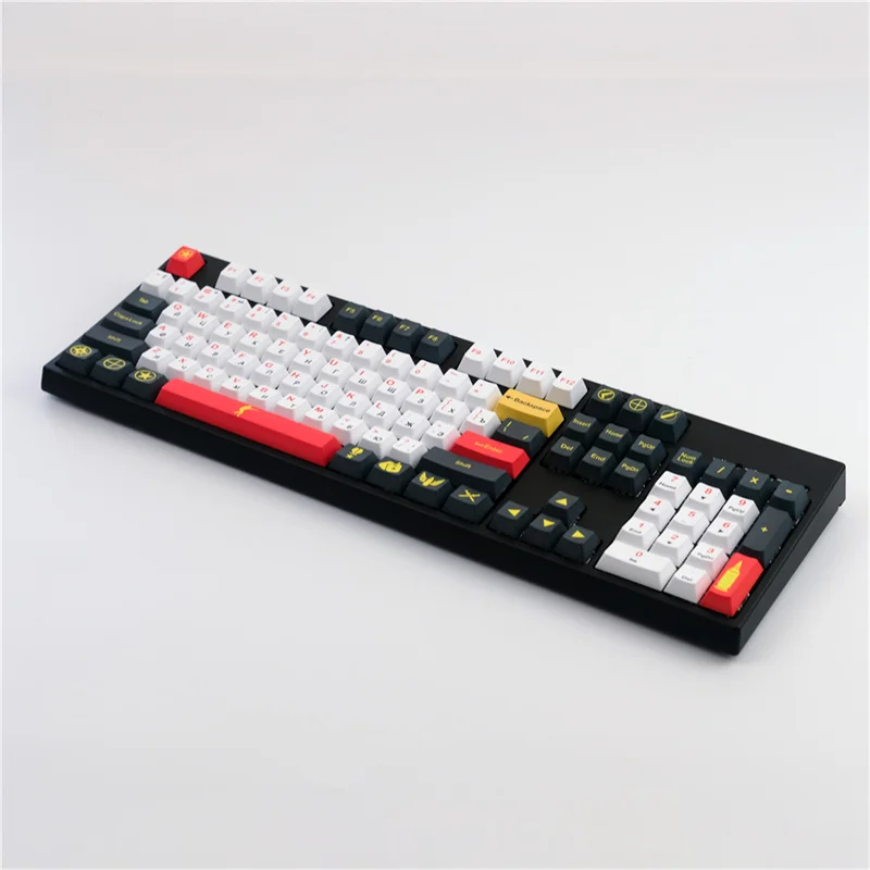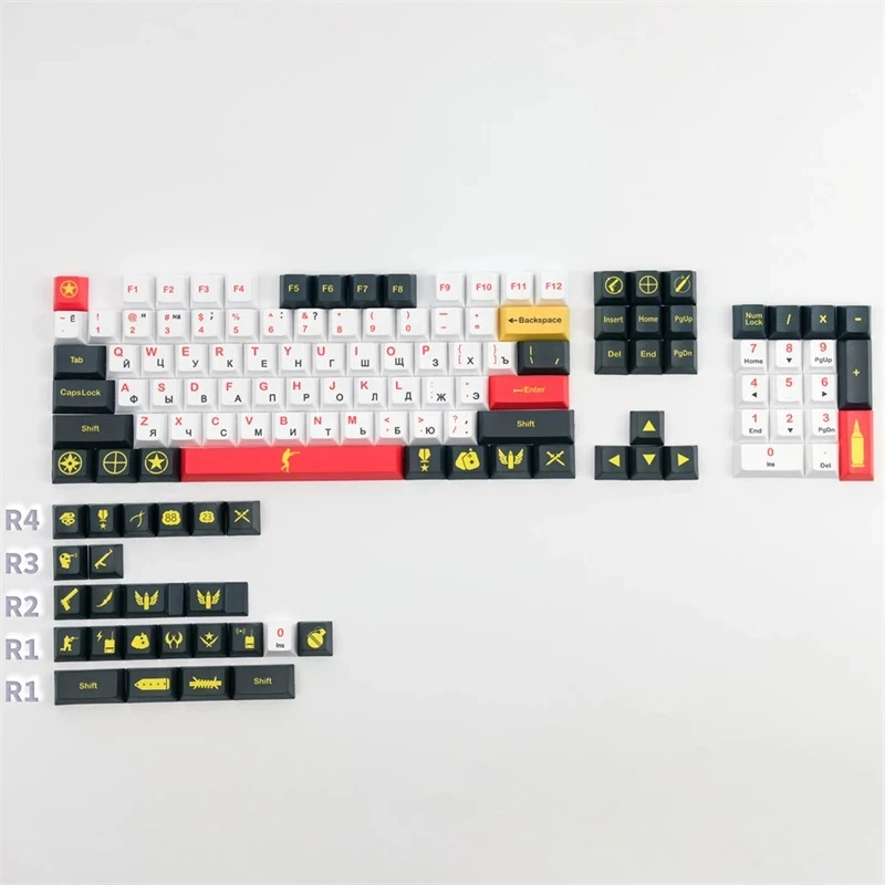 PBT Rojo Negro equipo de asalto Keycap 128 keysRussian root Russian font Russian Cherry profile Dye-Sublimatio teclas de teclado mecánico