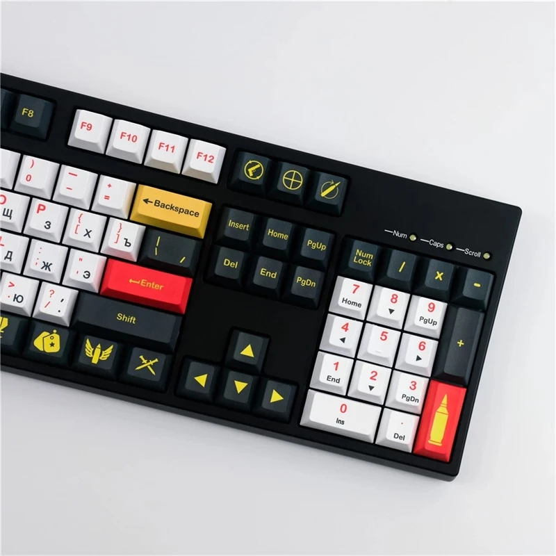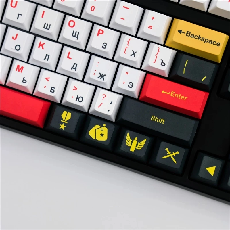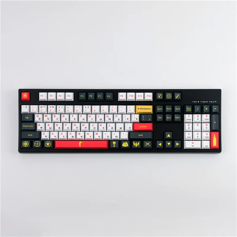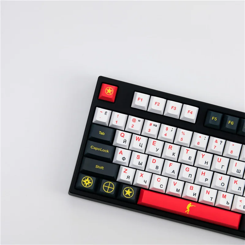 PBT Rojo Negro equipo de asalto Keycap 128 keysRussian root Russian font Russian Cherry profile Dye-Sublimatio teclas de teclado mecánico