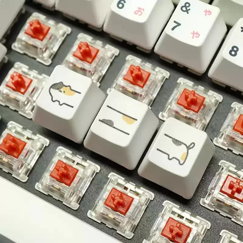 Comprar Teclas de dibujos animados de cola larga, Material Pbt personalizado lindo, R4, Teclado mecánico altamente opaco, gato, perro, conejo, nuevo