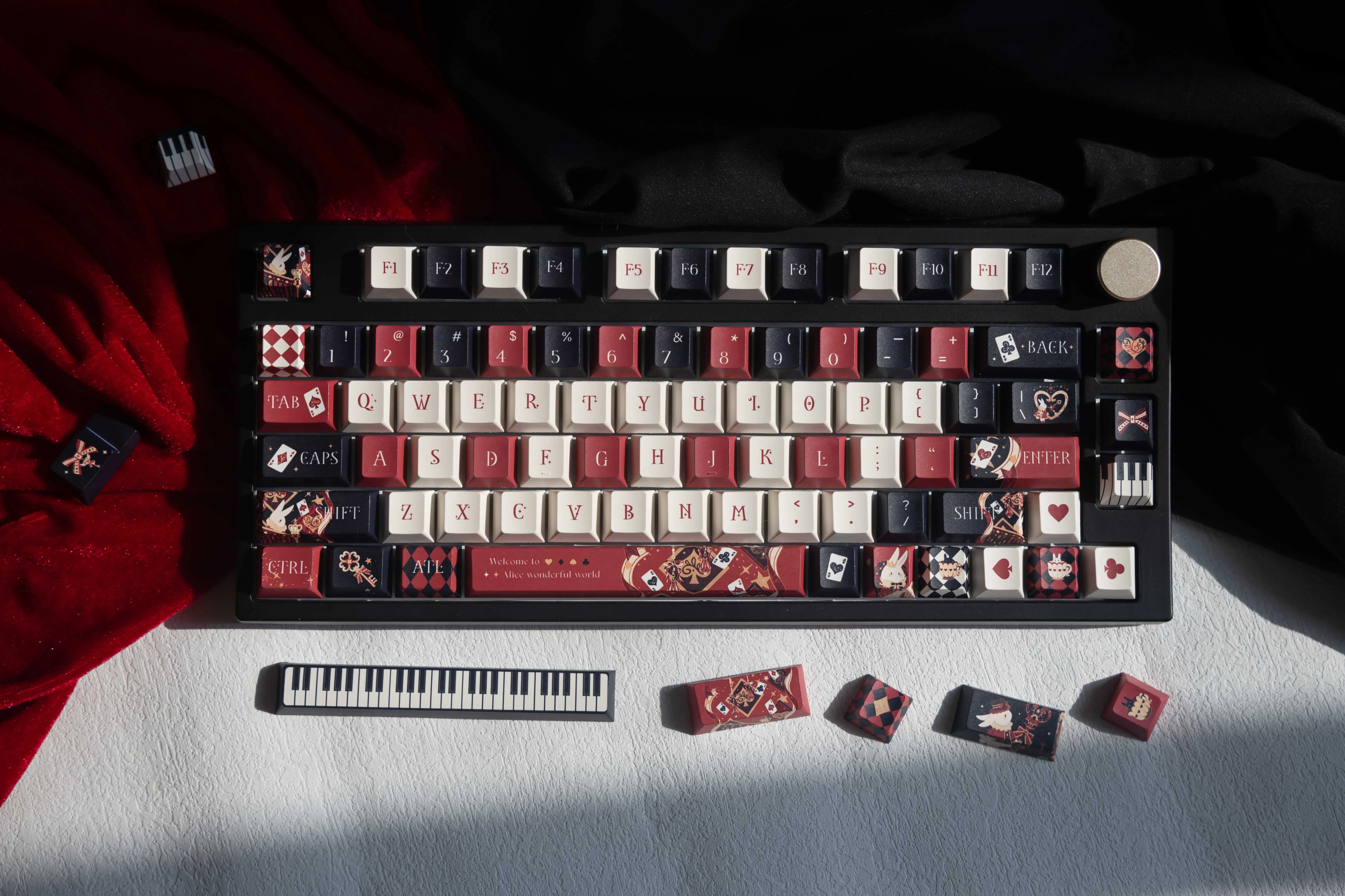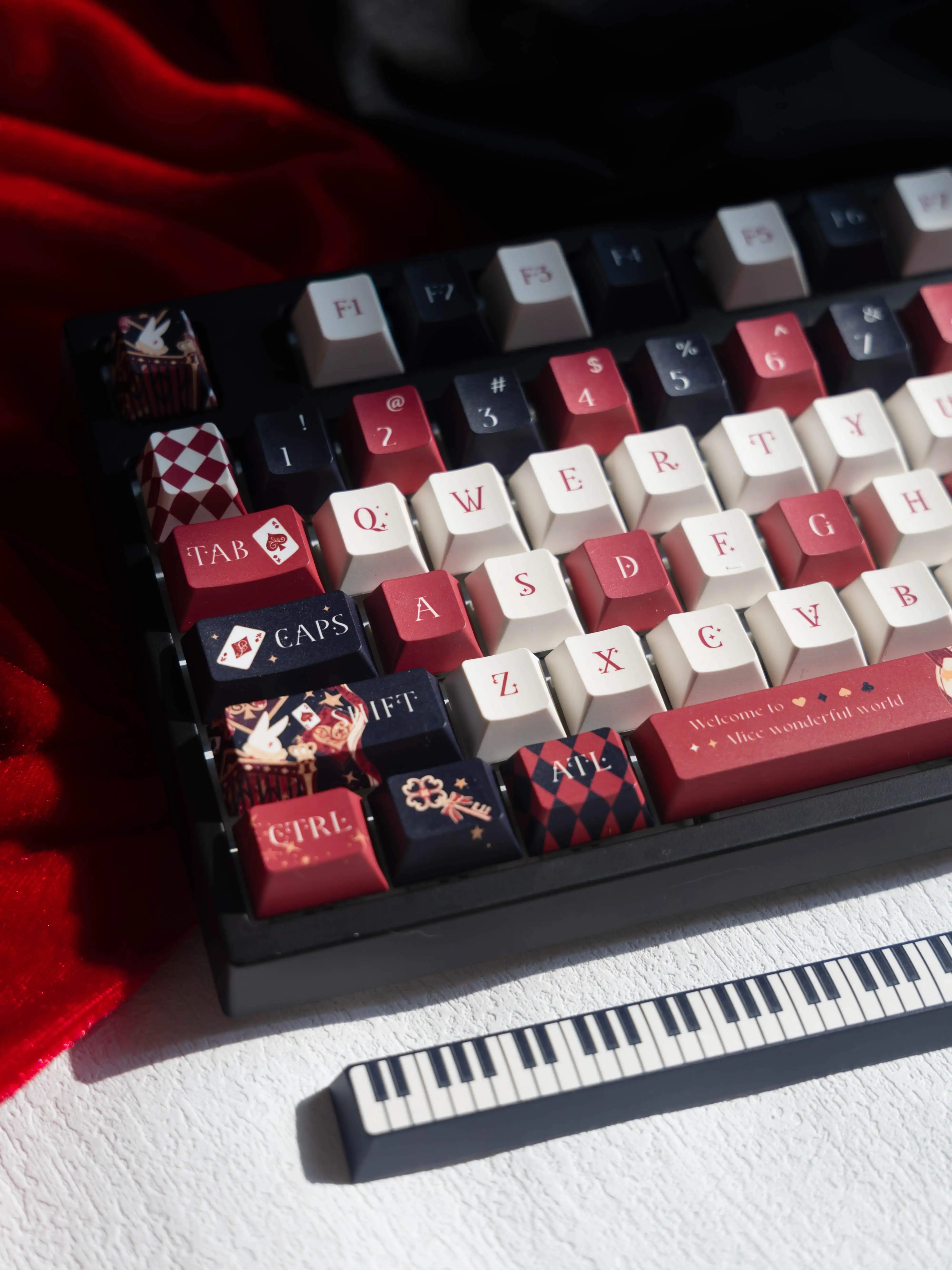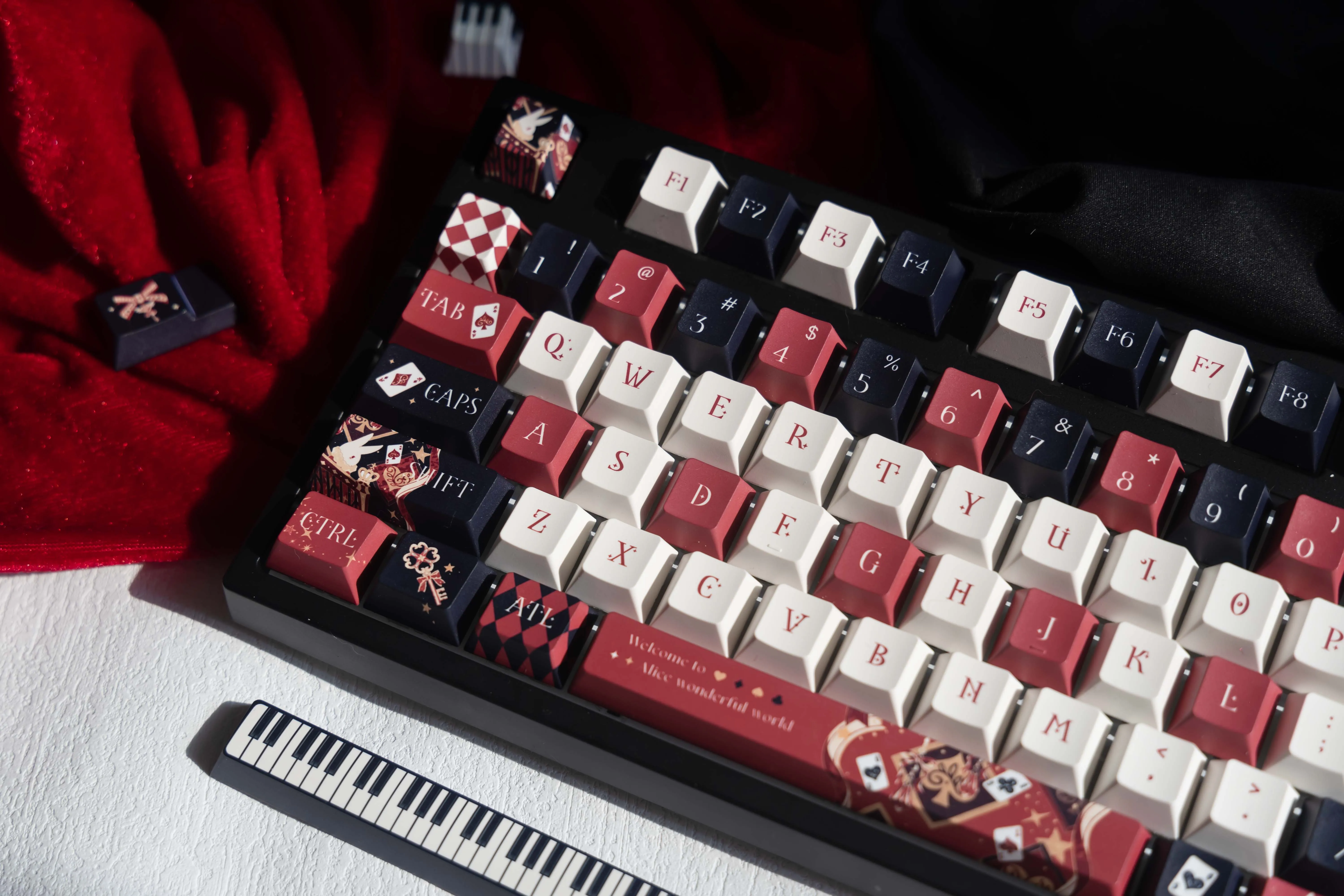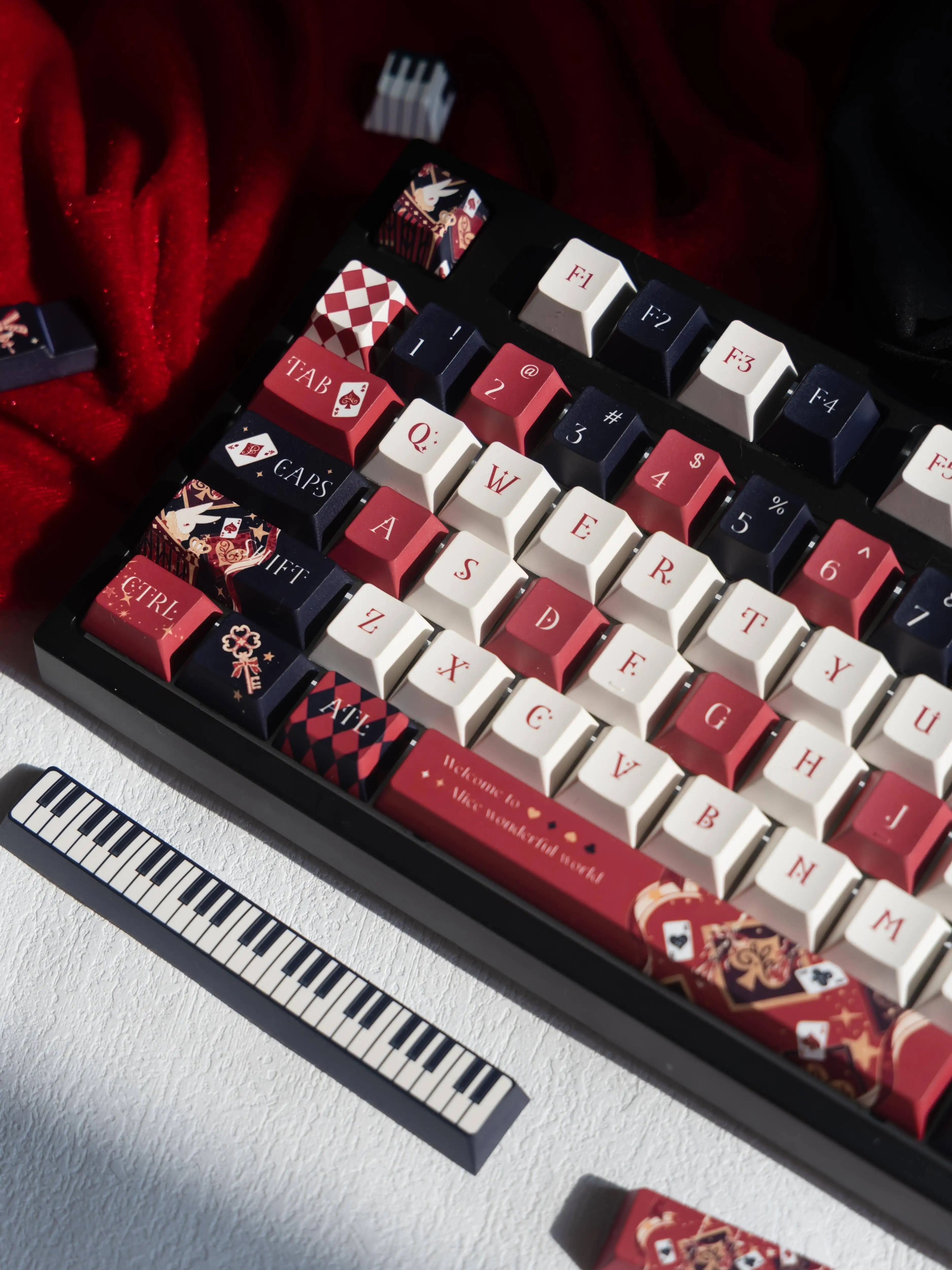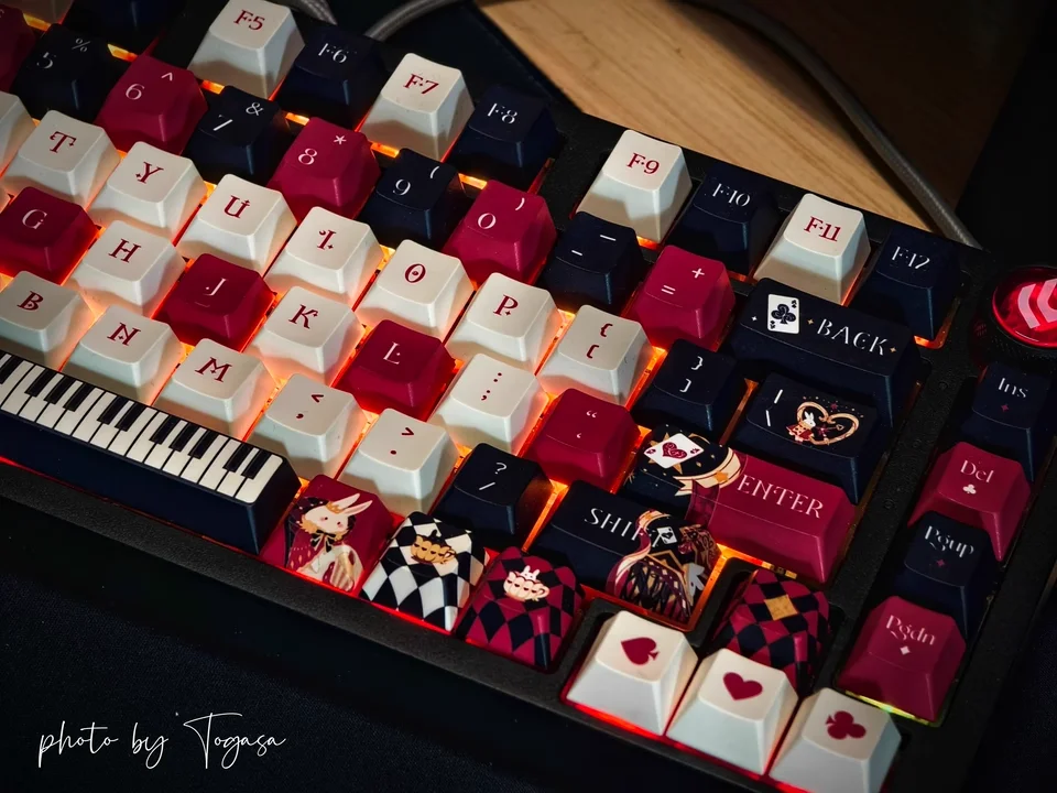 Comprar Teclas de dibujos animados dibujadas a mano Alice, 138 teclas, sublimación de tinte PBT, perfil de cereza personalizado, teclas de juego, accesorios para teclado mecánico