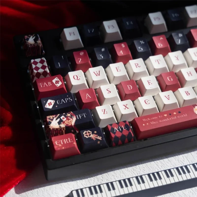 Comprar Teclas de dibujos animados dibujadas a mano Alice, 138 teclas, sublimación de tinte PBT, perfil de cereza personalizado, teclas de juego, accesorios para teclado mecánico