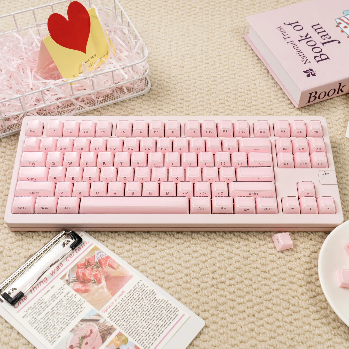 Teclas con diseño ISO de gelatina rosa, 136 teclas, teclas ABS transparentes de doble disparo con iluminación lateral para interruptores MX, teclado para juegos, perfil OEM