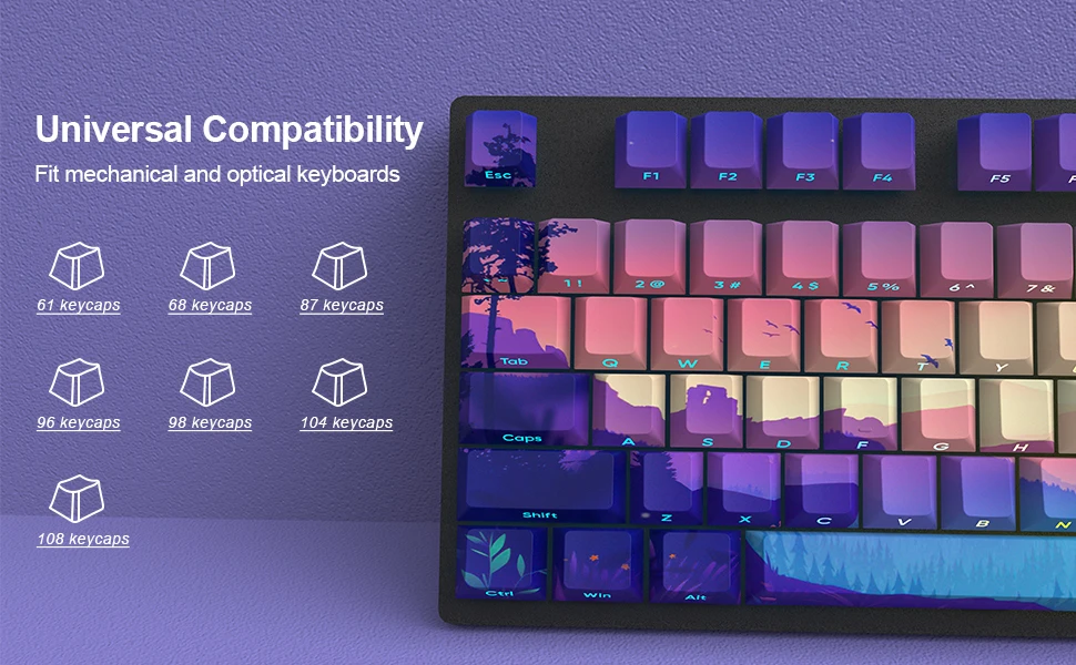 【Ampliamente compatible】Este juego de teclas personalizadas contiene 124 teclas. Puede adaptarse a la mayoría de los teclados 60%/65%/75%/80%/96%/100% (61/68/84/75/87/96/980/104/108) como Anne PRO 2, TKL rk68, rk84, etc.