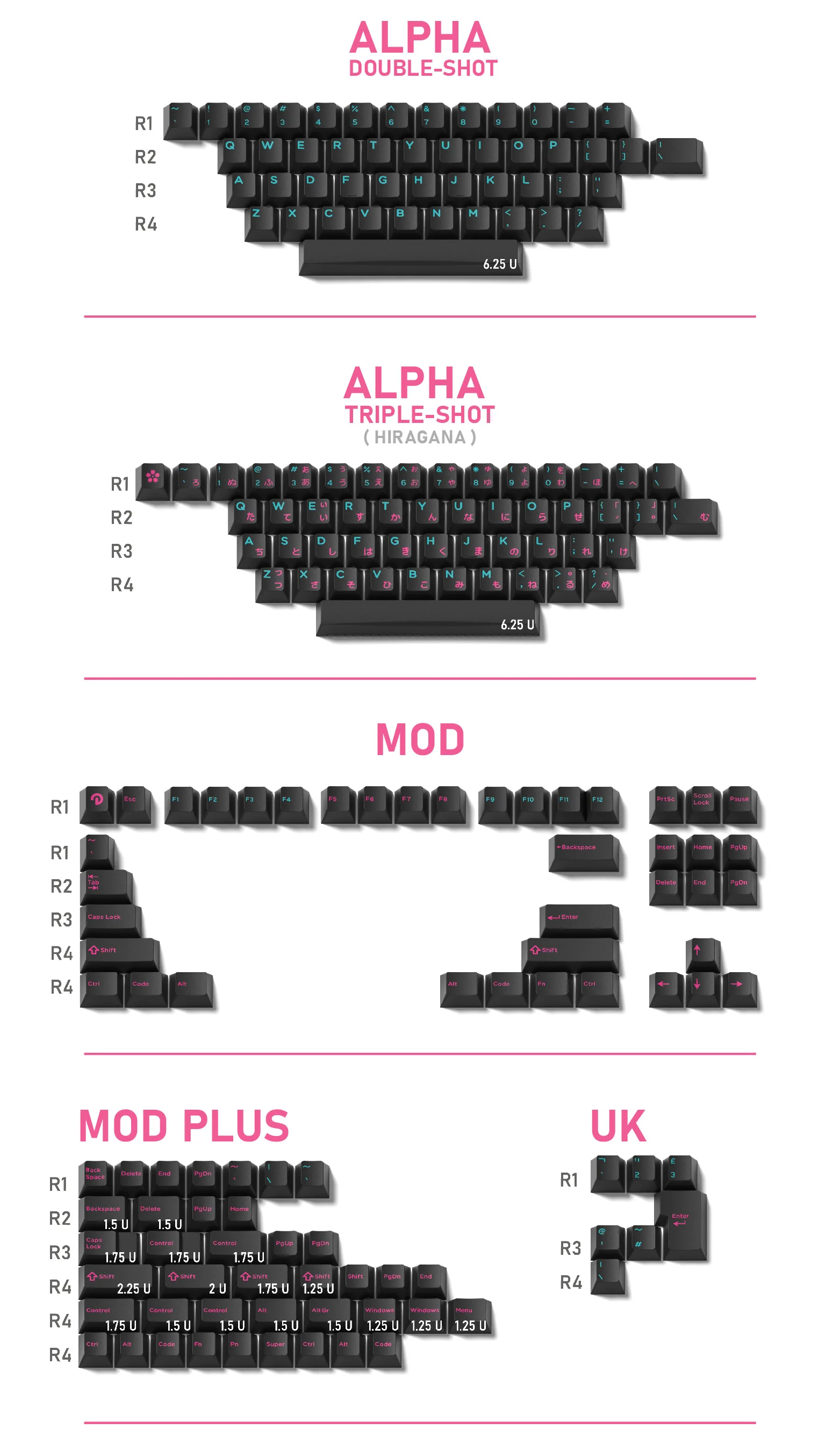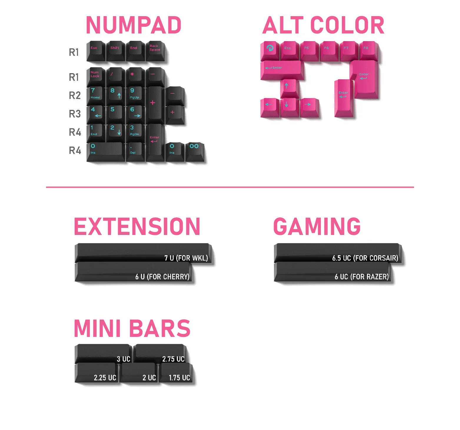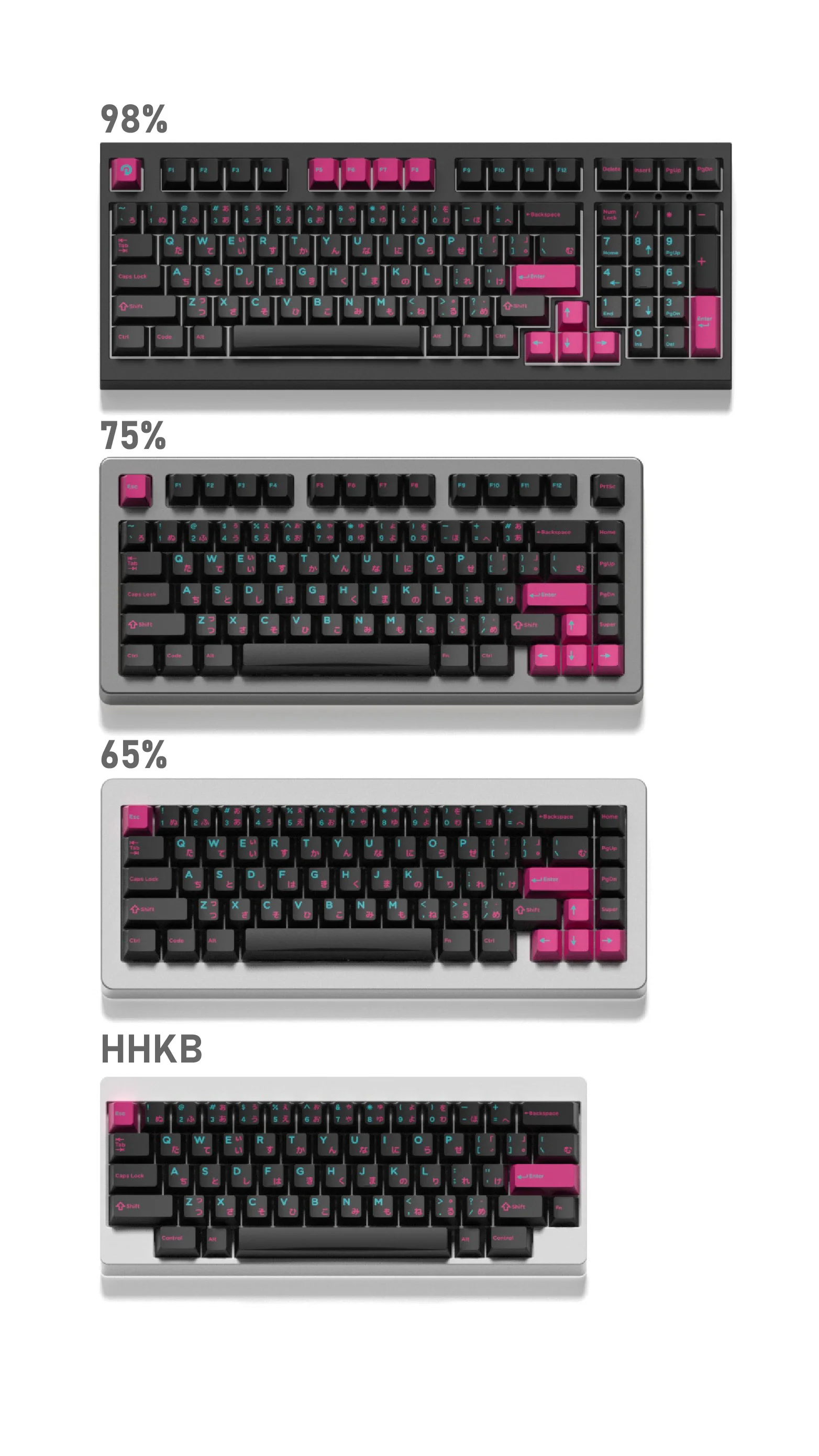 Domikey Miami Nights Teclas para Teclado mecánico ABS Doble disparo Triple perfil de cereza japonesa Color rojo rosa Personalizar AULA F75 Ajazz AK820 Pro AK-KO FUN60 Pro Mad 60he 68he Machenike K500