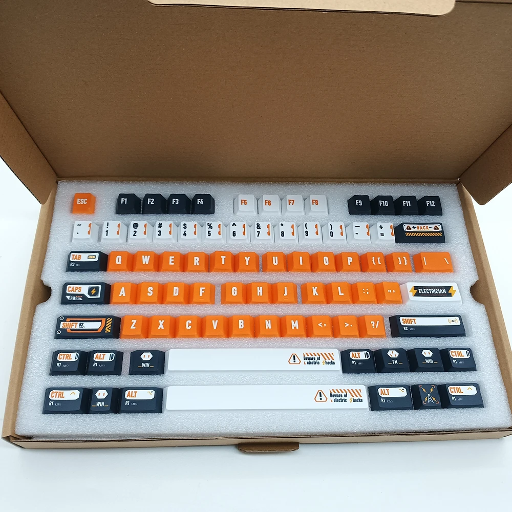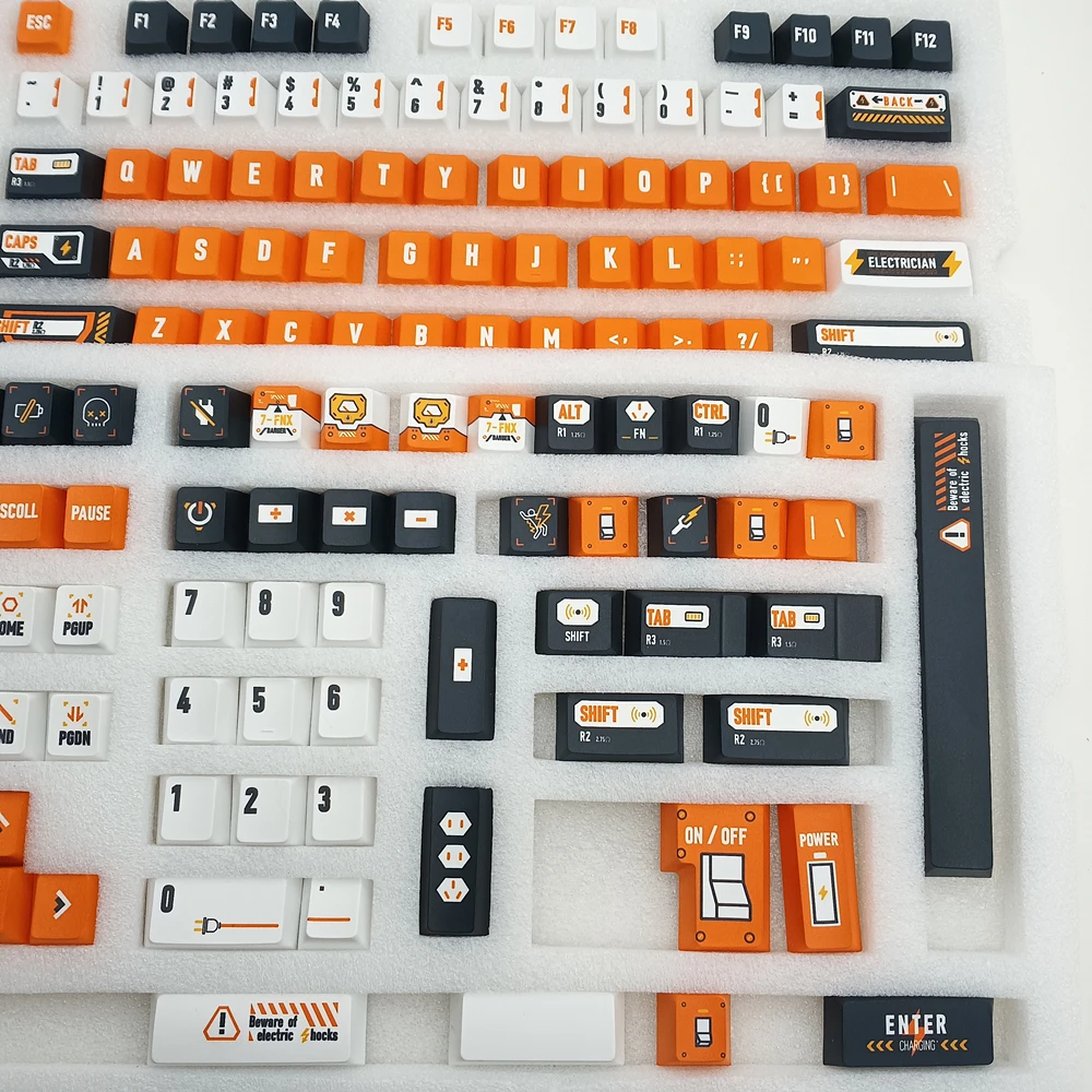 Tecla de electricista PBT de 140 teclas, tema Mecha, ISO Enter, diseño ANSI, perfil de cereza de 1,5mm de espesor, sumergido en tinte para teclado mecánico