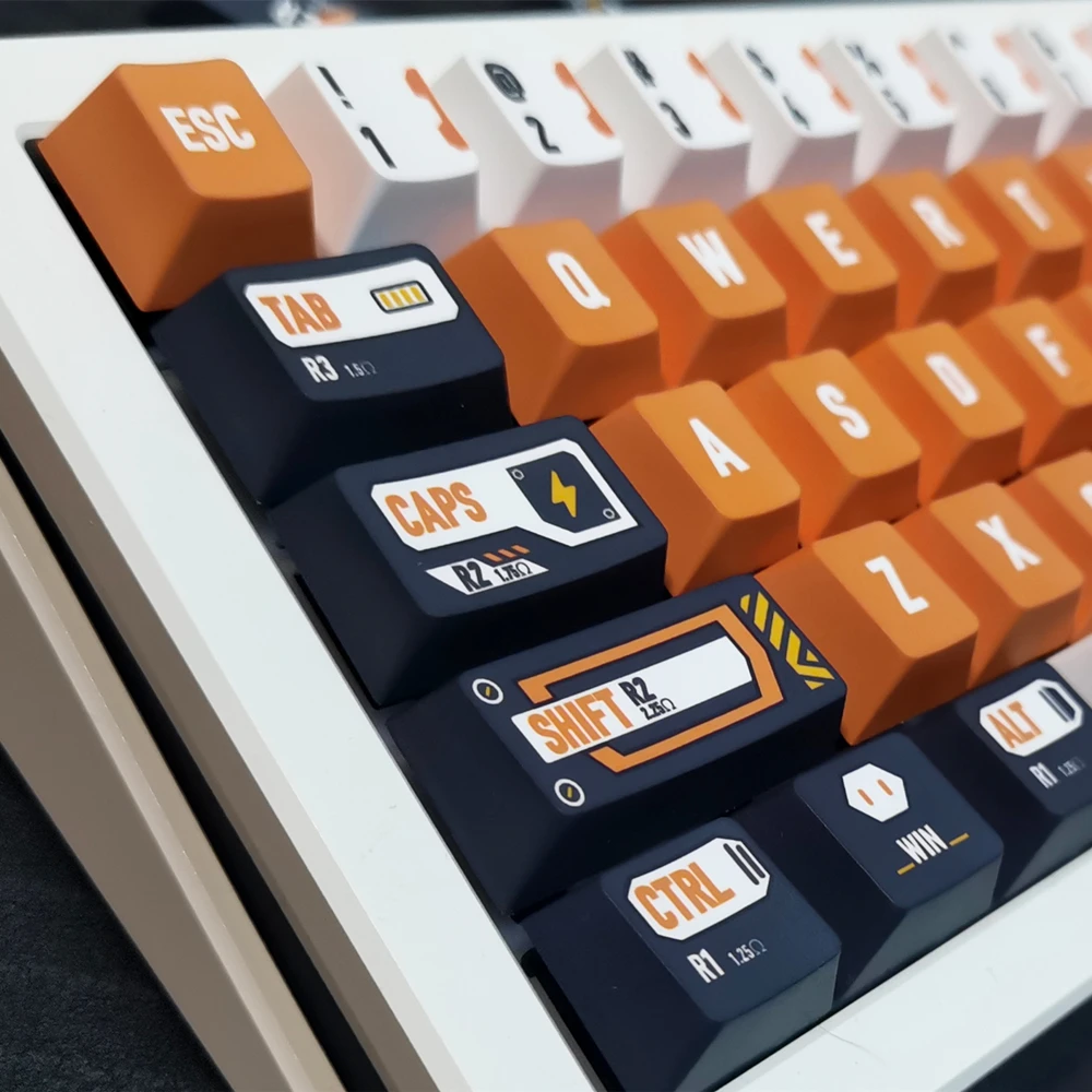 Comprar Teclas de electricista PBT, 140 teclas, tema Mecha, ISO, entrada, diseño ANSI, 1,5mm de espesor, perfil de cereza, subcama de tinte para teclado mecánico