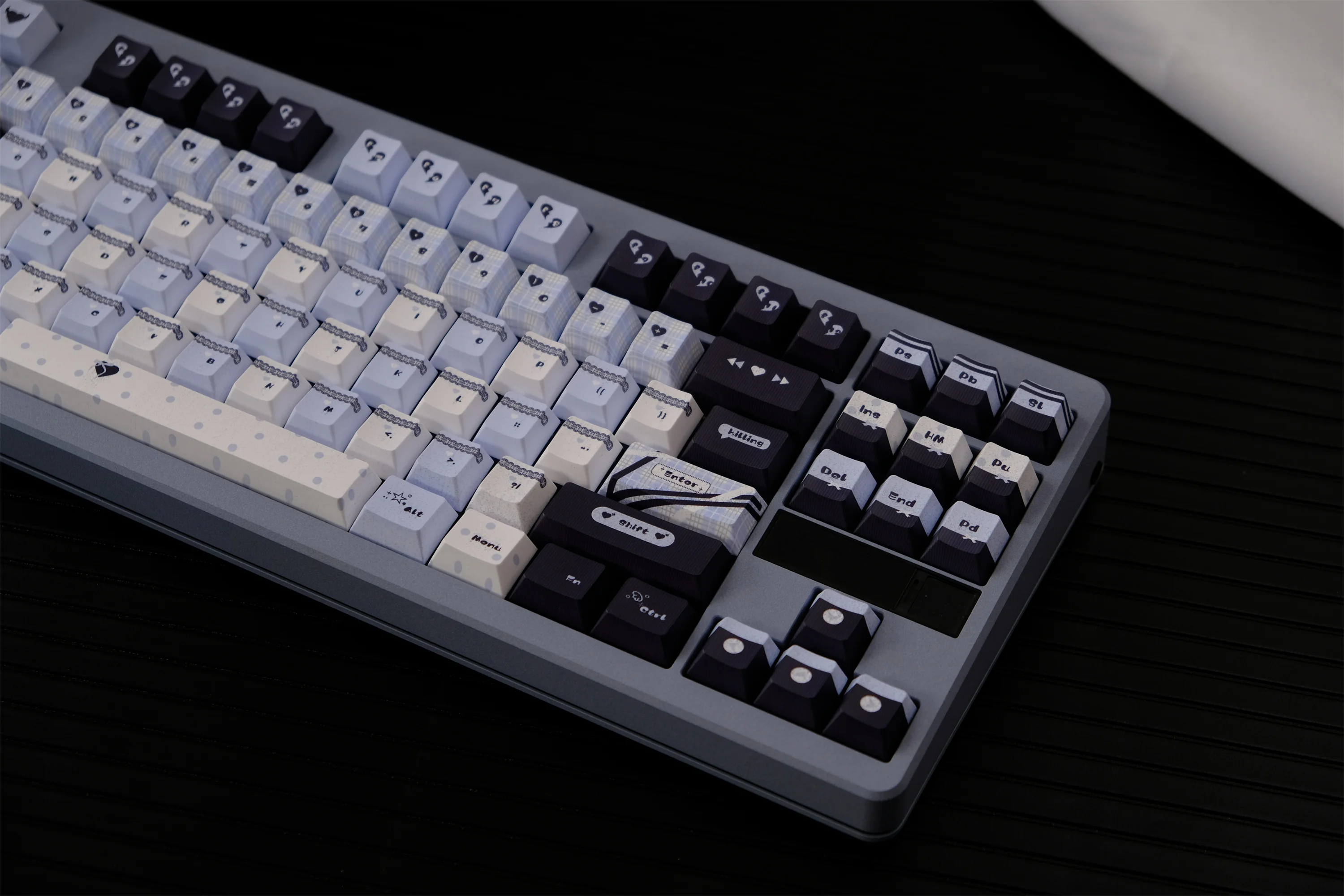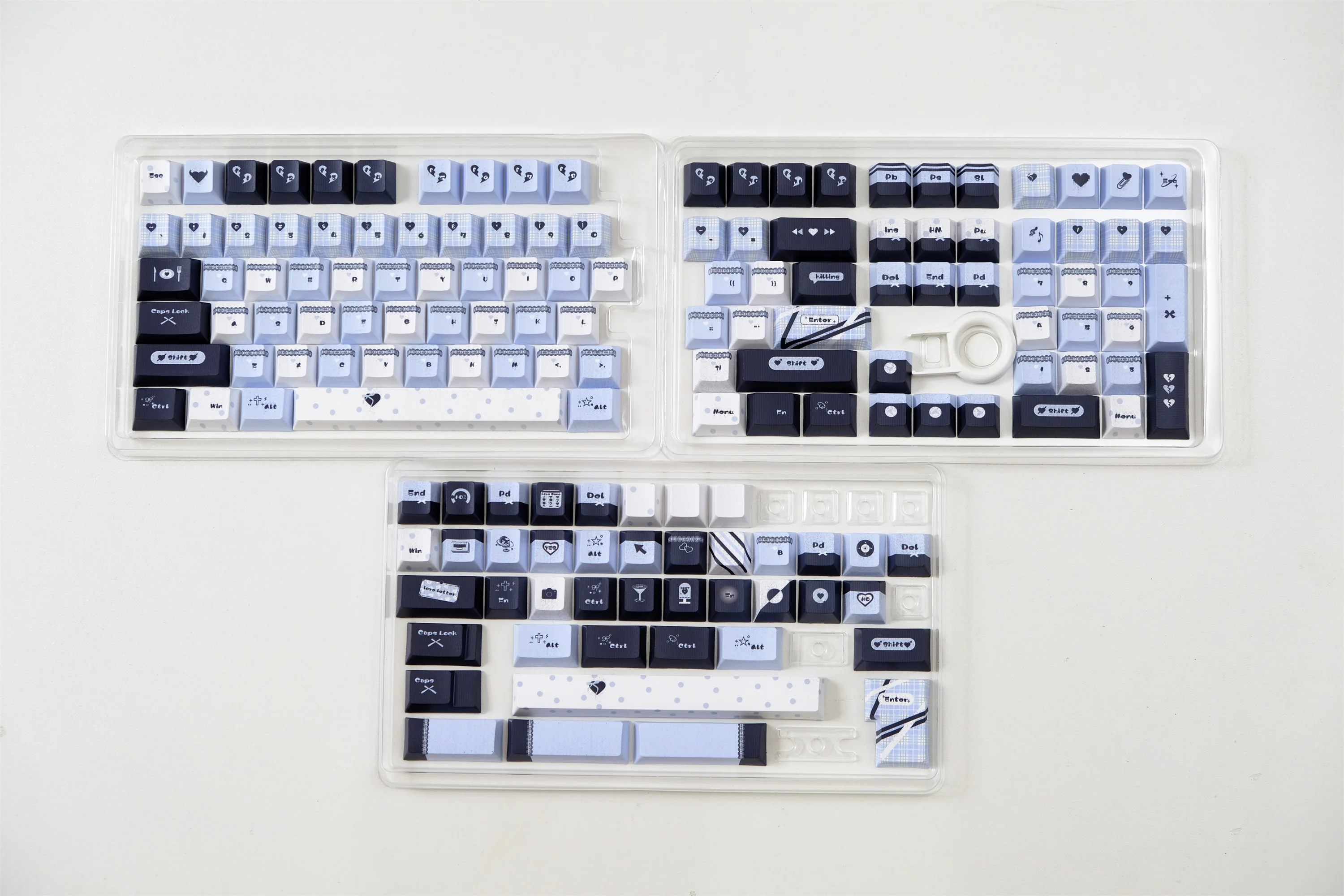 Comprar Teclas de encaje azul y negro, 151 teclas, Material PBT, perfil de cereza, DYE-SUB, teclas personalizadas para teclado mecánico CHERRY MX Switch