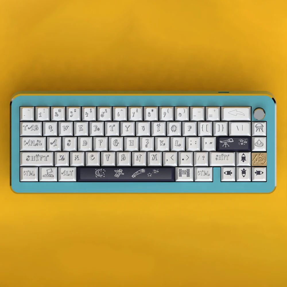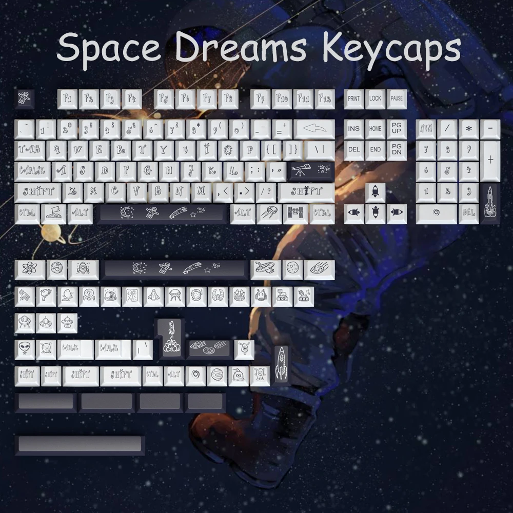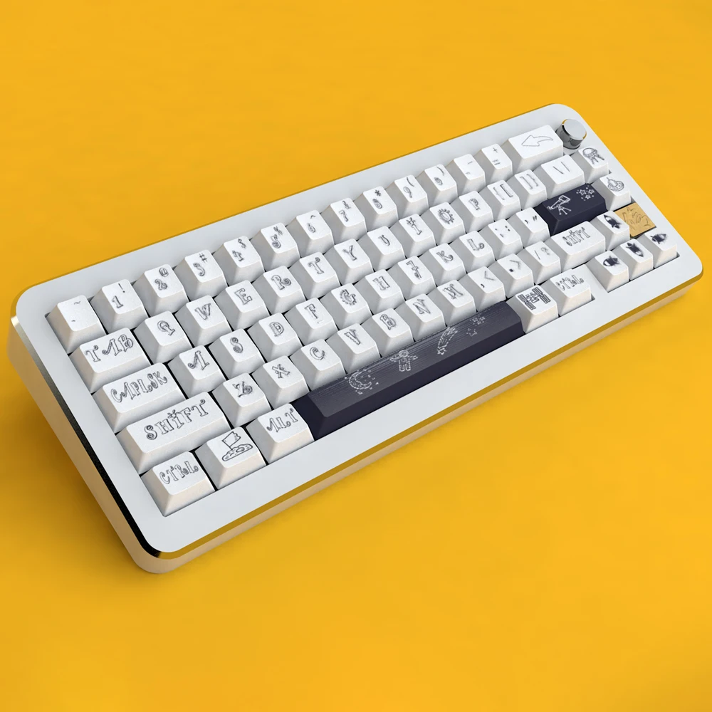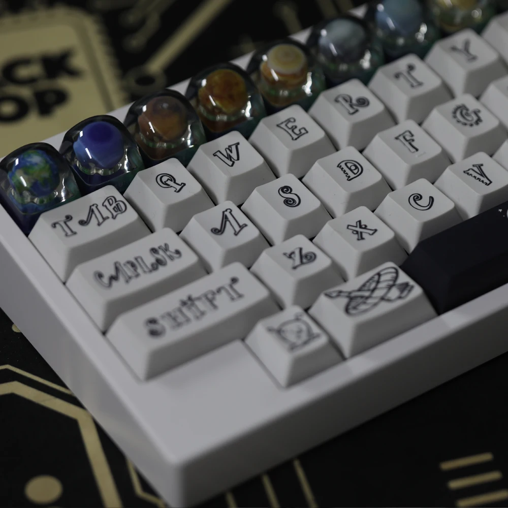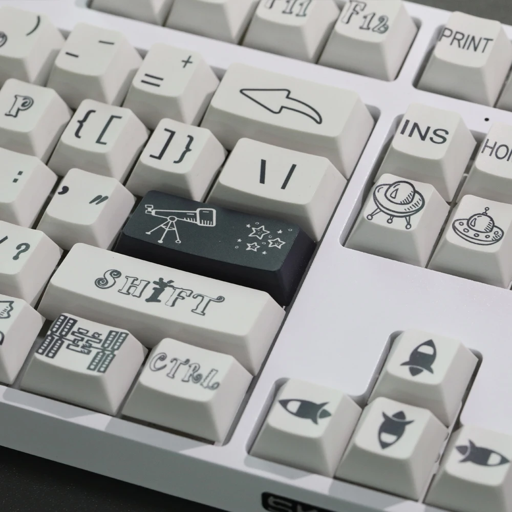 Comprar Teclas de espacio exterior PBT, perfil de cereza, teclas minimalistas en blanco y negro, teclas de sublimación de tinte para teclado MX F75 F99 RK84 GMK67 87