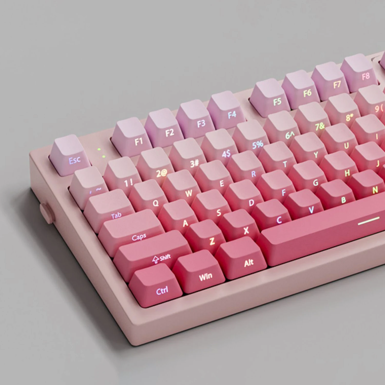 Comprar Teclas con estampado lateral brillante de 135 teclas, teclas PBT de doble disparo de color rosa degradado, perfil de cereza para teclado de interruptores Cherry MX