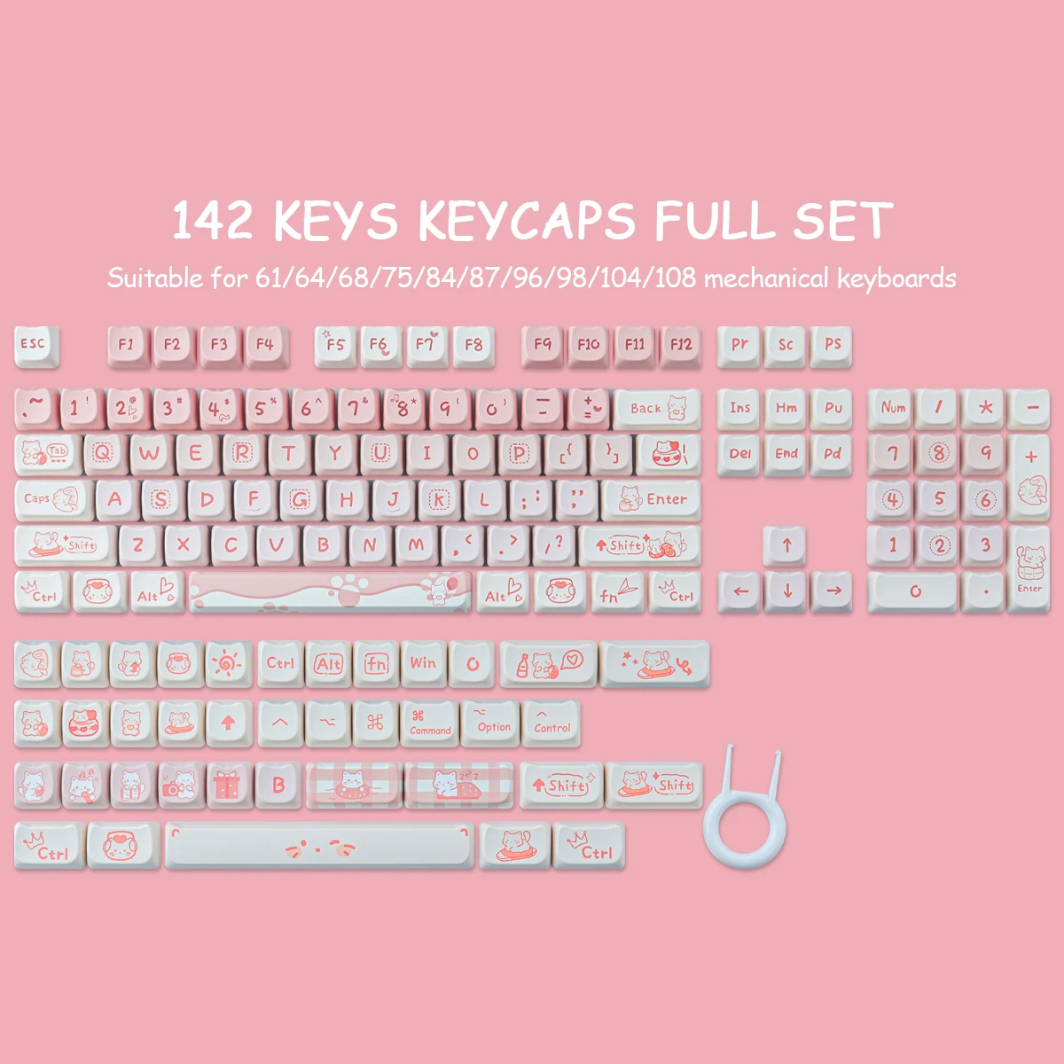 Comprar Teclas de fiesta para gatitos, 142 teclas, Material PBT, perfil MOA, DYE-SUB, personalizadas para interruptores MX, Teclado mecánico