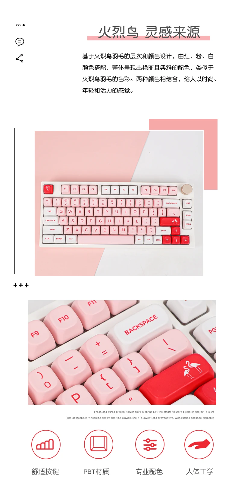 Comprar Teclas de flamenco de 137 teclas para teclado mecánico, sublimación de tinte PBT, teclas de bola de altura KOA, color rosa, AULA F75 Ajazz GK61 Anne Pro 2