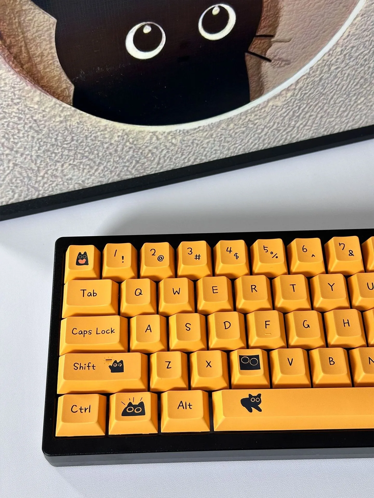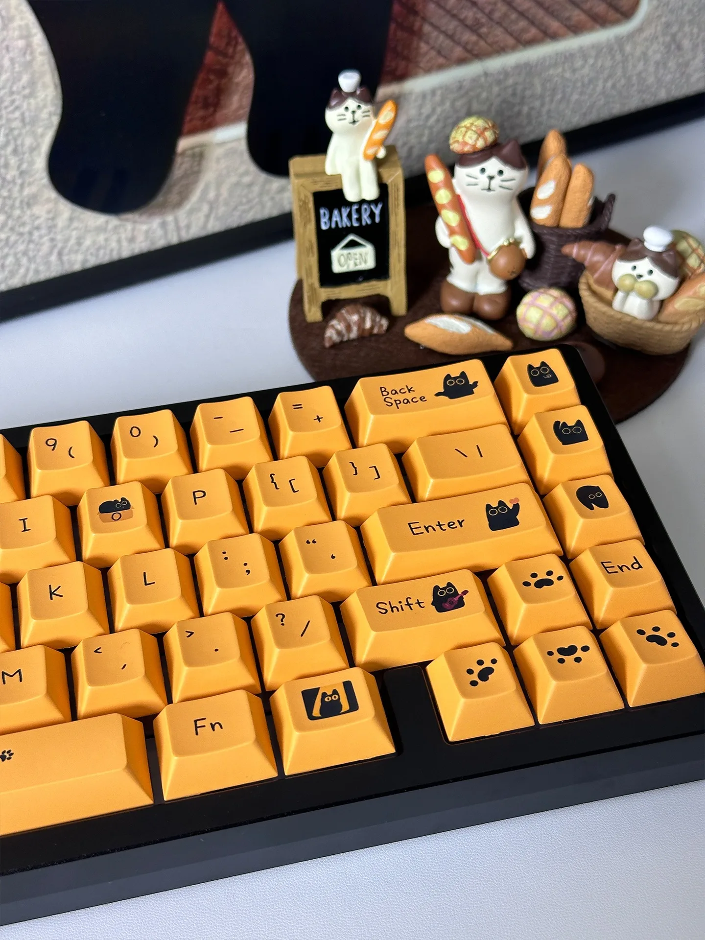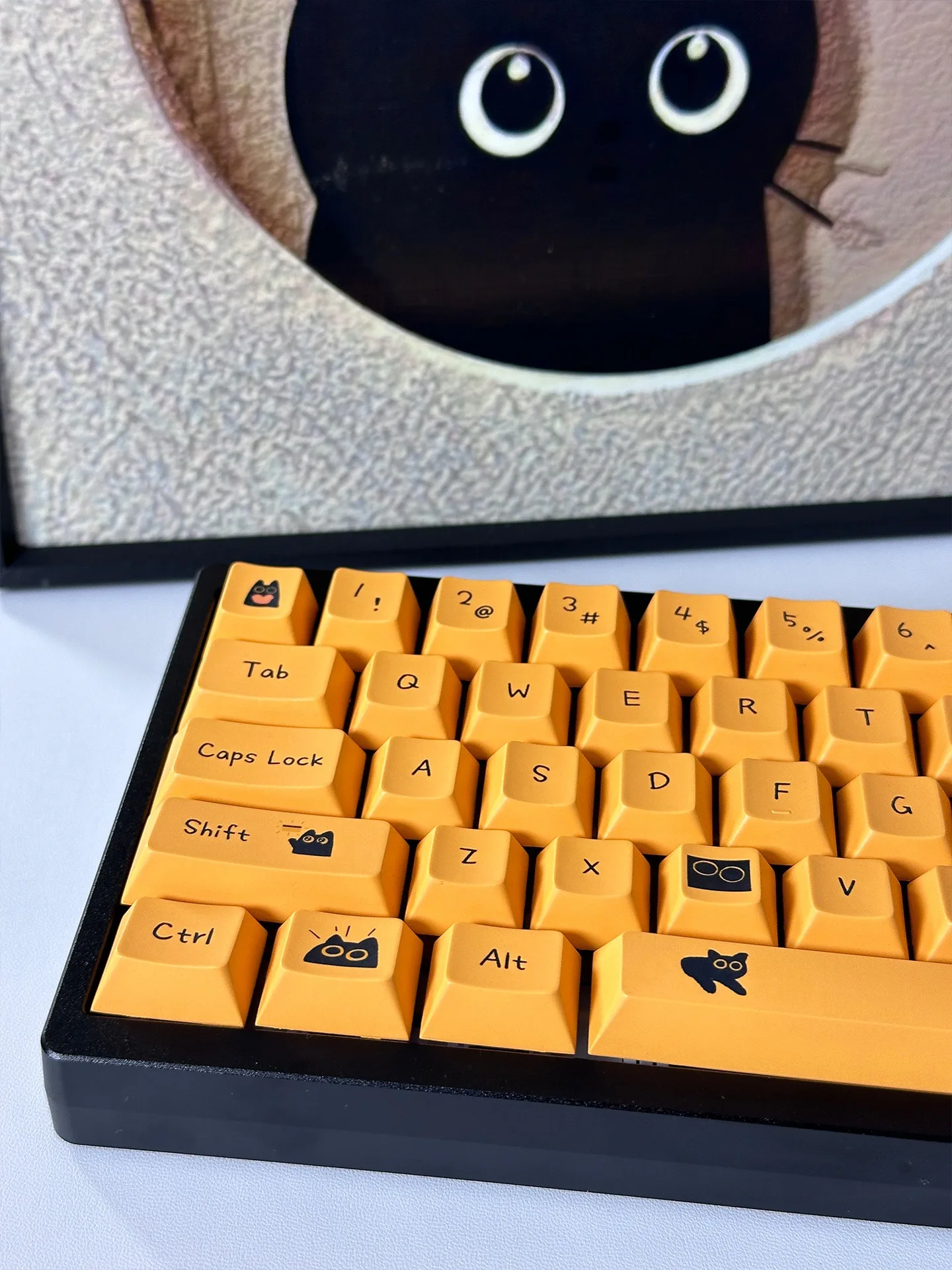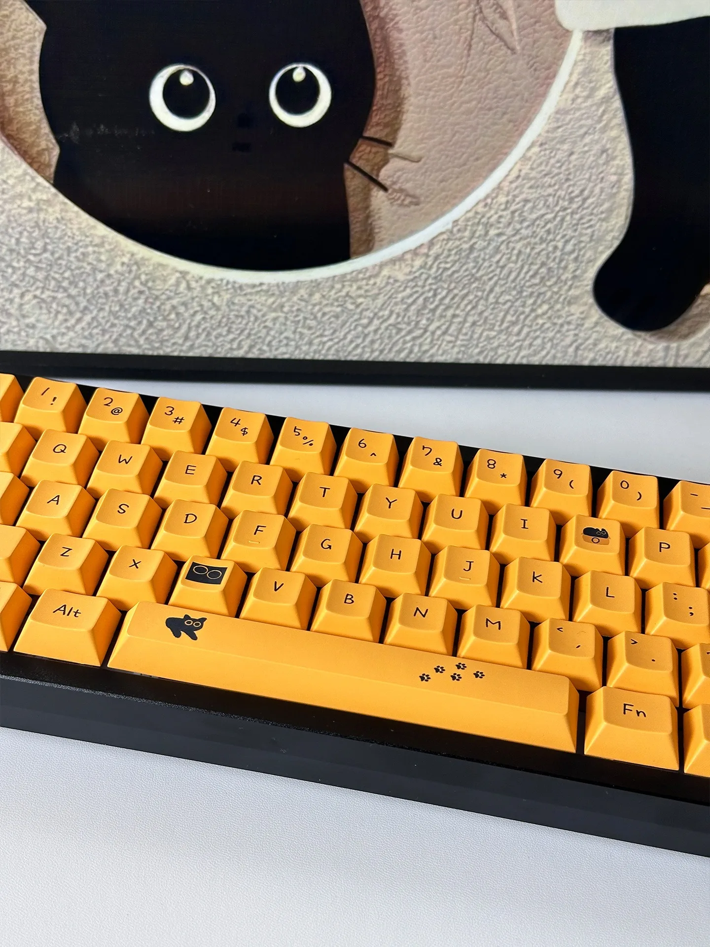 Comprar Teclas de gato negro de 124 teclas, teclas PBT con perfil de cereza para interruptor Mx, teclado mecánico para jugar, teclas amarillas de Anime personalizadas DIY