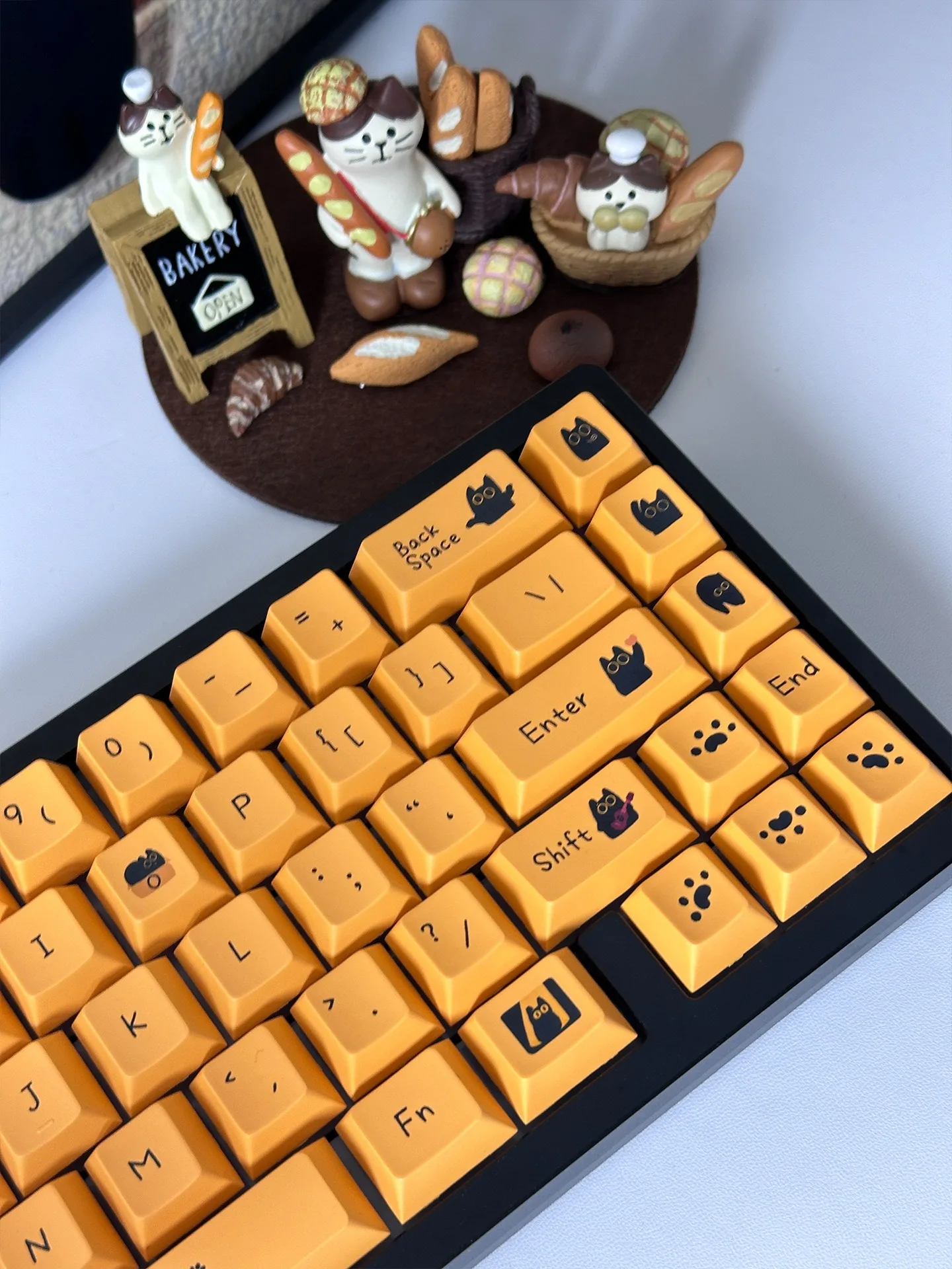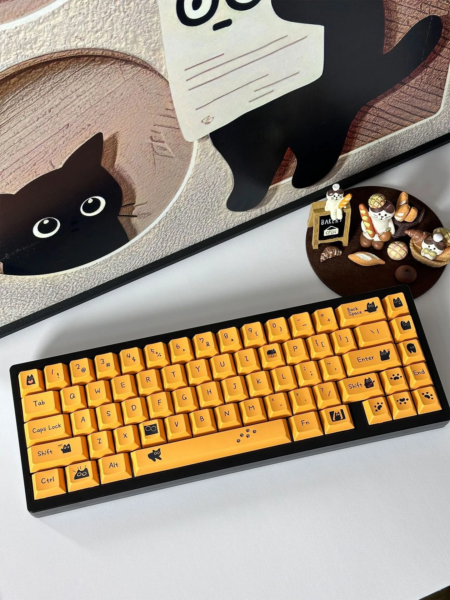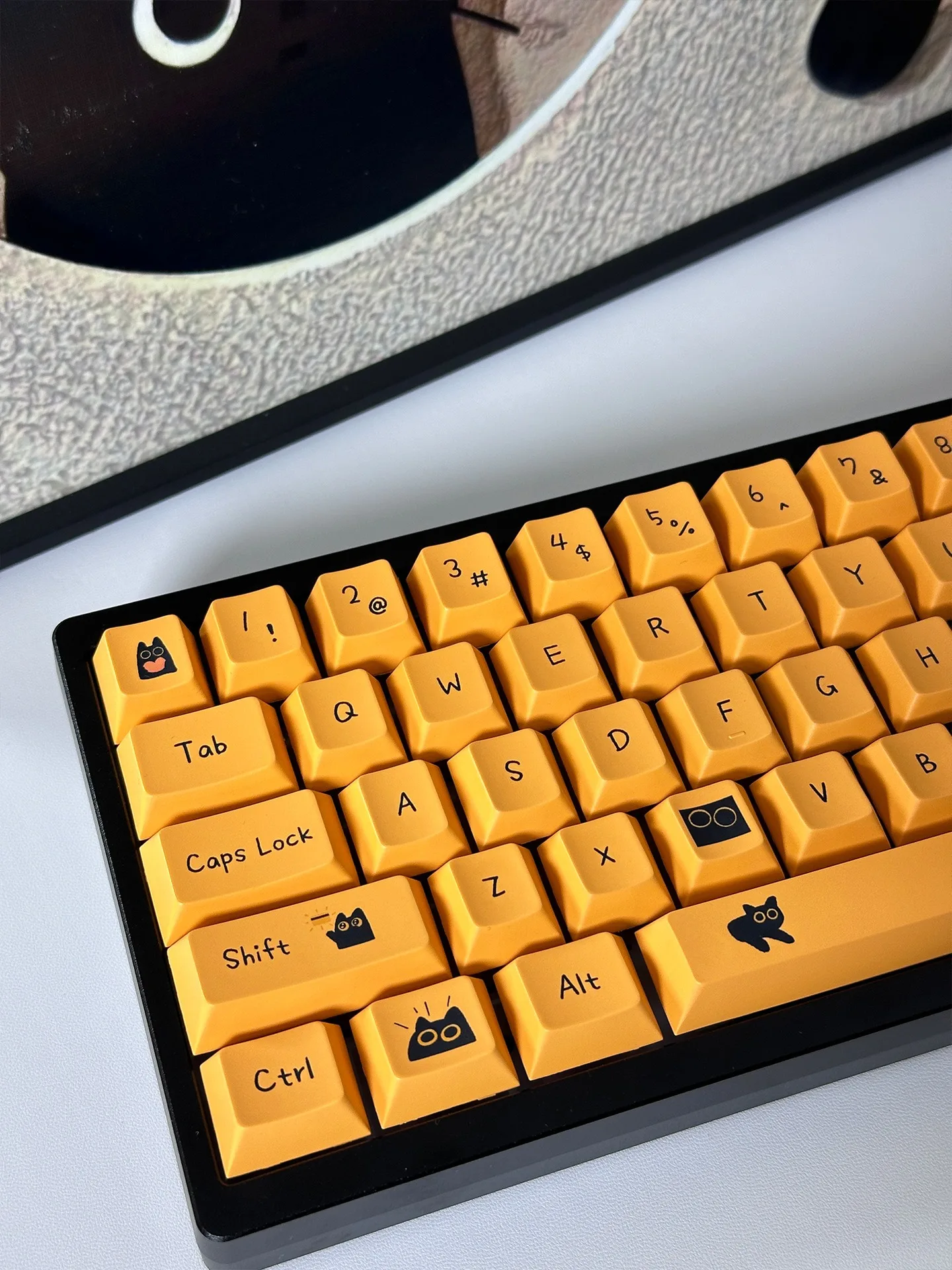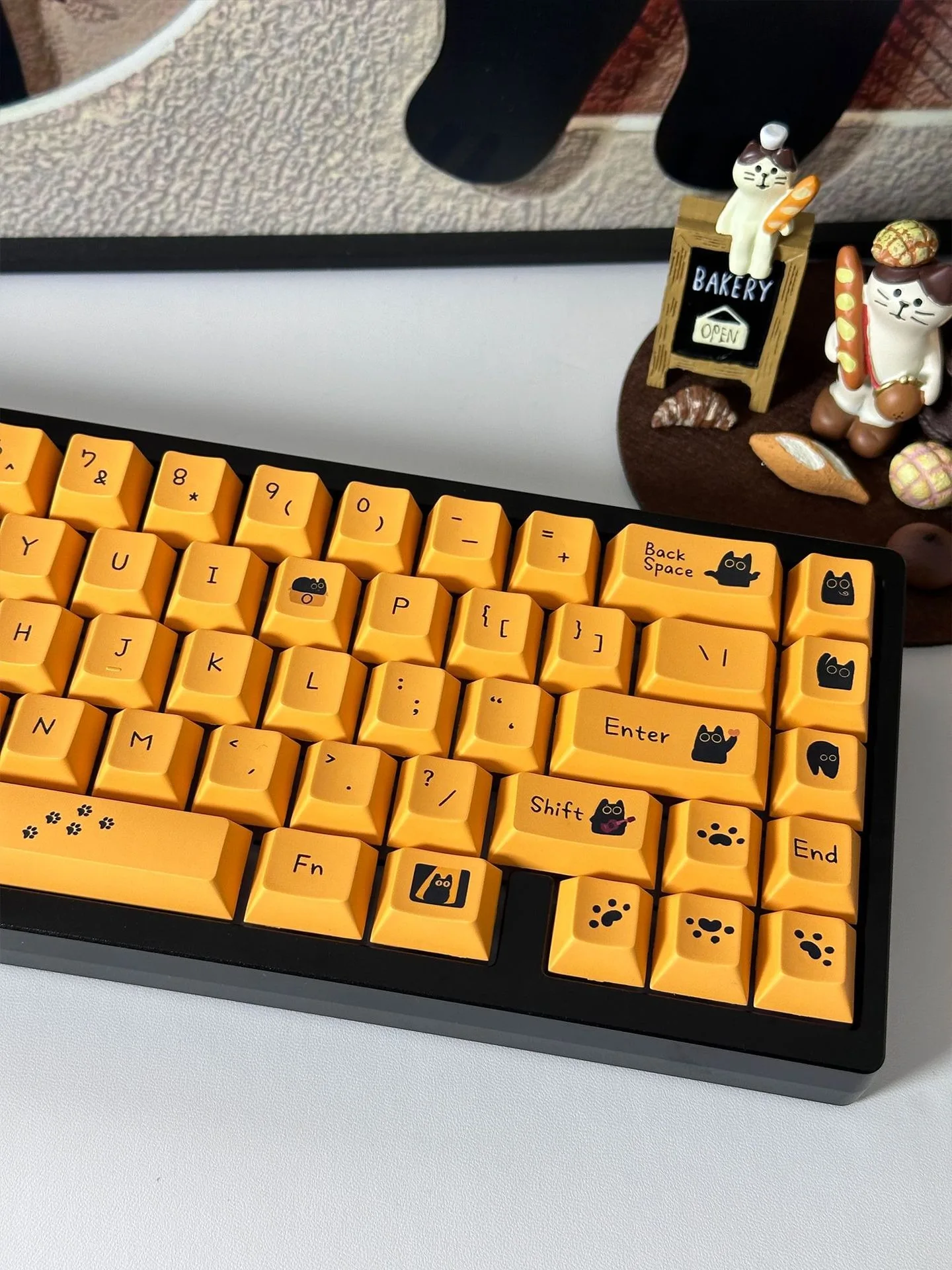 Comprar Teclas de gato negro de 124 teclas, teclas PBT con perfil de cereza para interruptor Mx, teclado mecánico para jugar, teclas amarillas de Anime personalizadas DIY