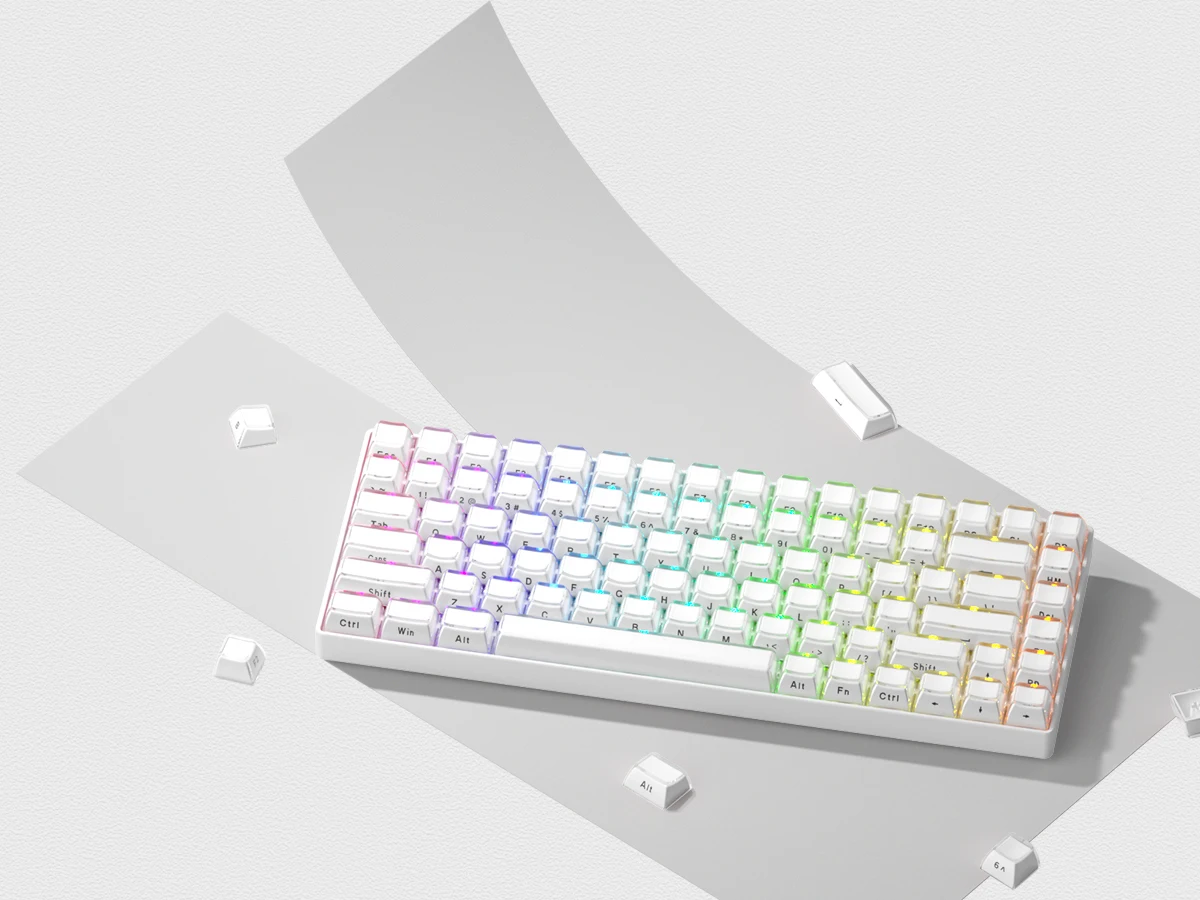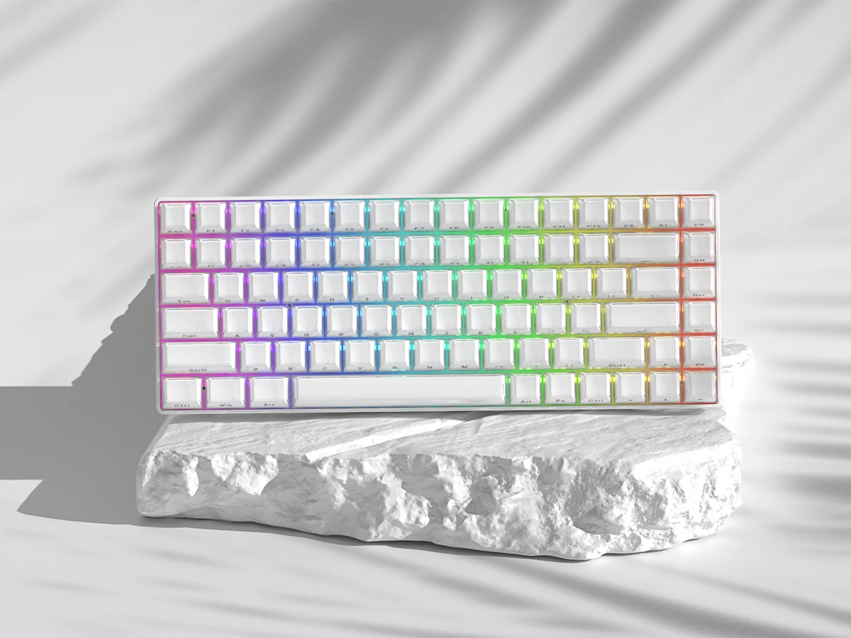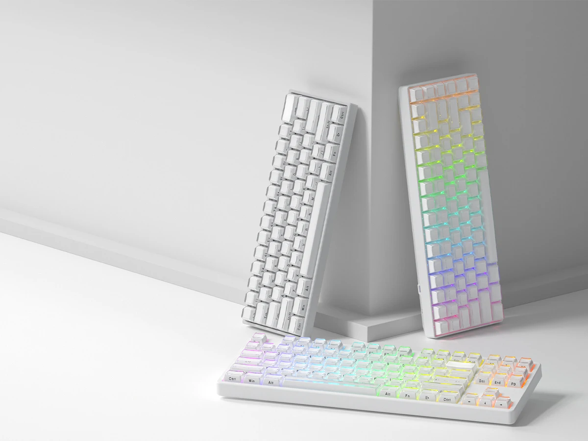 《Teclas rosas de material de PC》Debido a las propiedades del material, las teclas transparentes pueden ser vulnerables a los rayones y dejar el sudor/aceite de las manos que el material PBT.