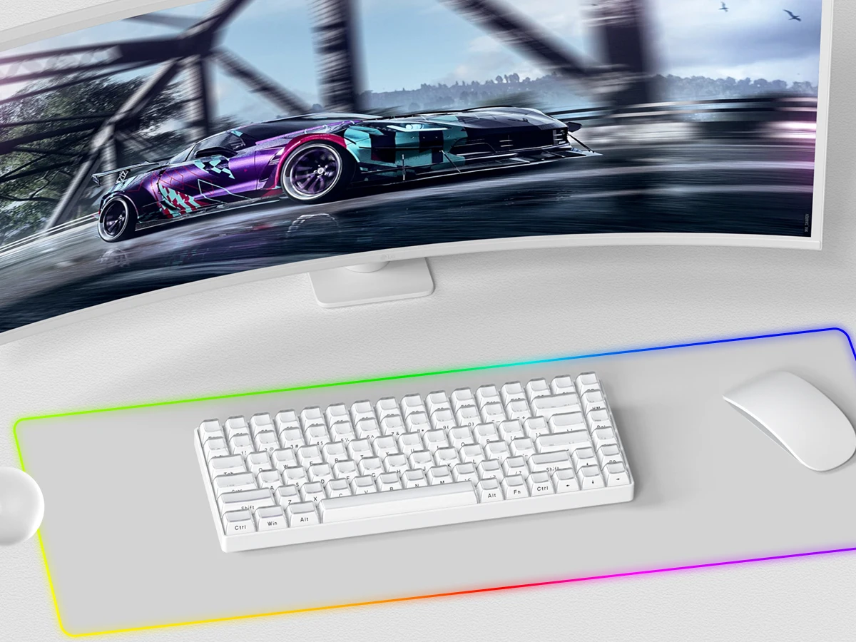 《Teclas de gelatina》Esta tecla está hecha de material de PC de alta calidad y material ABS de alta calidad.Está apilado en capas dobles y las luces RGB se revelan ligeramente, lo que aumenta la atmósfera del teclado y hace que su teclado sea único.El estilo de grabado lateral de letras muestra mejor la simplicidad del teclado mecánico.