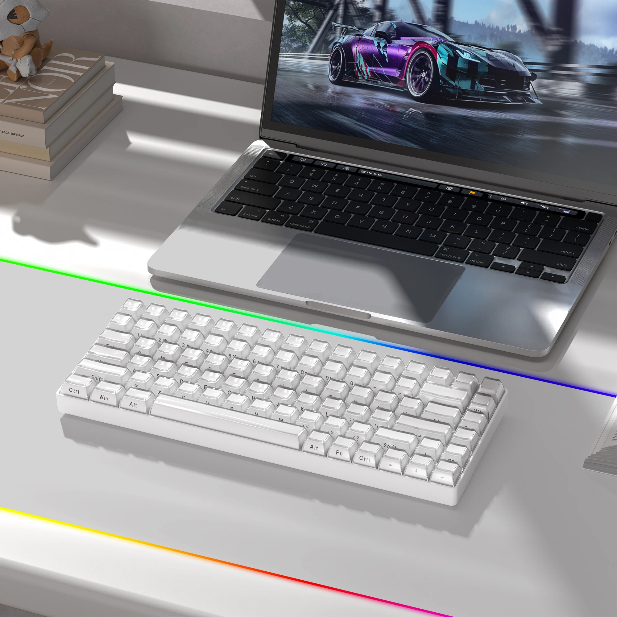 《Teclas de gelatina》Esta tecla está hecha de material de PC de alta calidad y material ABS de alta calidad.Está apilado en capas dobles y las luces RGB se revelan ligeramente, lo que aumenta la atmósfera del teclado y hace que su teclado sea único.El estilo de grabado lateral de letras muestra mejor la simplicidad del teclado mecánico.
