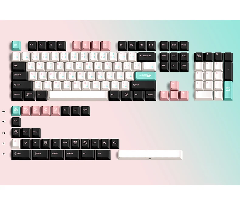 Número de teclas: 134 teclas, incluye cambio 1U 1.75U 2U, 1.5U alt ctrl, 6.25U 7U Barra espaciadora, sin trapezoid 1,75 capslock.