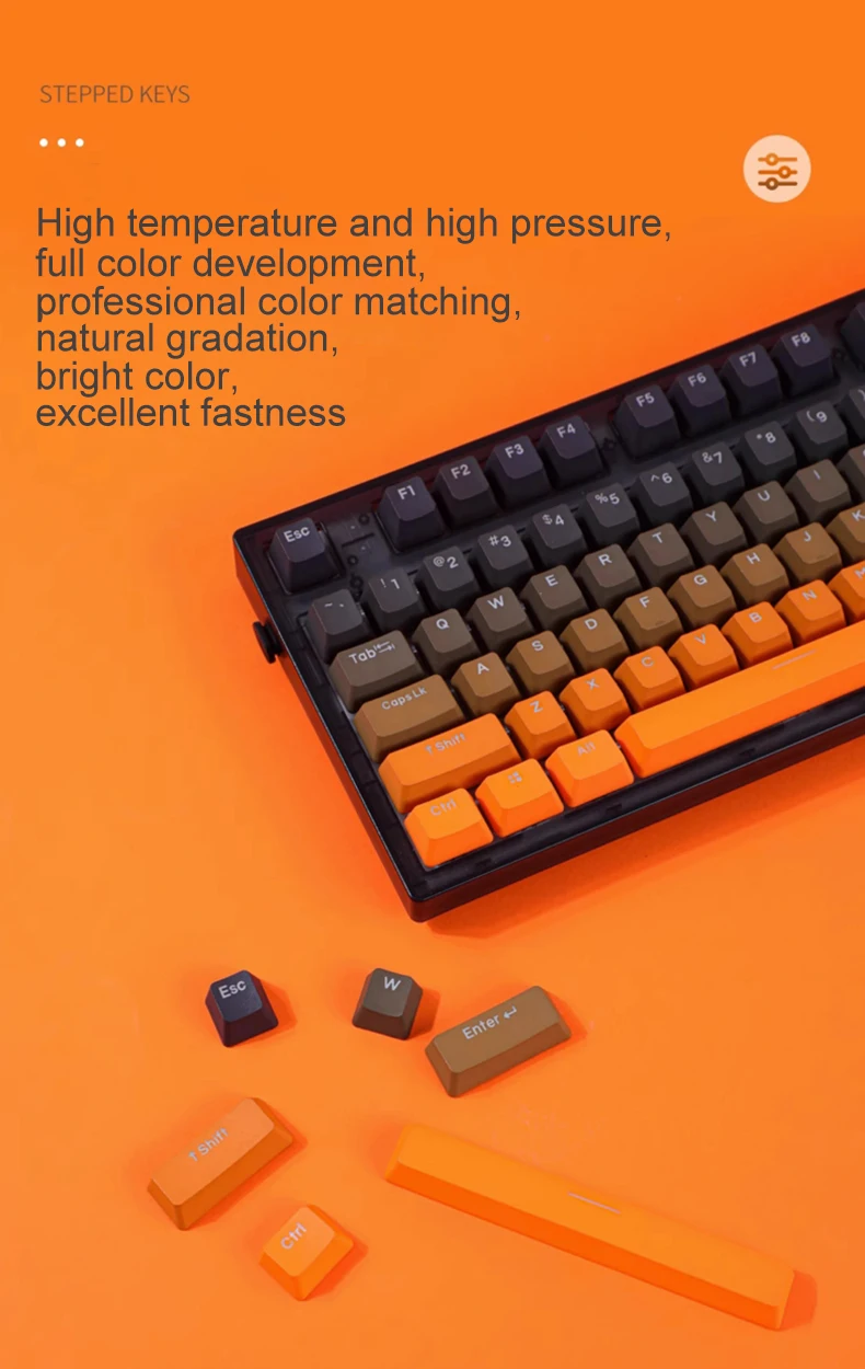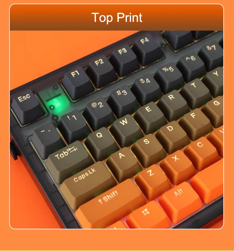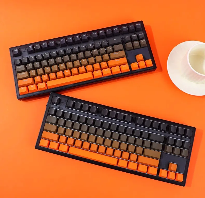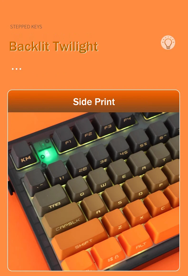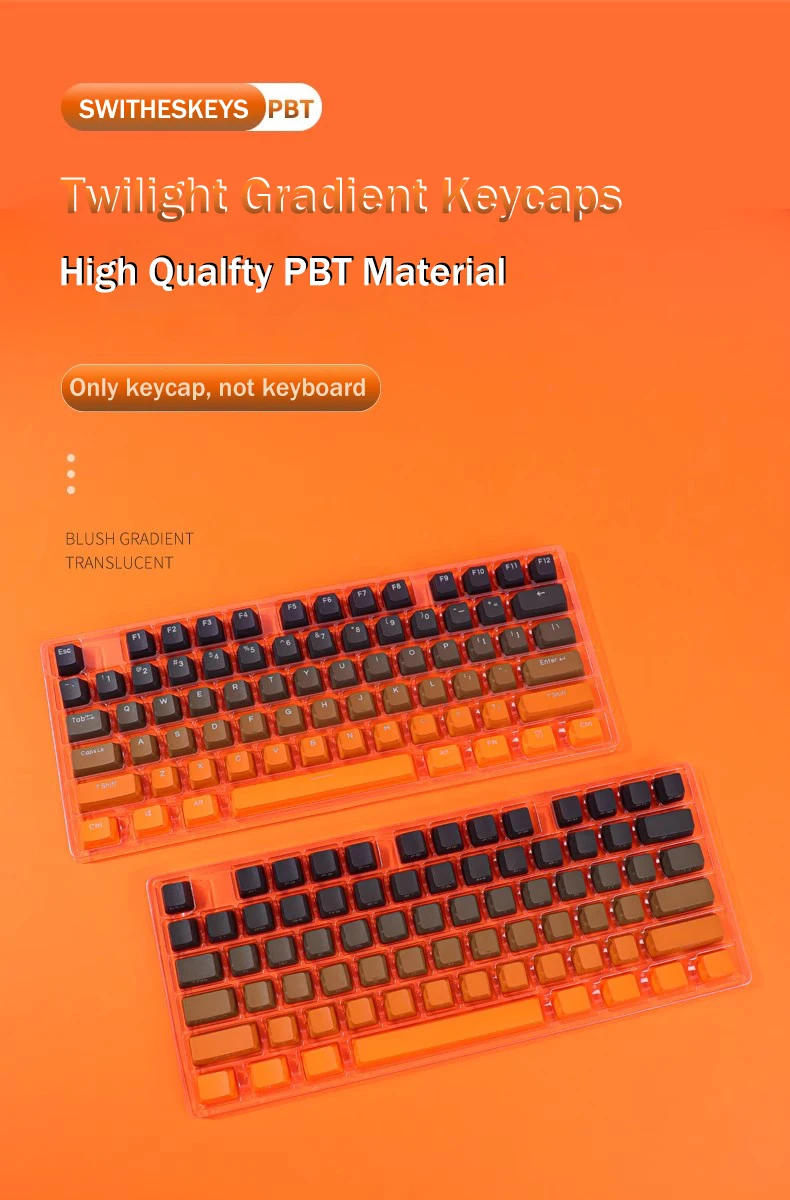 Comprar Teclas con gradiente Crepúsculo, tapa transparente retroiluminada naranja, PBT, perfil OEM, tapa de tecla de impresión lateral/superior para teclado MX Switch Diy