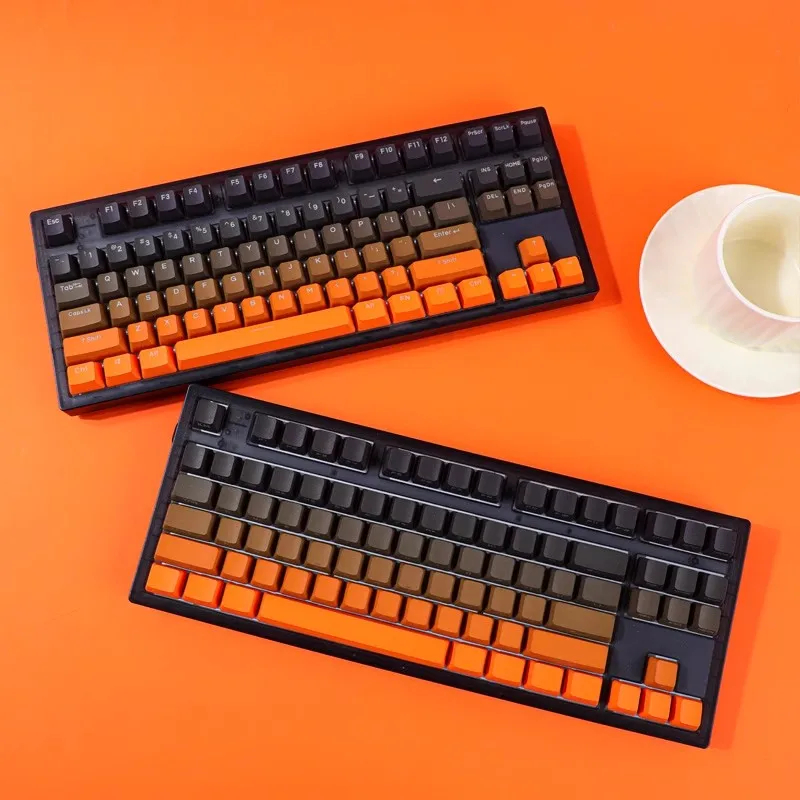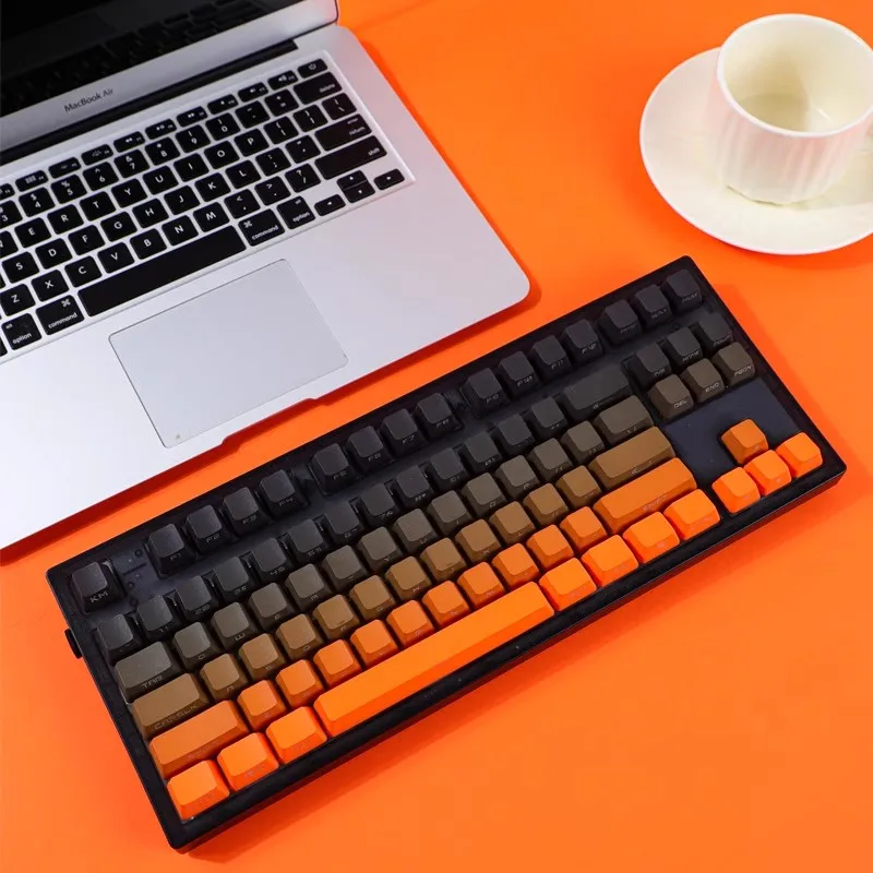 Comprar Teclas con gradiente Crepúsculo, tapa transparente retroiluminada naranja, PBT, perfil OEM, tapa de tecla de impresión lateral/superior para teclado MX Switch Diy