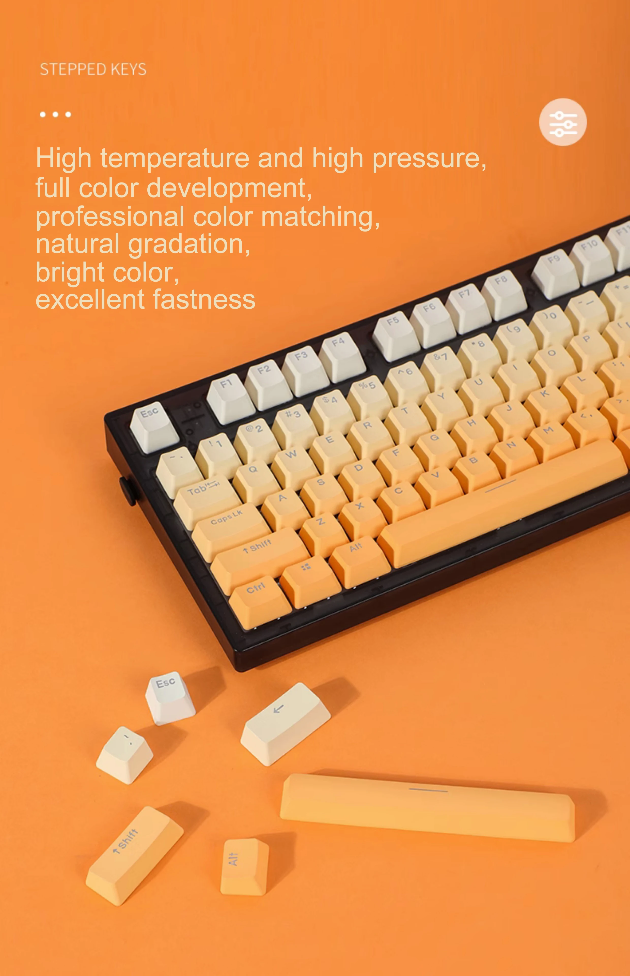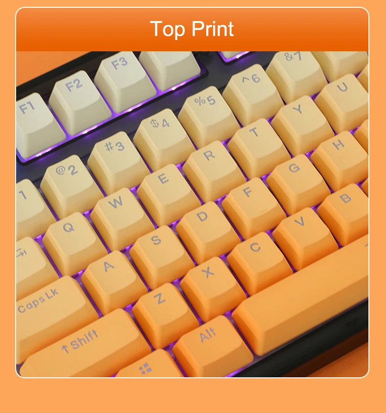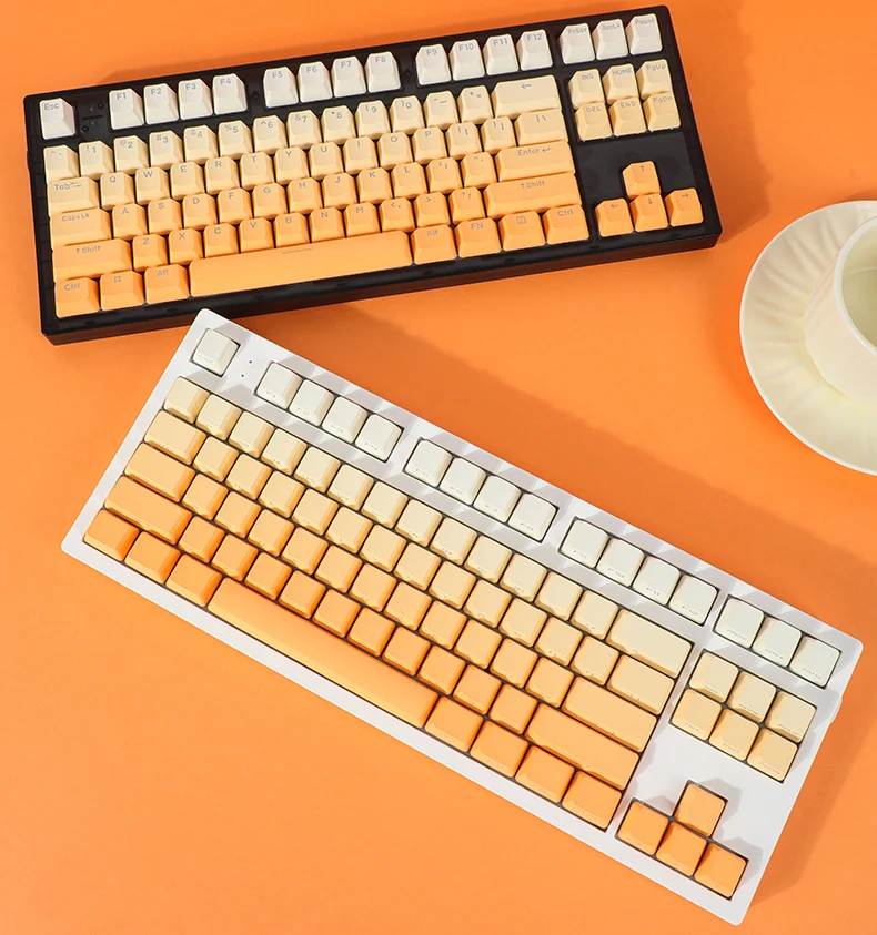 Comprar Teclas con gradiente naranja, perfil OEM, teclas transparentes retroiluminadas, tapa de tecla de impresión lateral/parte superior PBT para teclado MX Switch GK61 75 87 104