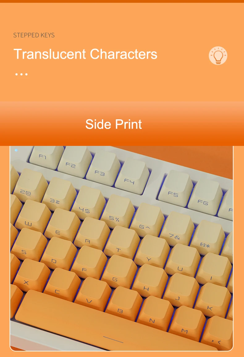 La versión retroiluminada superior de 123 teclas incluye CAMBIO DE 1.75U, barra espaciadora de 6.25U, es compatible con 61 、 64 、 68 、 84 、 87 、 96 、 980 、 104 、 108, etc. Diseño de teclado mecánico con interruptores MX