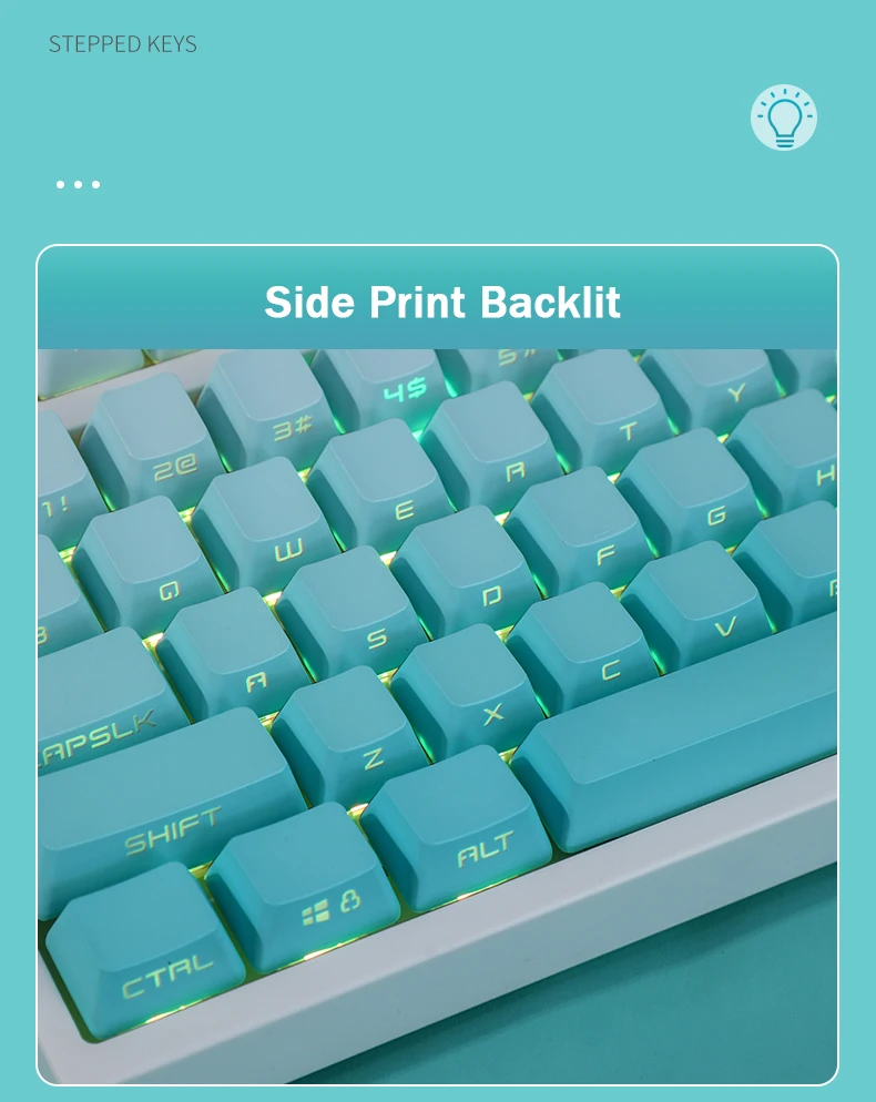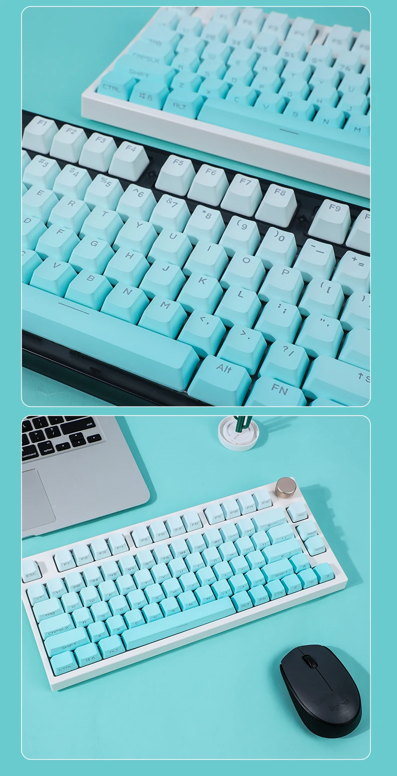 Comprar Teclas con gradiente verde menta, perfil OEM retroiluminado, transparente, PBT, Lateral/superior, para teclado MX Switch GK61 87 104