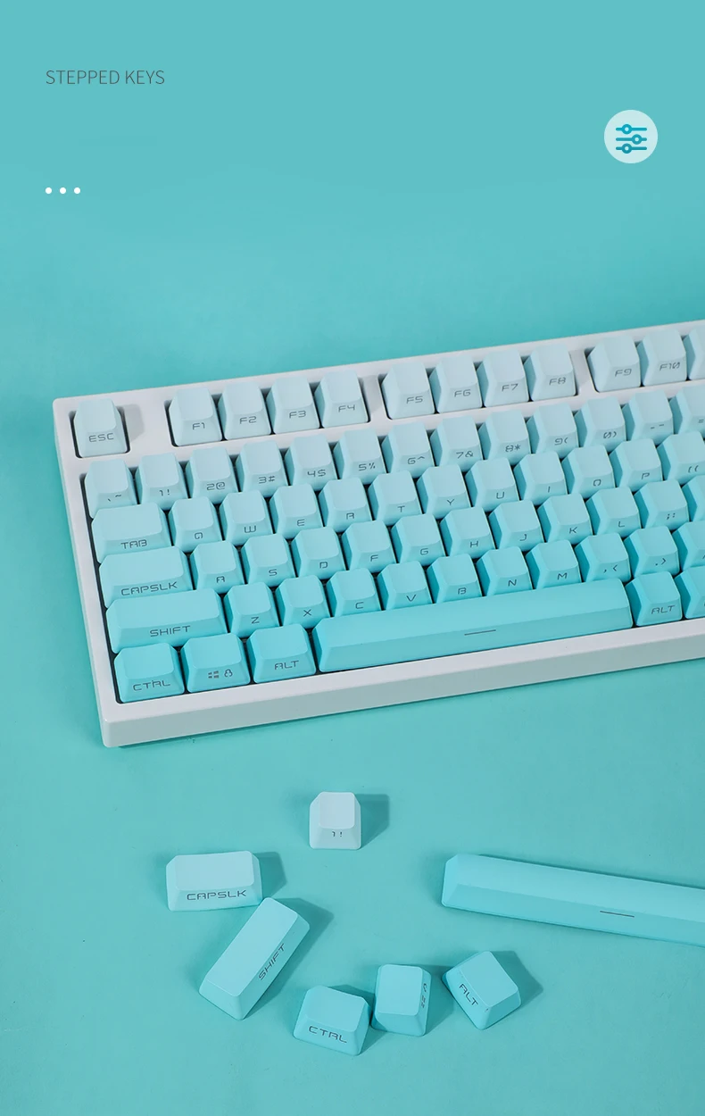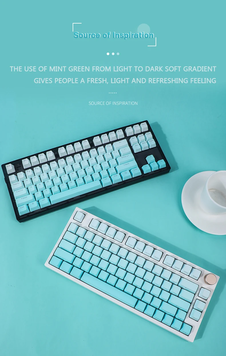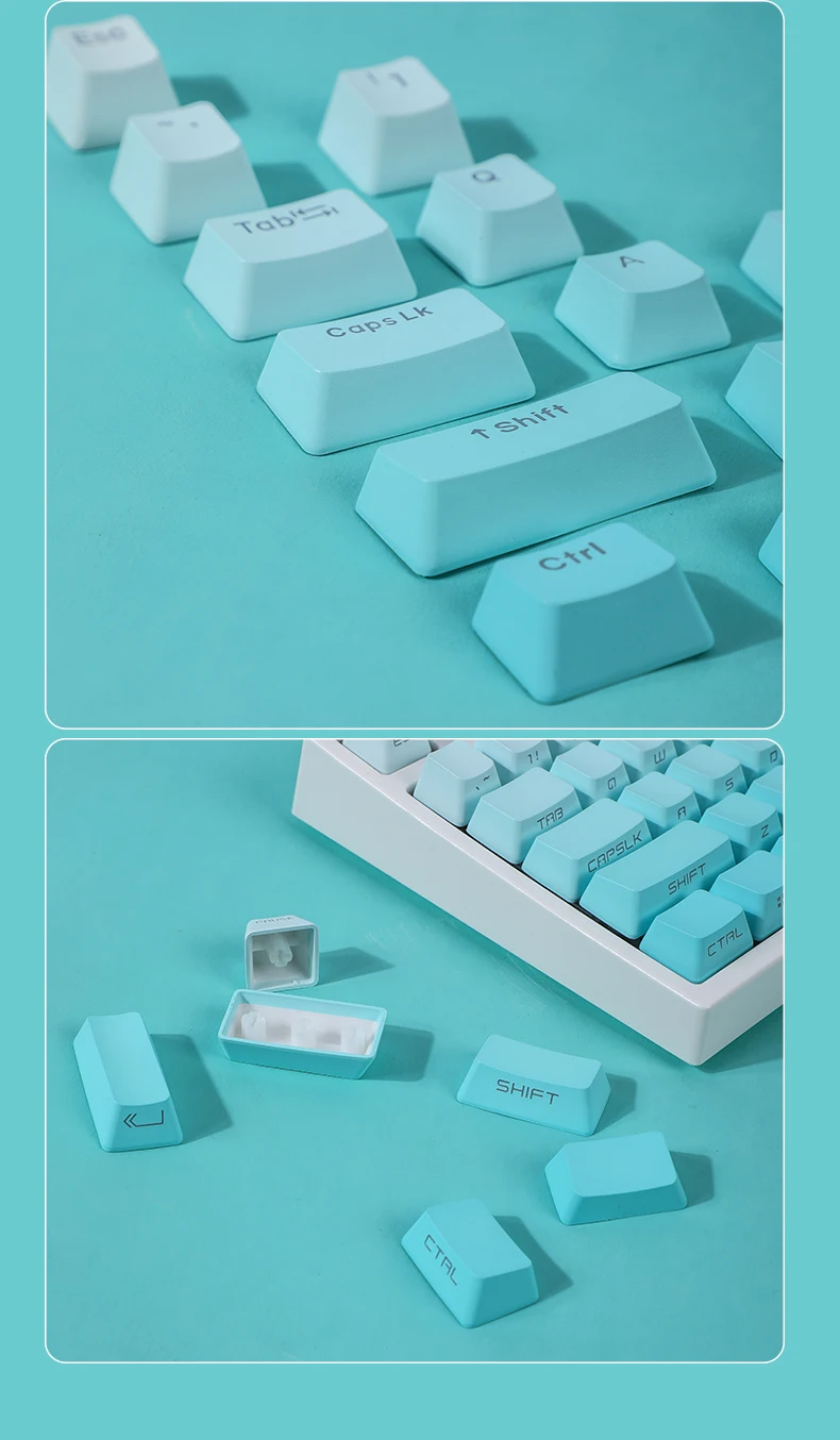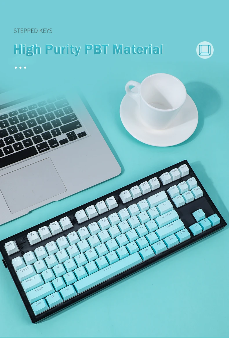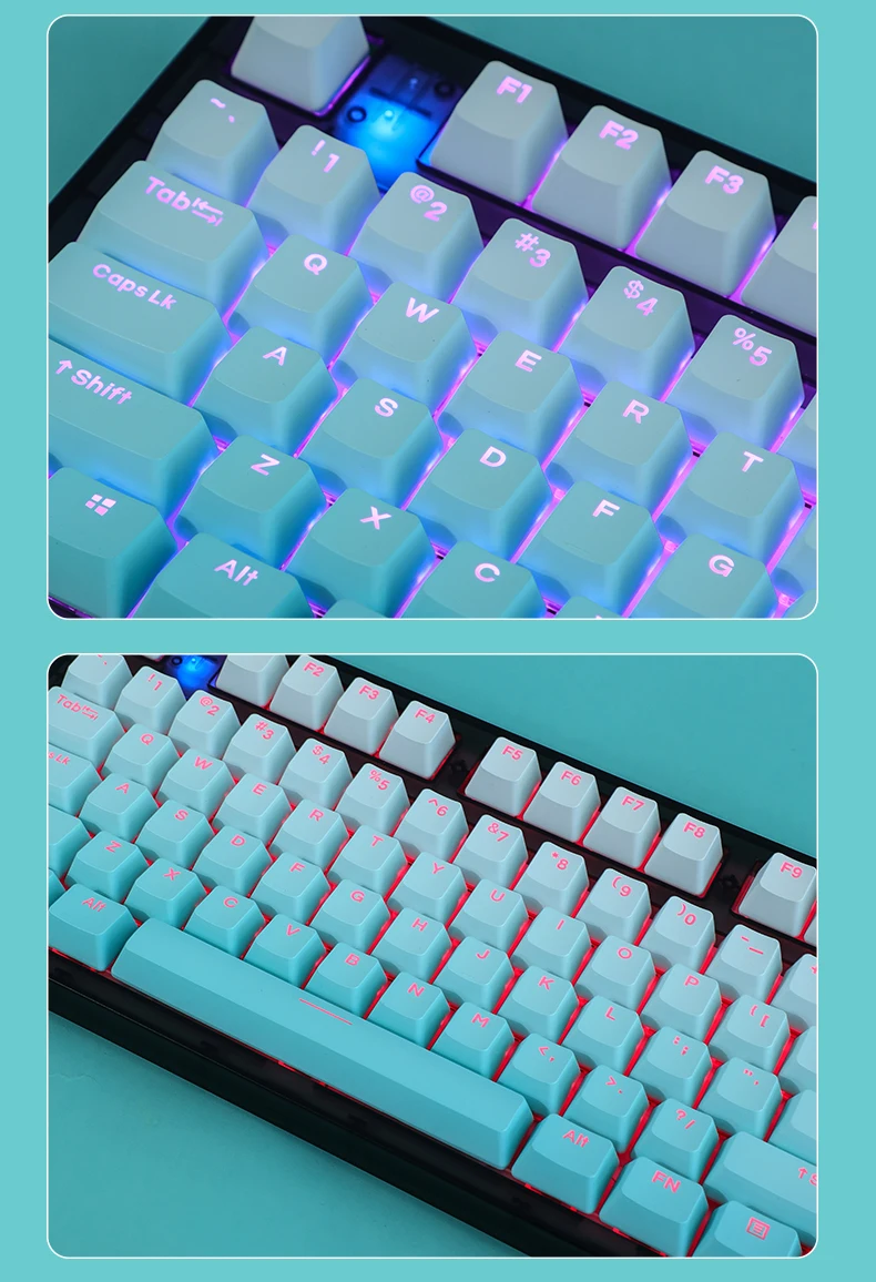 La versión de impresión lateral de 134 teclas incluye 1,75U 2U shift, 1.5U alt ctrl, 6.25U 7U barra de espacio, es compatible con 61、64、68、71、75、84、87、96、980、104、108, etc.teclado mecánico de diseño con interruptores MX