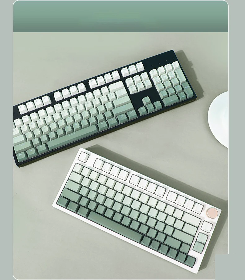 Comprar Teclas con gradiente verde, perfil OEM, Teclado retroiluminado transparente de algas marinas, PBT, impresión Lateral/superior, ForGK61, 87, 104