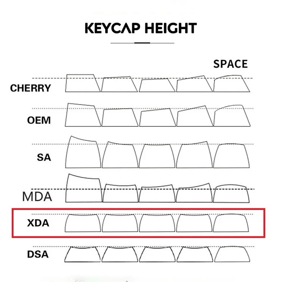 XDA Profile: The XDA profile ball cap looks very beautiful, and increases the contact surface between the keycap and the fingers, thereby improving the comfort of typing.