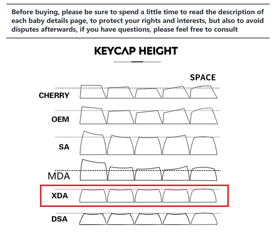 Perfil XDA: la tapa de la bola de perfil XDA se ve muy hermosa y aumenta la superficie de contacto entre la tecla y los dedos, mejorando así la comodidad de escribir.