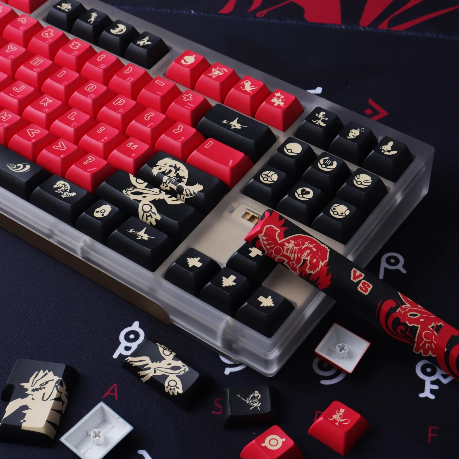 Comprar Teclas de Groudon para teclado mecánico, accesorio negro y rojo, perfil KCA, tinte PBT, sublimación, para MX Switch 61/64/75/84/143, 87/980 teclas