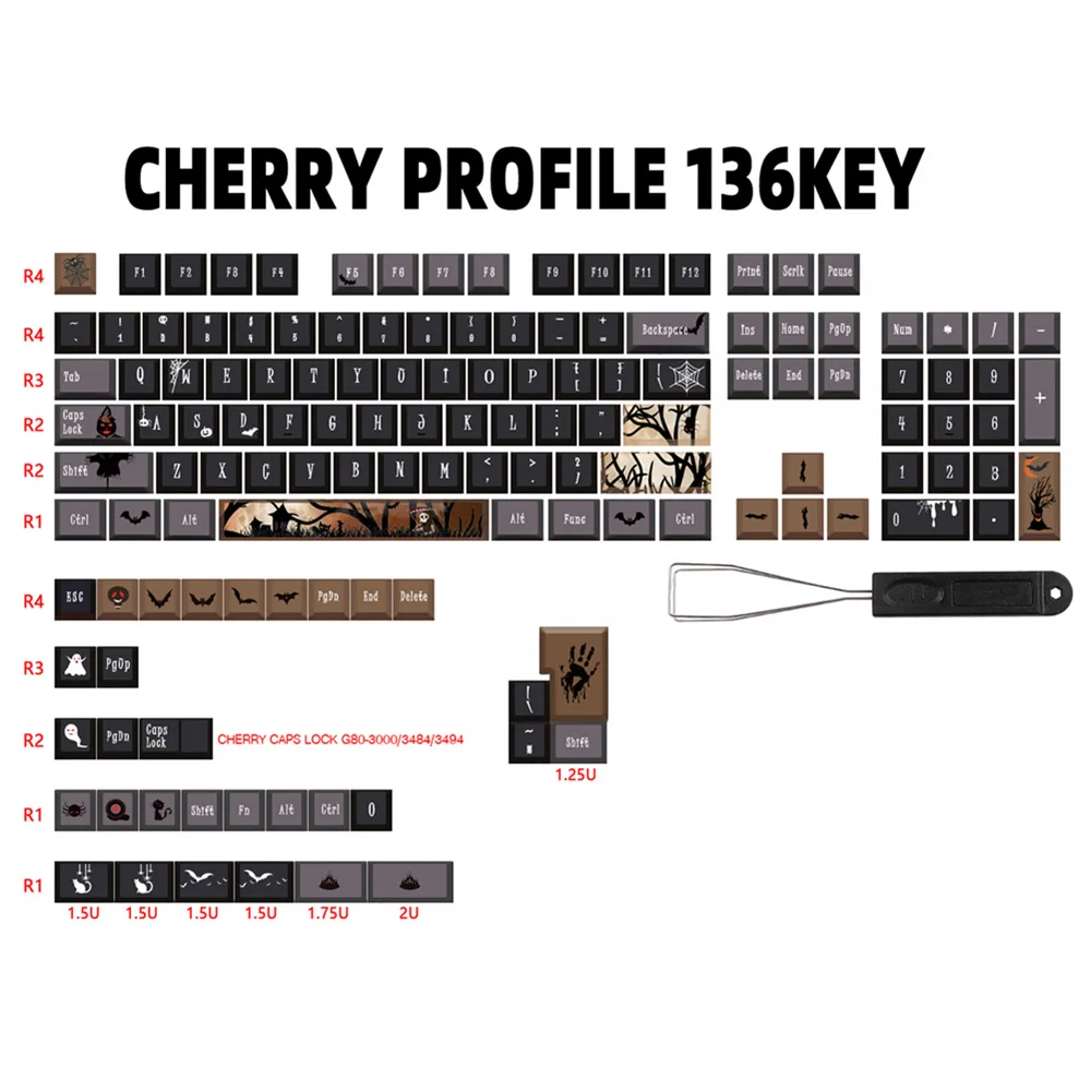 Comprar Teclas de Halloween de 136 teclas, perfil de cereza, sublimación de tinte PBT, teclado mecánico, interruptor MX con cambio de 1,75 U, entrada ISO
