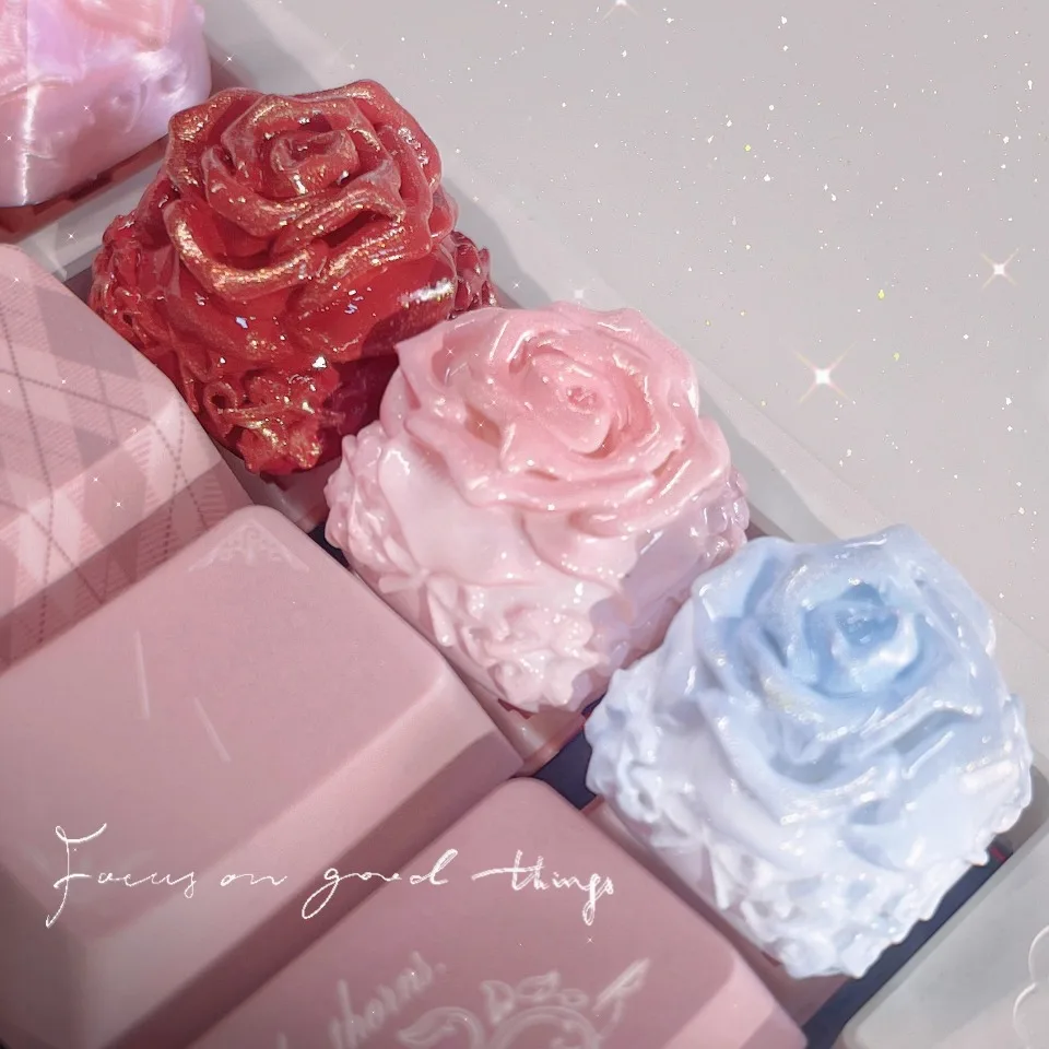 Teclas hechas a mano, tapas de teclas de resina personalizadas con rosas, teclas de teclado lindas personalizadas MX para accesorios de teclado mecánico, regalo