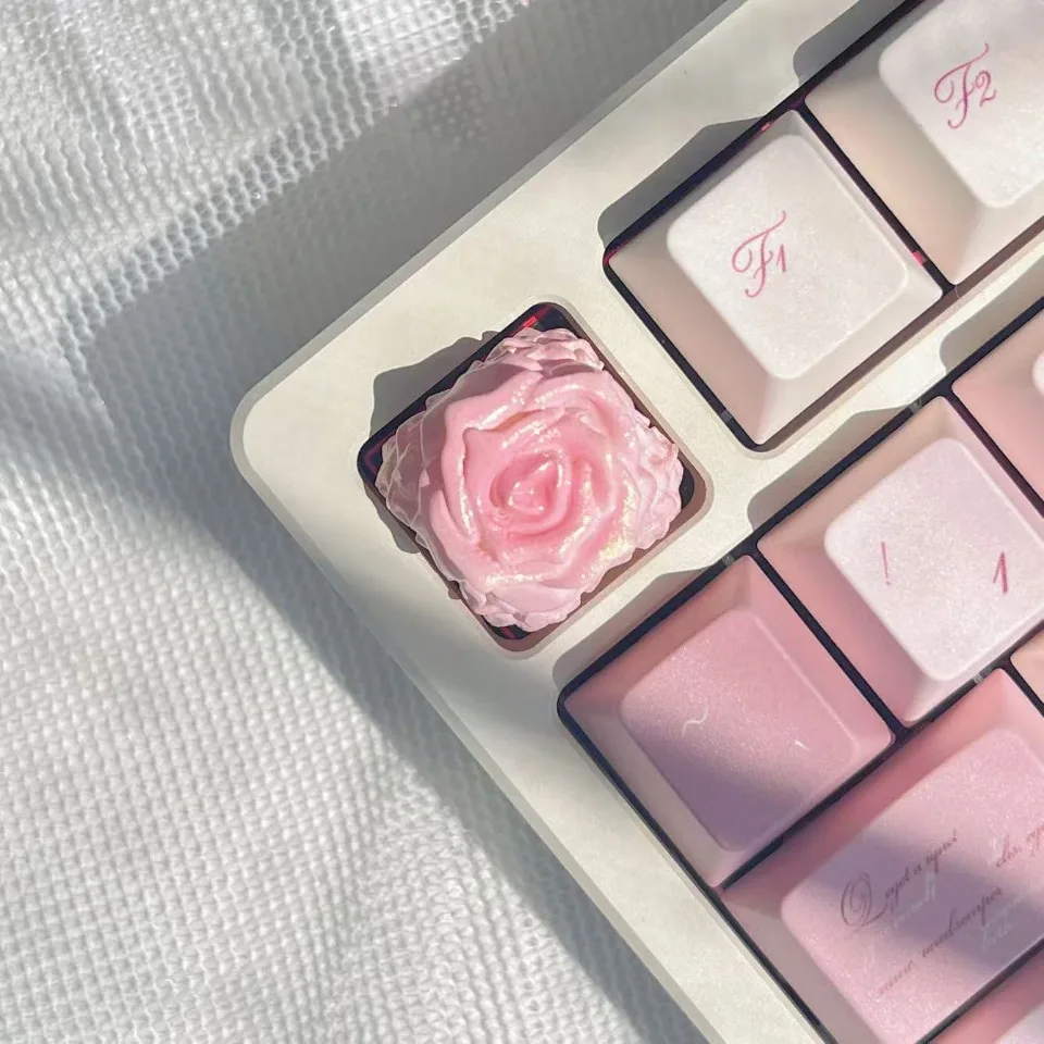 Comprar Teclas hechas a mano de resina, teclas rosas personalizadas, teclas de teclado bonitas personalizadas MX para accesorios de teclado mecánico, regalo