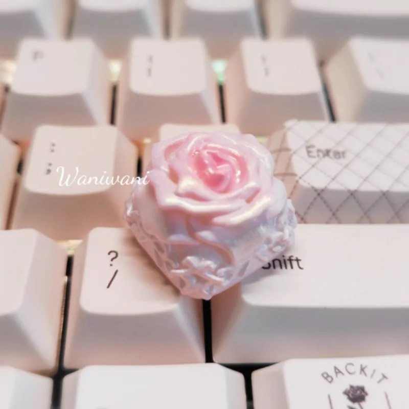 Comprar Teclas hechas a mano de resina, teclas rosas personalizadas, teclas de teclado bonitas personalizadas MX para accesorios de teclado mecánico, regalo