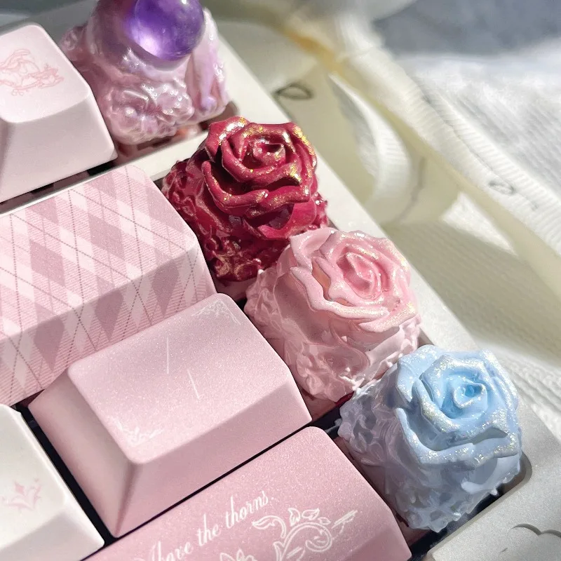 Teclas hechas a mano, tapas de teclas de resina personalizadas con rosas, teclas de teclado lindas personalizadas MX para accesorios de teclado mecánico, regalo