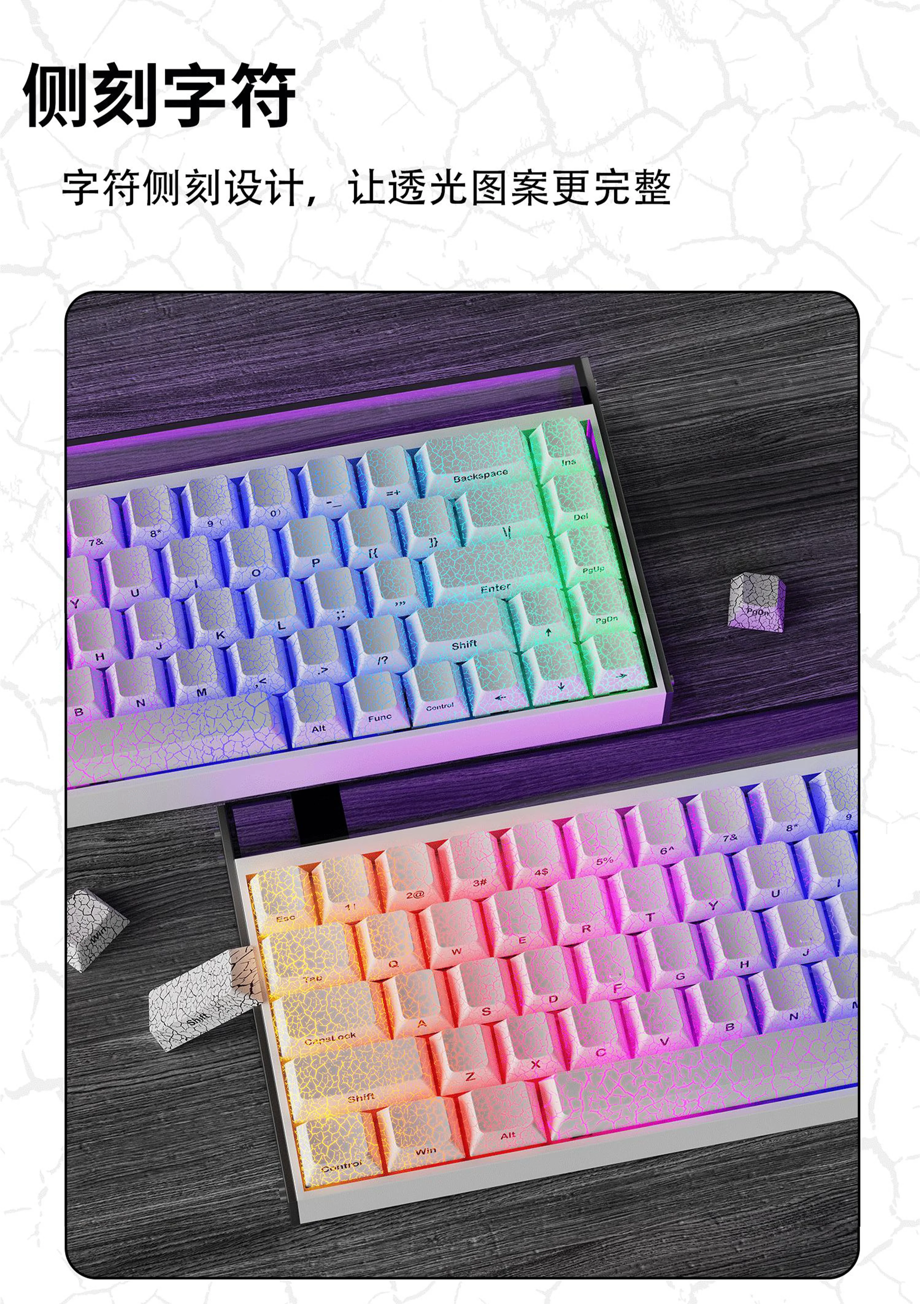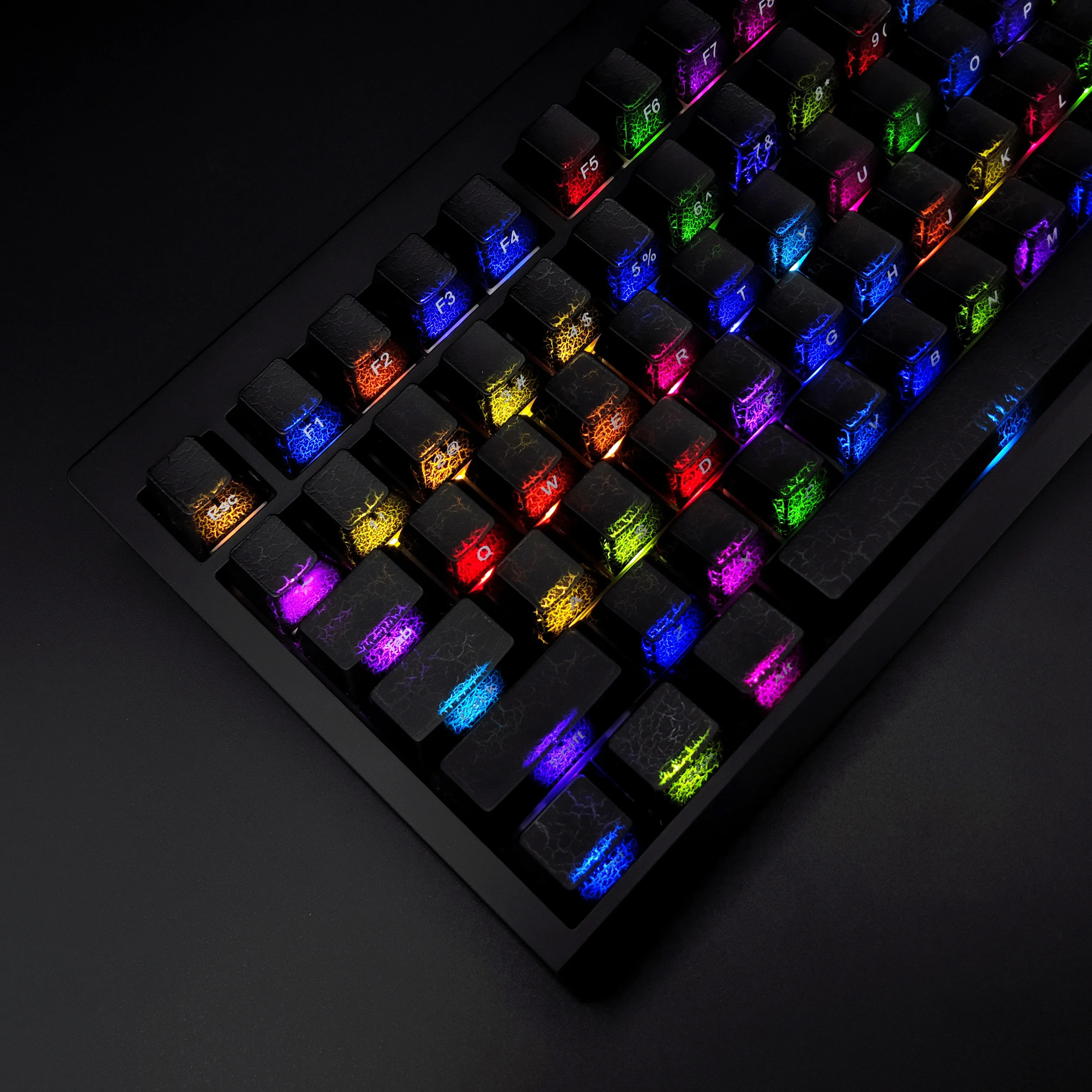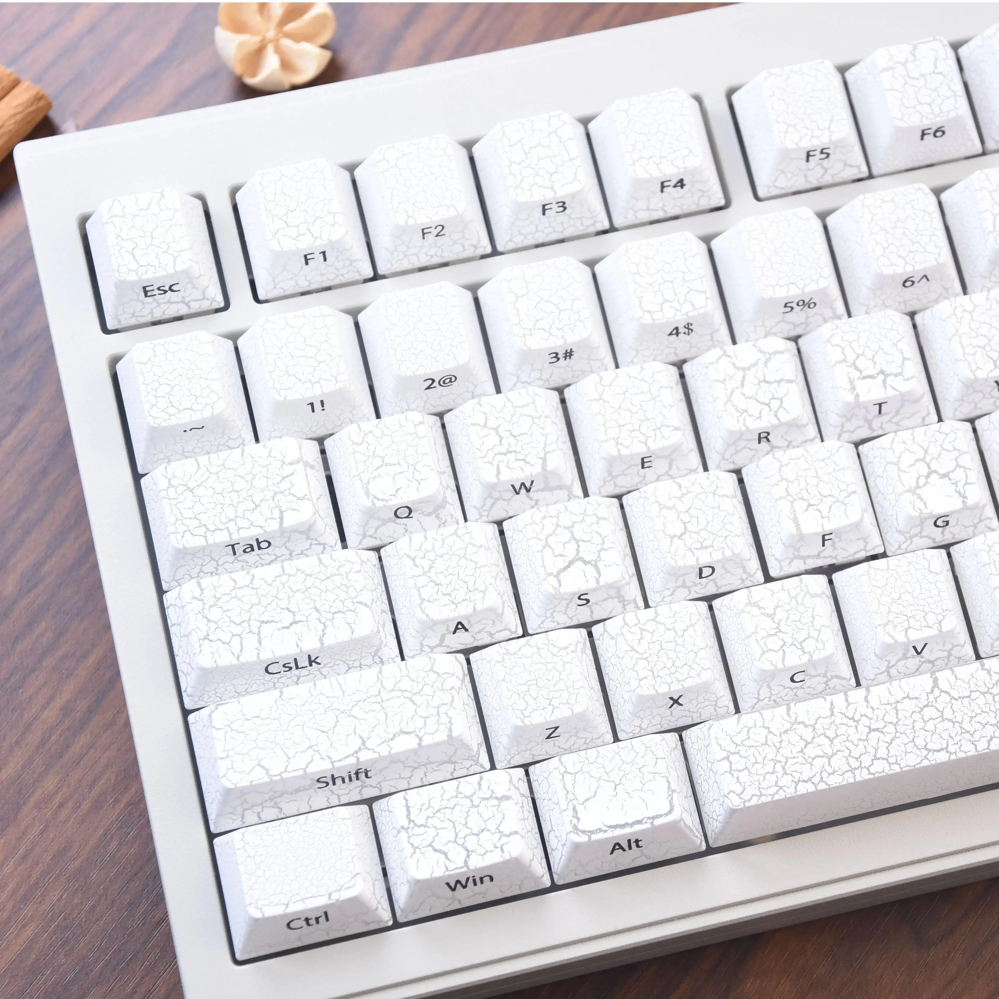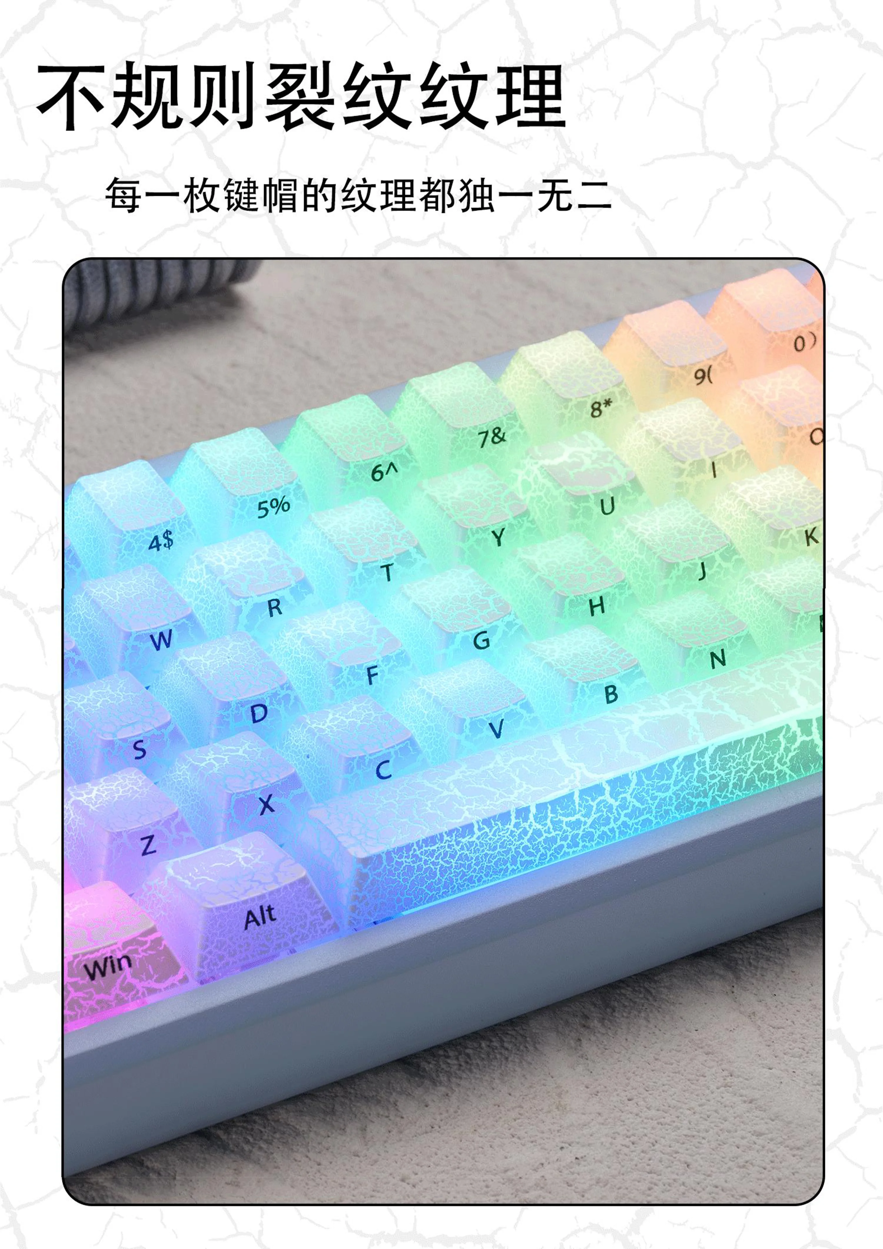 Ice Crack Keycaps Custom PBT Cherry Profile Transparent Keycap Cute Black and White Cartoon Anime Point Key Cap for Gaming Gifts
