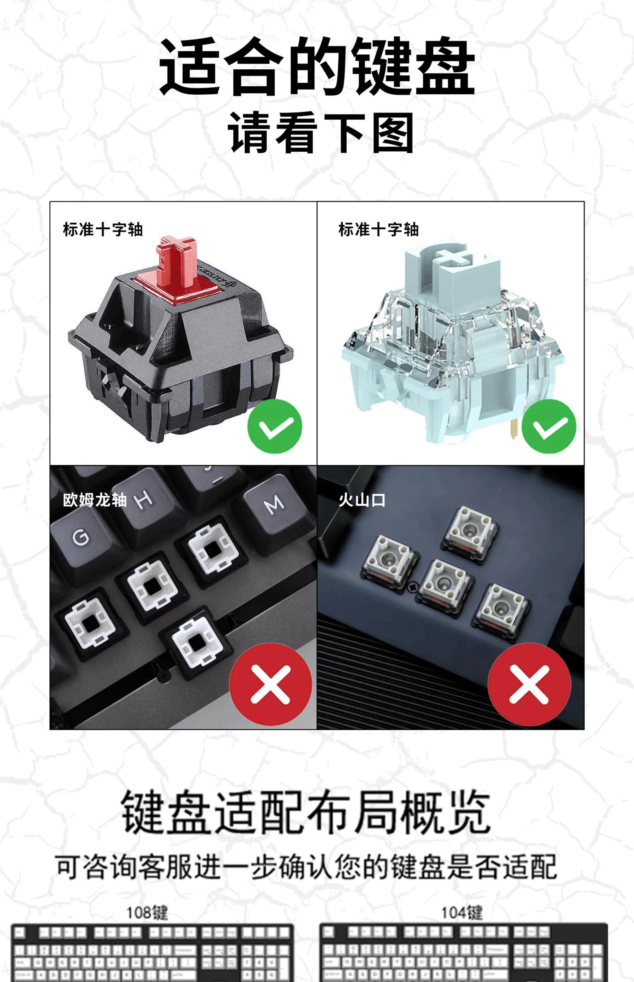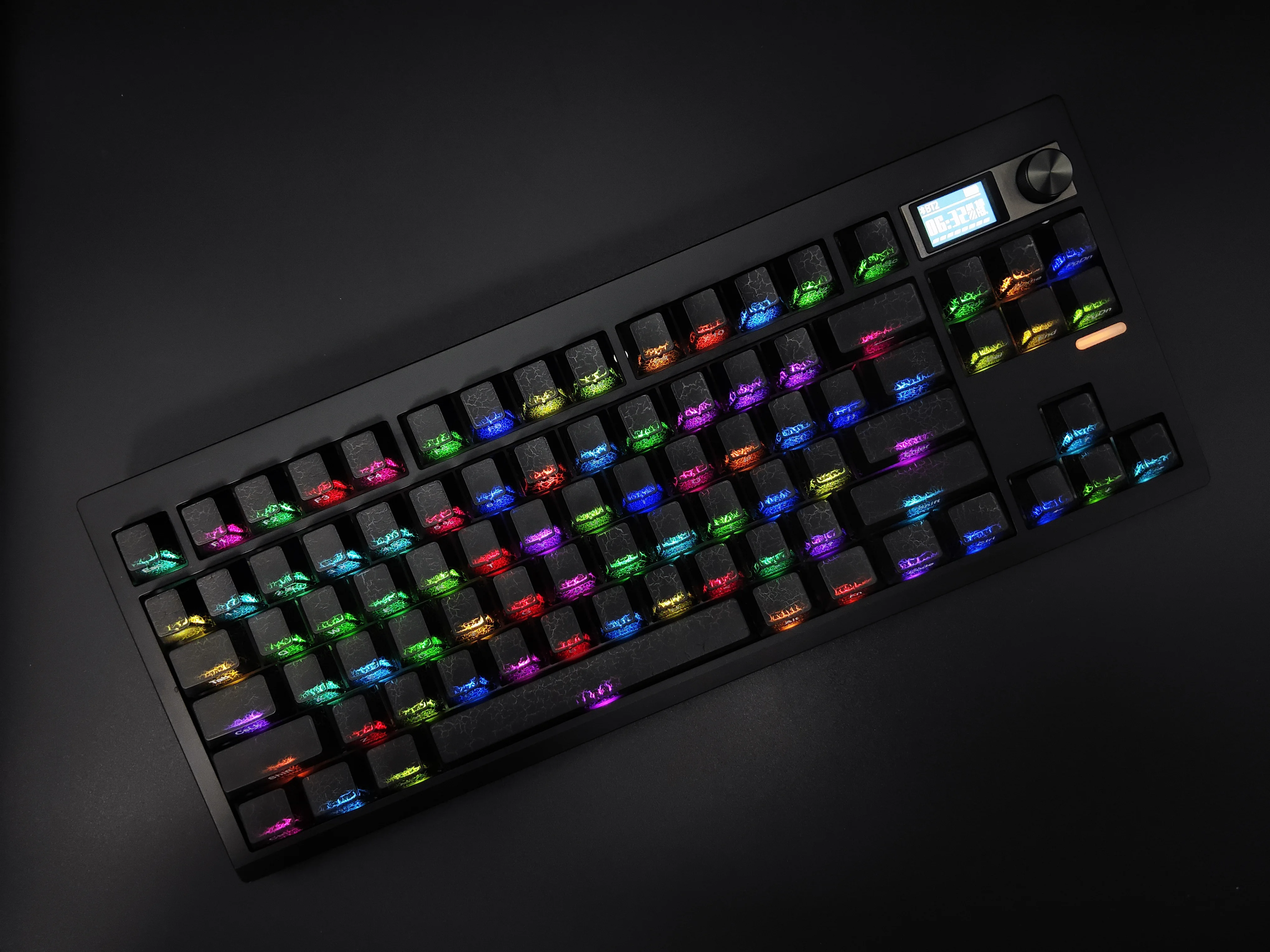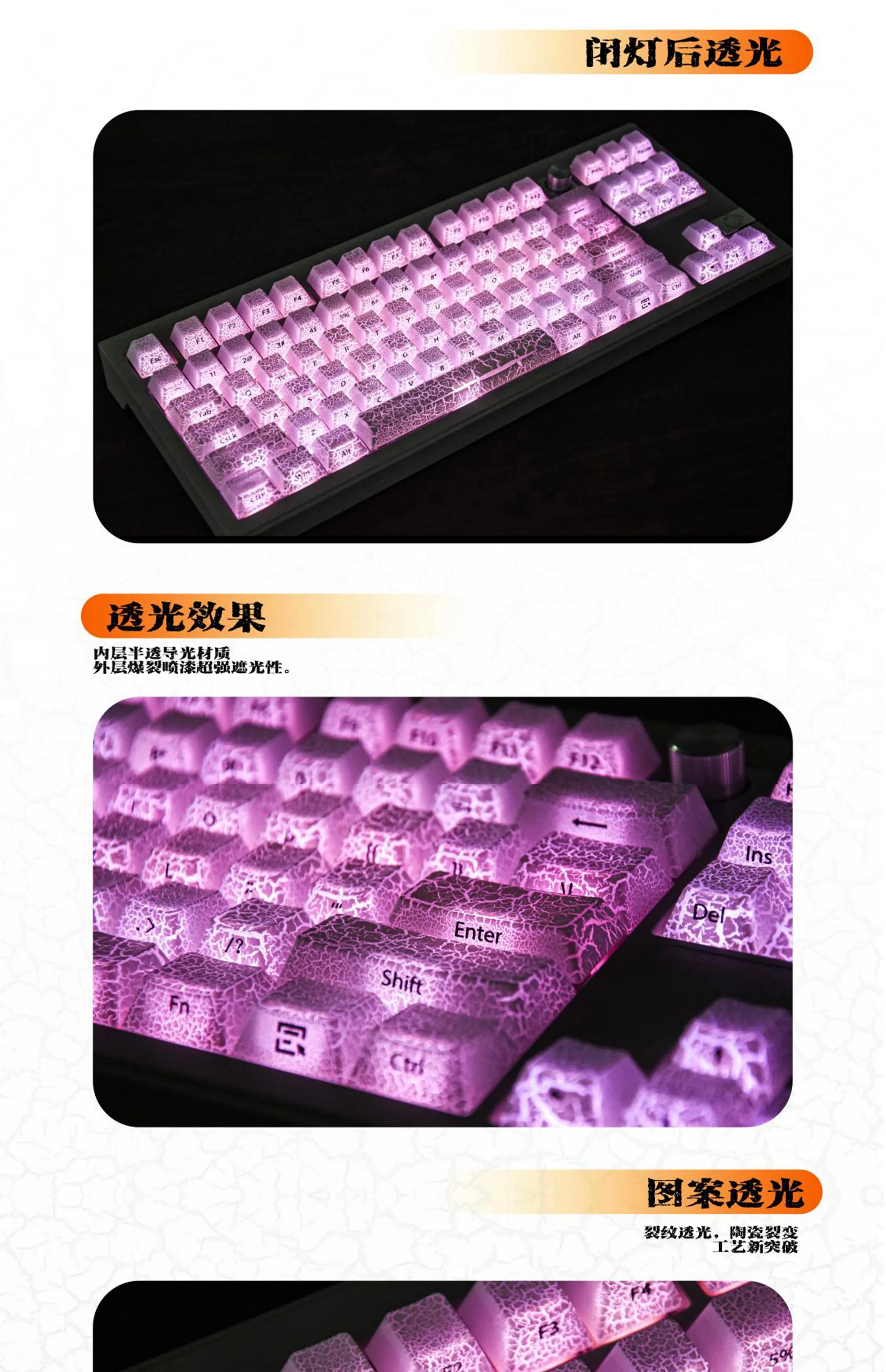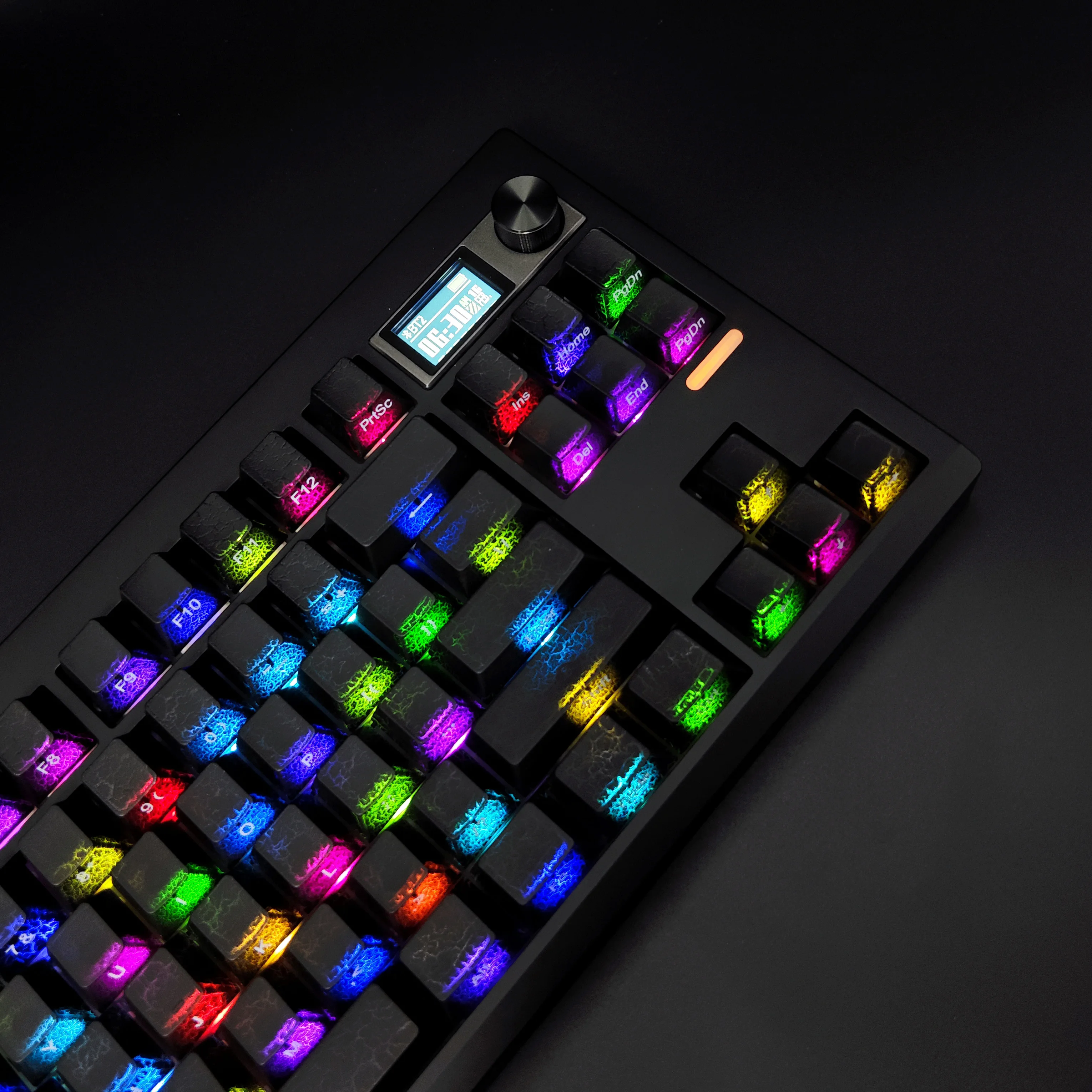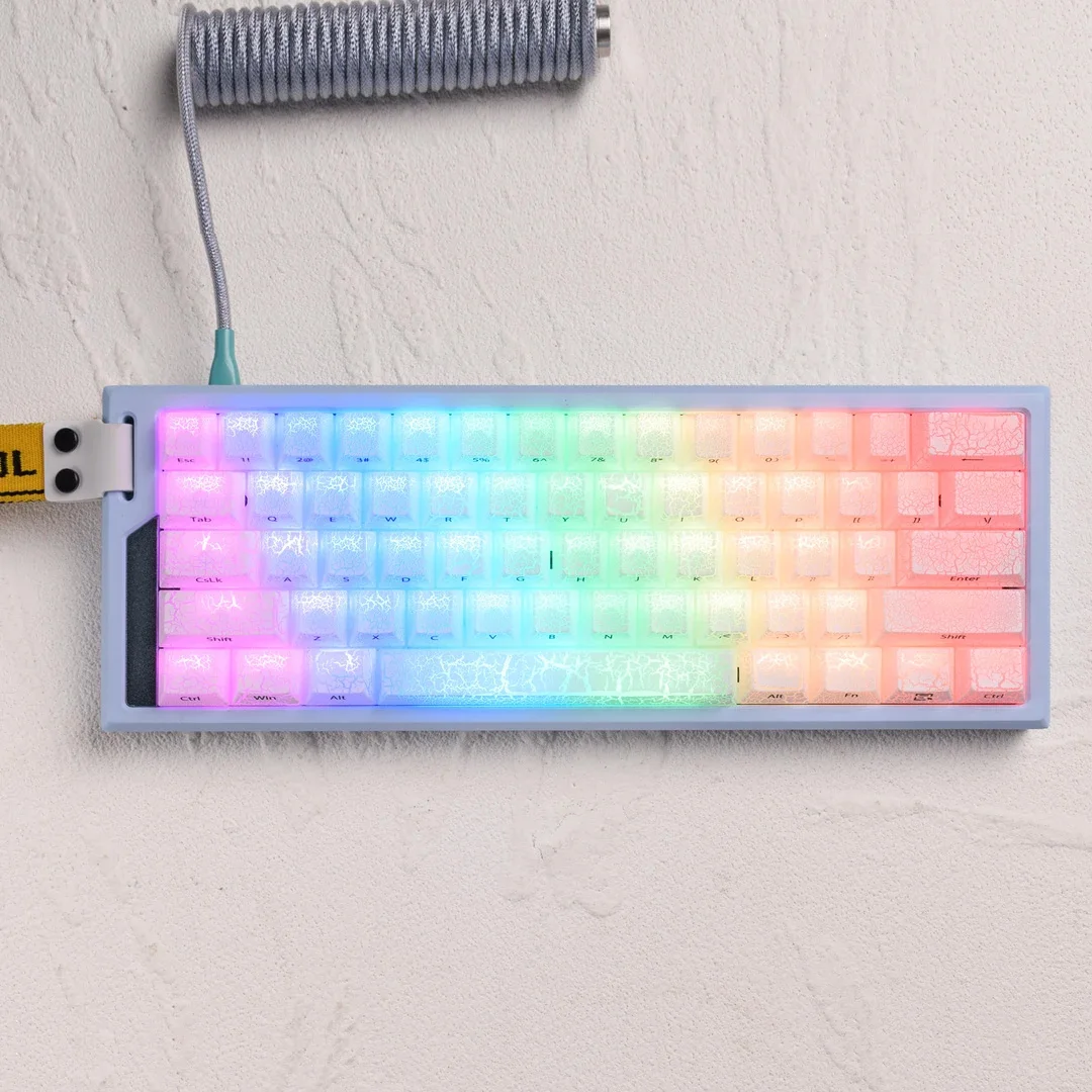 Ice Crack Keycaps Custom PBT Cherry Profile Transparent Keycap Cute Black and White Cartoon Anime Point Key Cap for Gaming Gifts