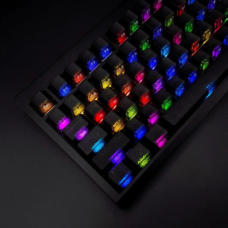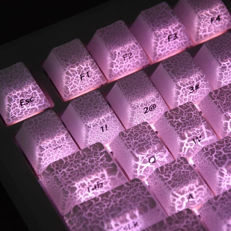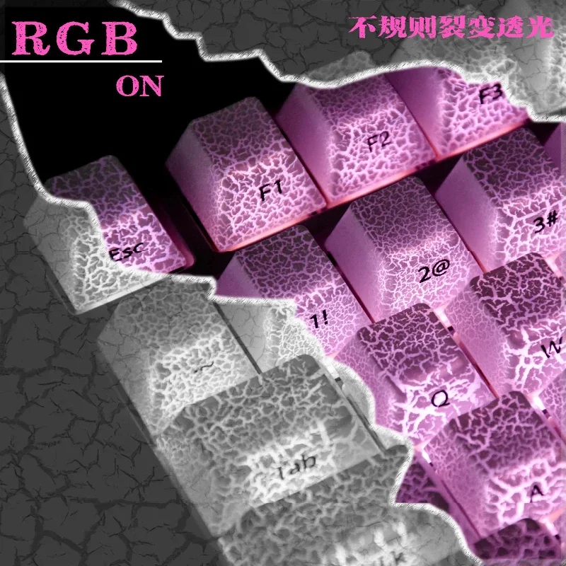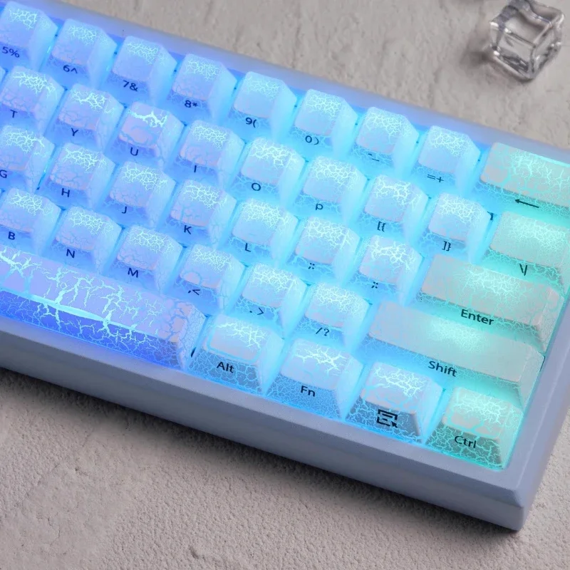 Ice Crack Keycaps Custom PBT Cherry Profile Transparent Keycap Cute Black and White Cartoon Anime Point Key Cap for Gaming Gifts